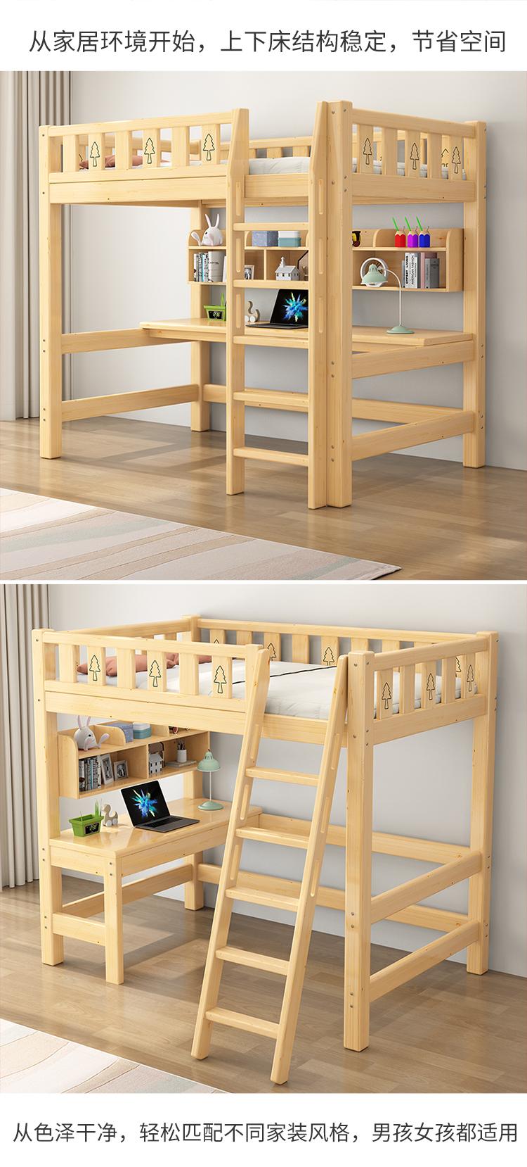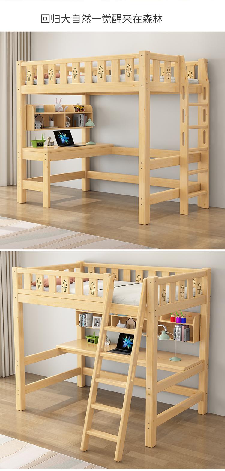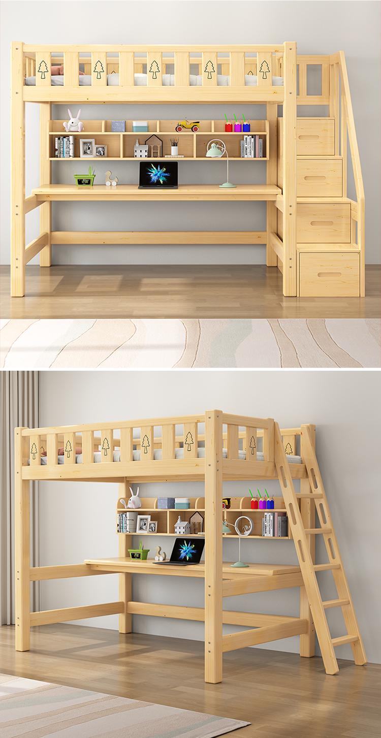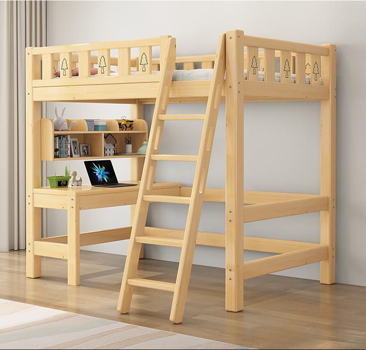 Compre Lençol de Cama Loft de Madeira Maciça com Beliche Superior e Escrivaninha Inferior, Cama Combinada Multifuncional de Camada Dupla Desfasada para Crianças com Escrivaninha no atacado no Joom.pro