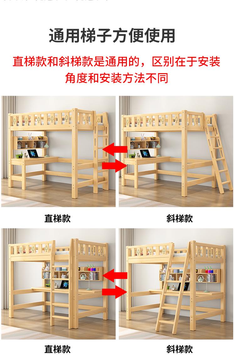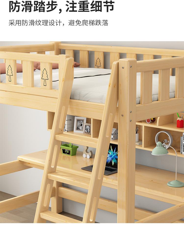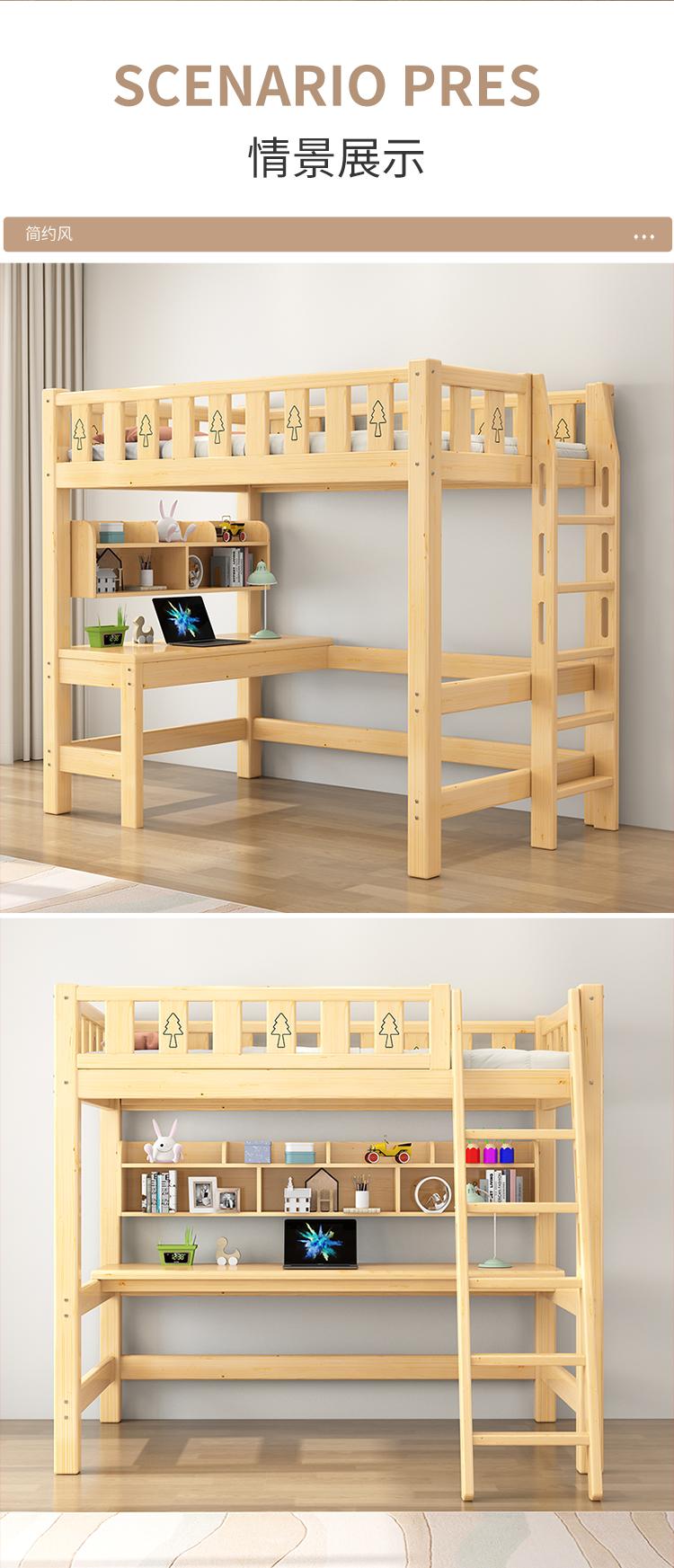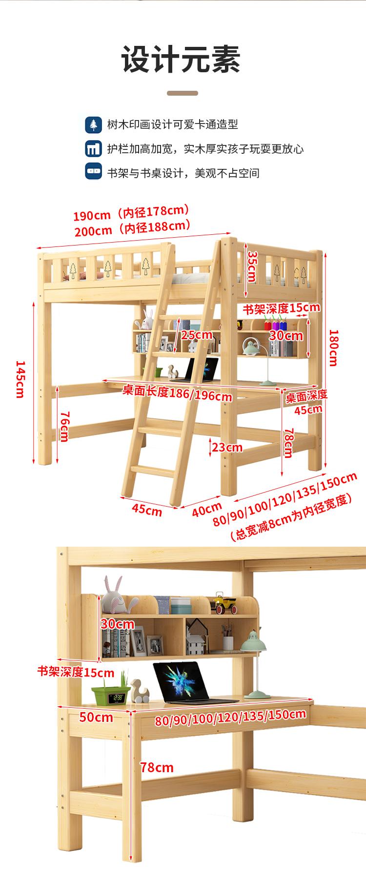Compre Lençol de Cama Loft de Madeira Maciça com Beliche Superior e Escrivaninha Inferior, Cama Combinada Multifuncional de Camada Dupla Desfasada para Crianças com Escrivaninha no atacado no Joom.pro