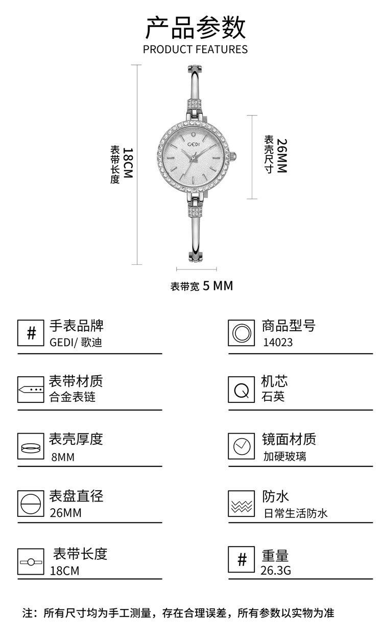 Gedi relógio pulseira criativa luz luxo diamante-embutido relógio requintado relógio feminino pequeno impermeável relógio de quartzo