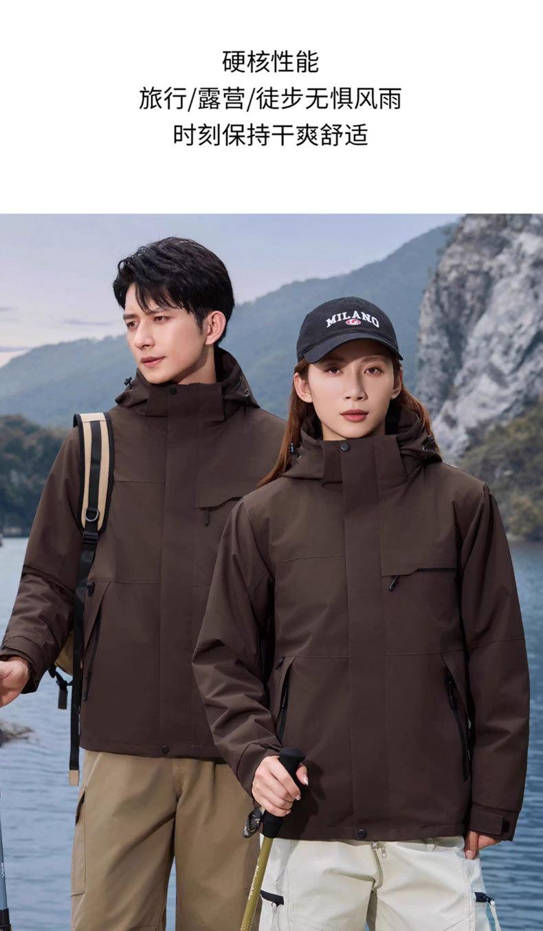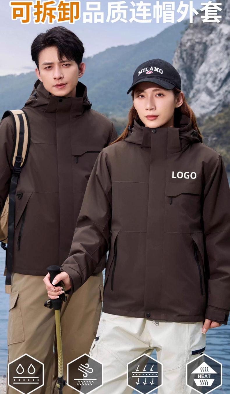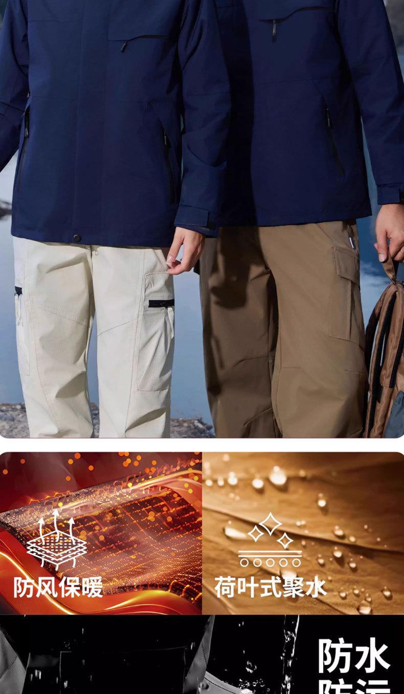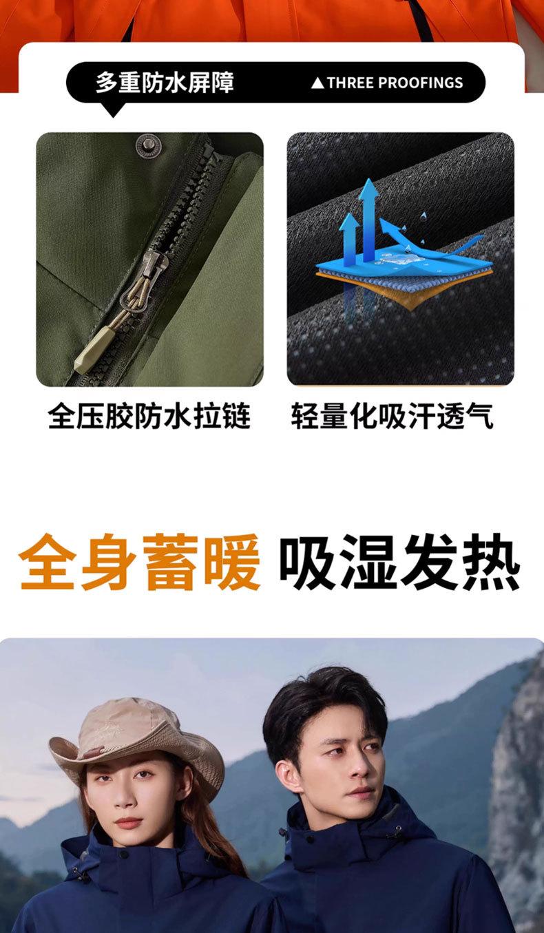 Quebra-vento três em um com logo, série montanha para atividades ao ar livre, terno para montanhismo, quente, à prova d'água, jaqueta plus aveludada