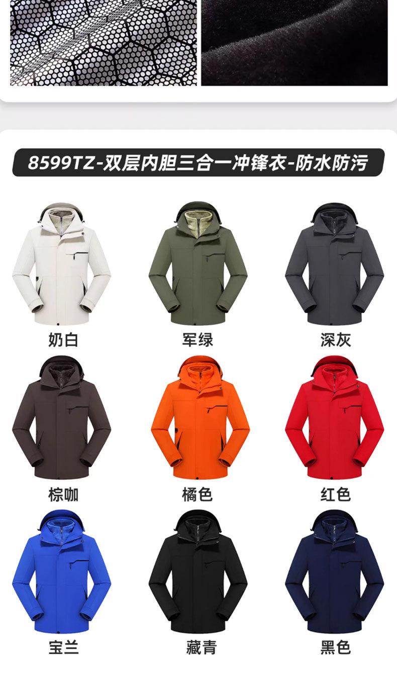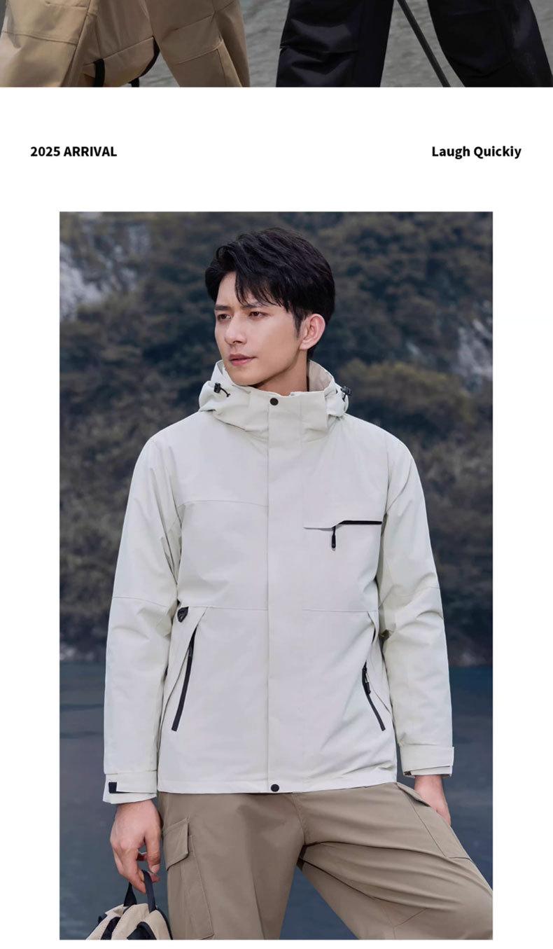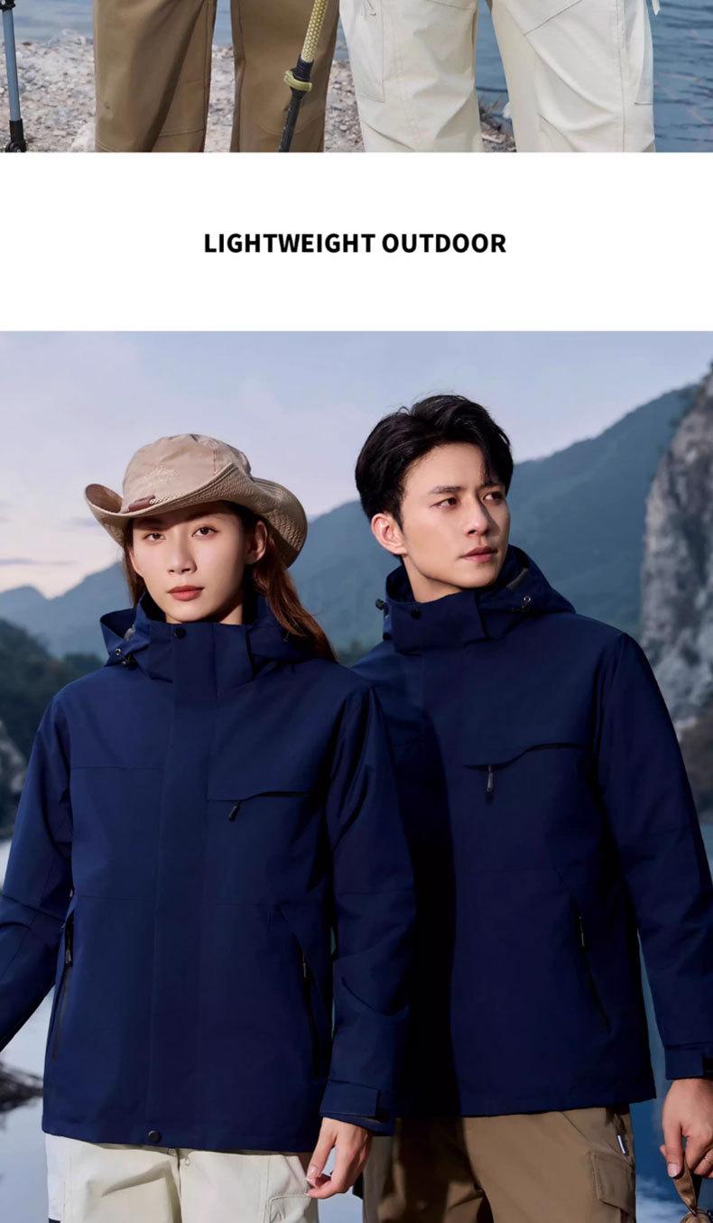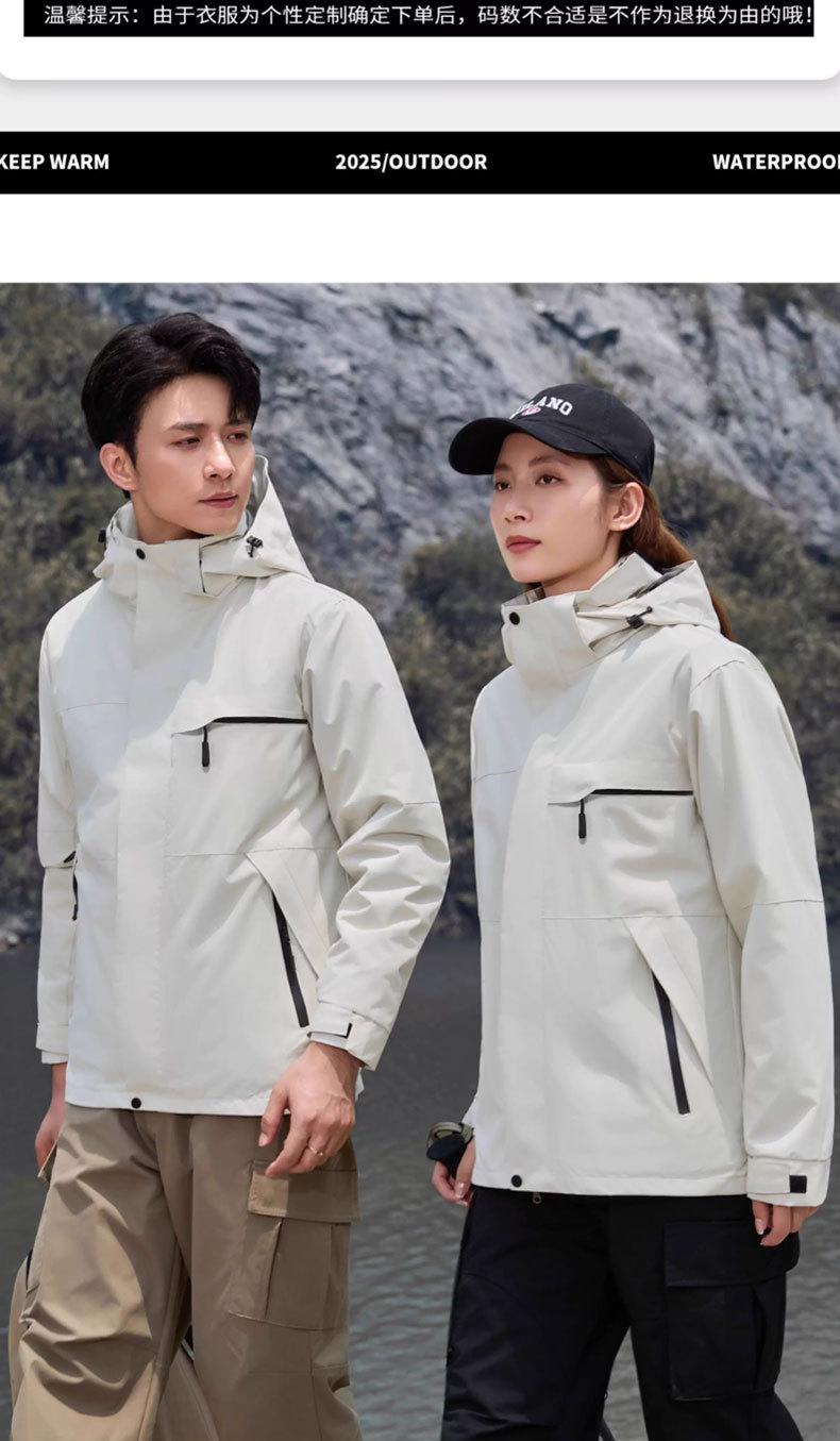 Quebra-vento três em um com logo, série montanha para atividades ao ar livre, terno para montanhismo, quente, à prova d'água, jaqueta plus aveludada