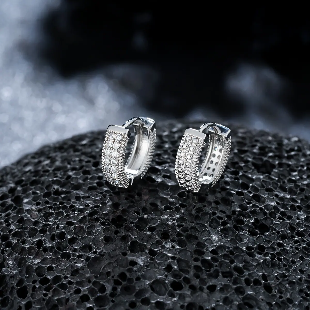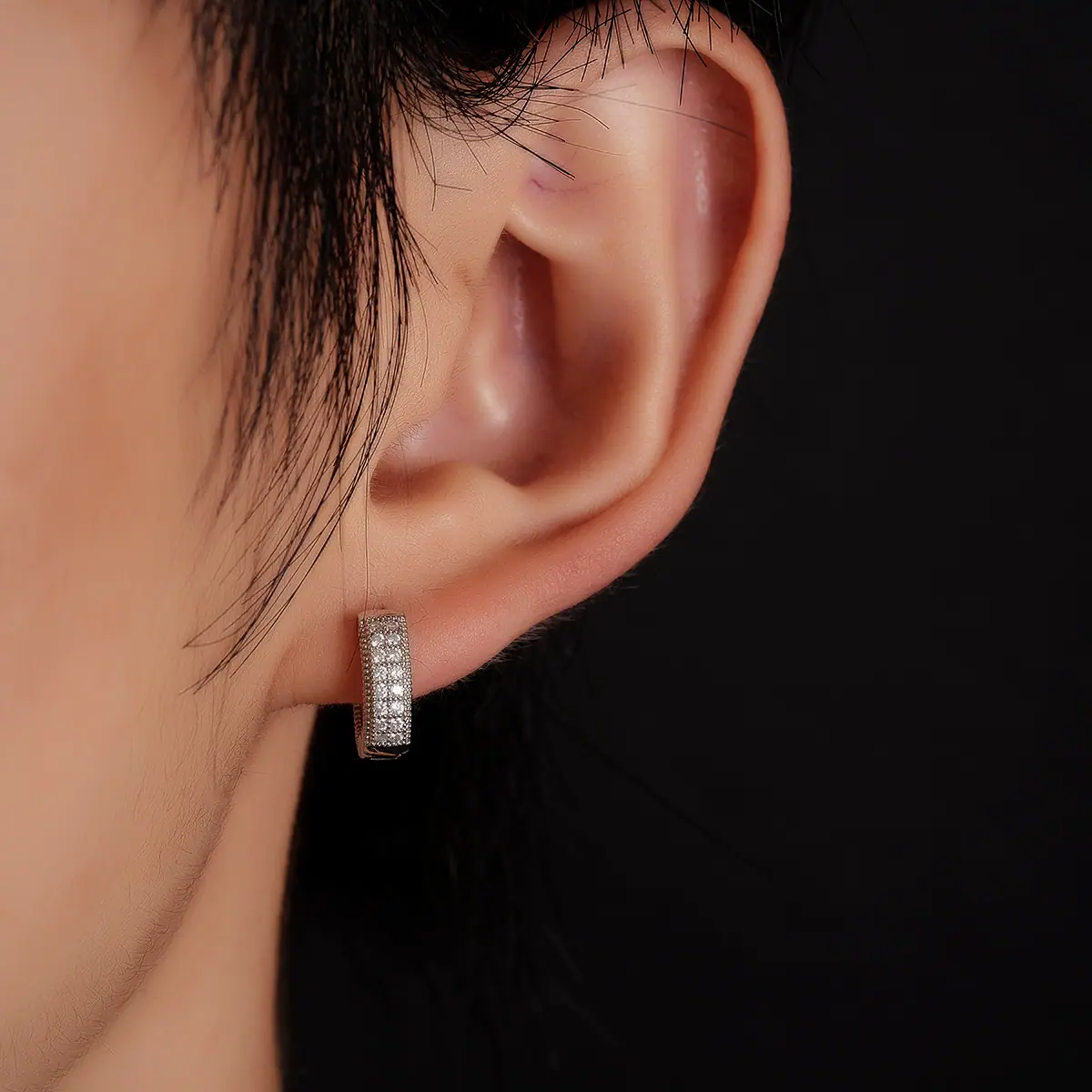 X1037-A (single-sided full diamond earrings) silver pair