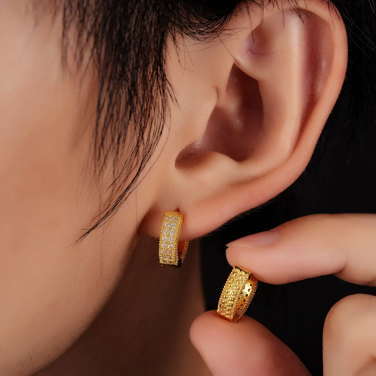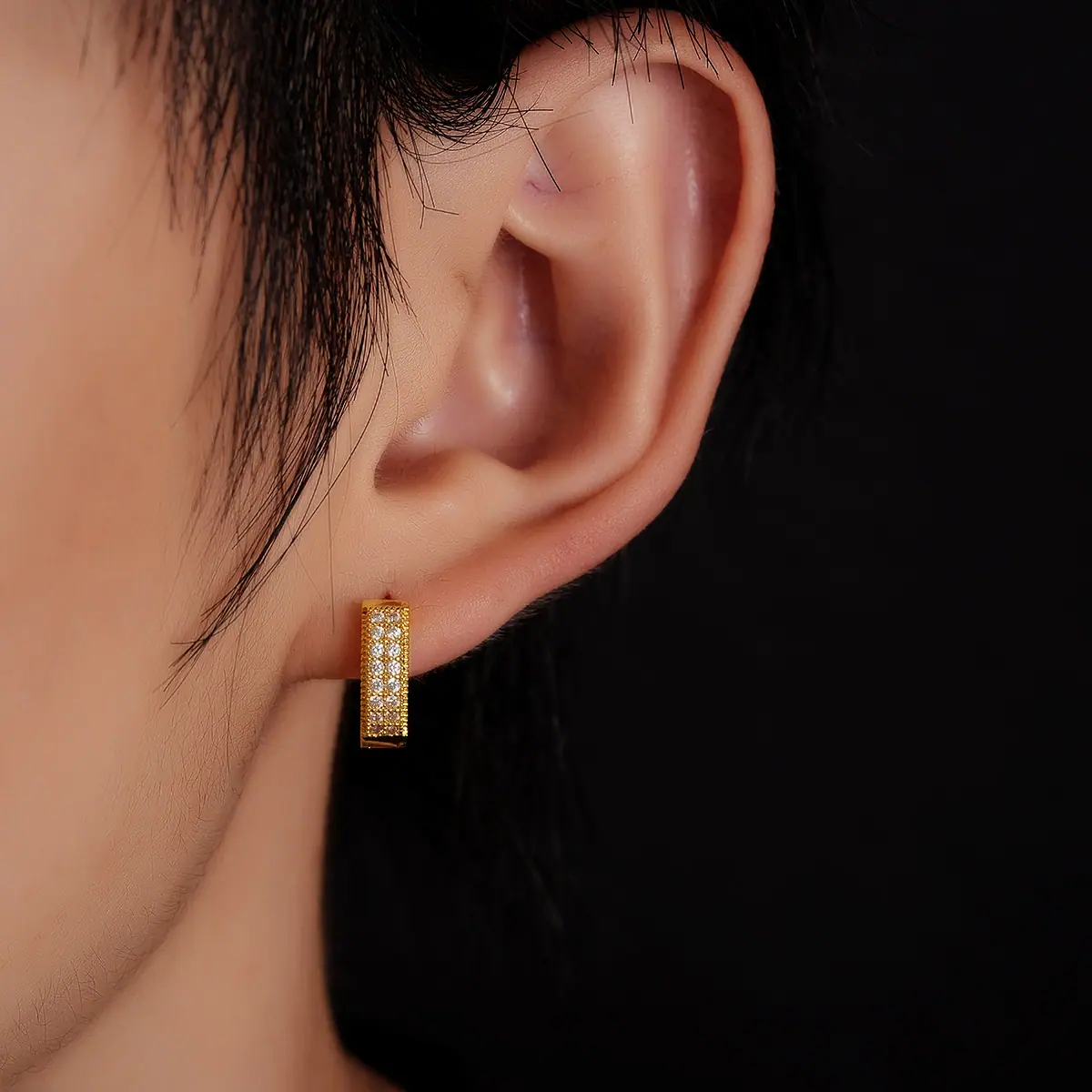 X1037-B(single-sided full diamond earrings) gold pair