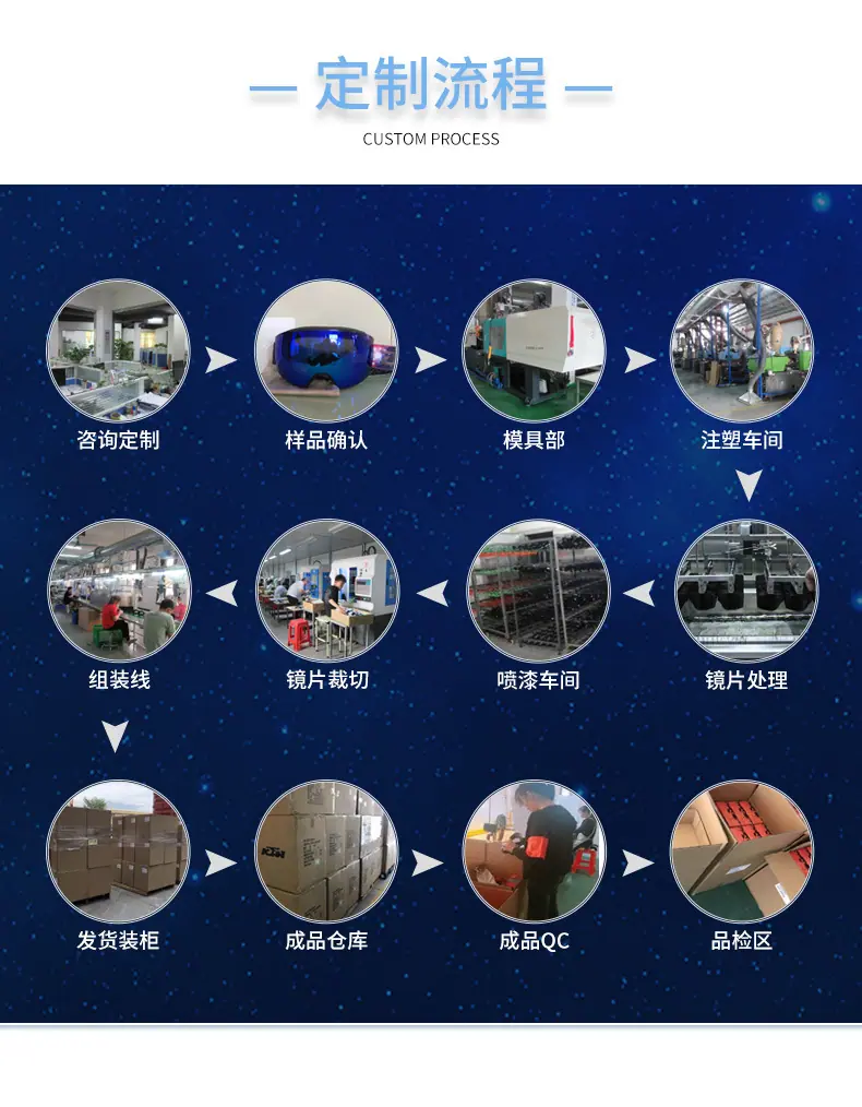 Nossa empresa é autoproduzida e vendida diretamente da fábrica de origem. Podemos amostras OEM OEM, processamento personalizado exclusivo ODM e cooperar com a autorização da marca OBM. Somos especializados em fornecer serviços completos de personalização de óculos e capacetes. Agradecemos sua inspeção e orientação no local.