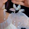 Zircon crystal butterfly pendant pearl earrings (thick real gold plating)