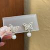 Brincos pendentes de pérola com borboleta de cristal de zircônia, pequenos, frescos, temperamentais, modernos, luxuosos, requintados, doces, combinam com tudo, argola de orelha, atacado