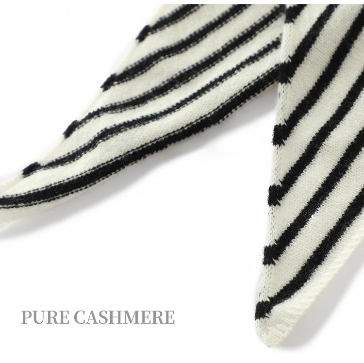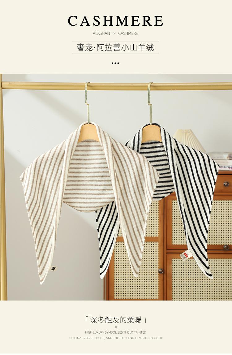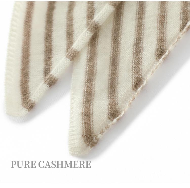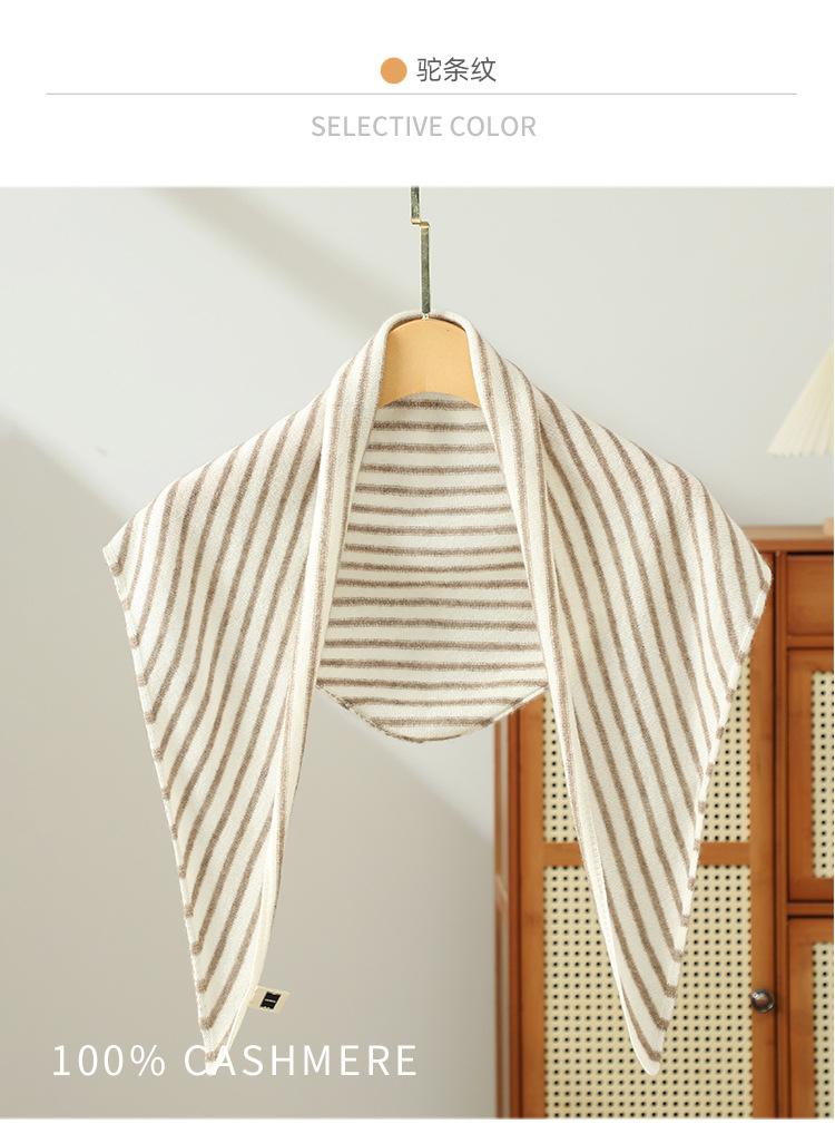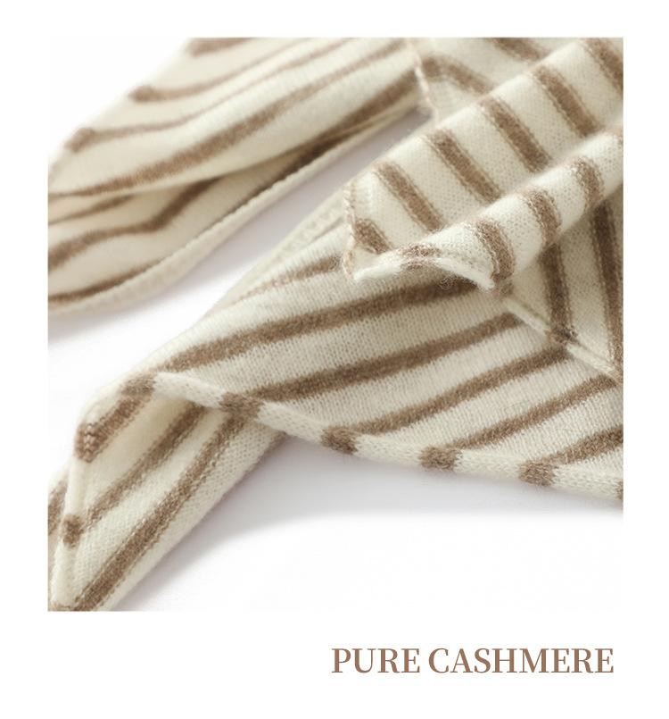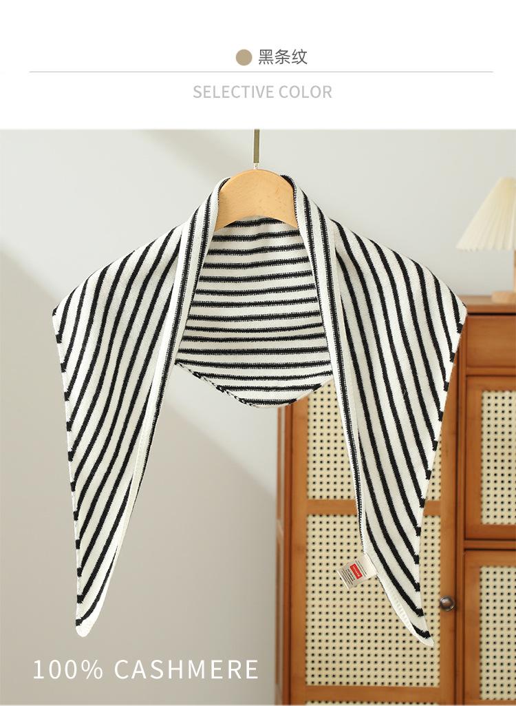 Cachecol de Caxemira Feminino 100% Caxemira Pura Outono Inverno Simples Listrado Moda Versátil Quente Triângulo Tricotado Aquecedor de Pescoço