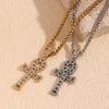 Colar Pingente Personalidade Europeia e Americana Hip Hop Retrô Aço Inoxidável Banhado Ouro 18K Pingente de Cruz Diamante Completo Colar Corrente Trançada para Homens