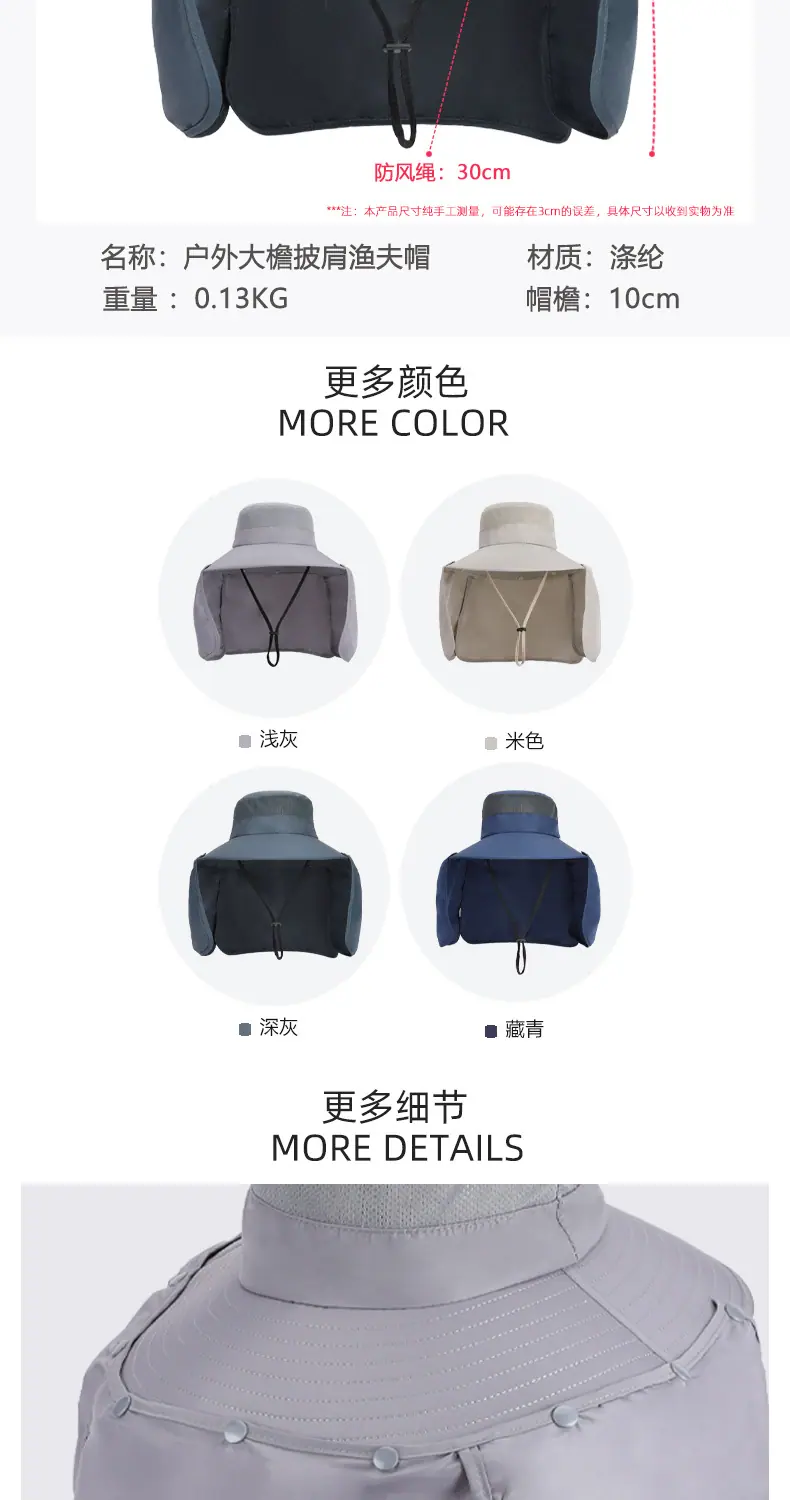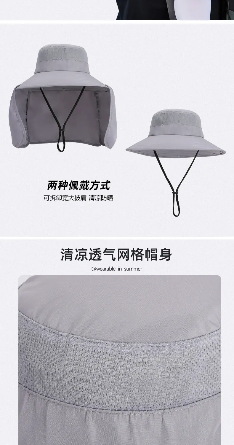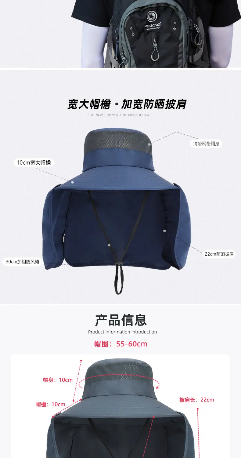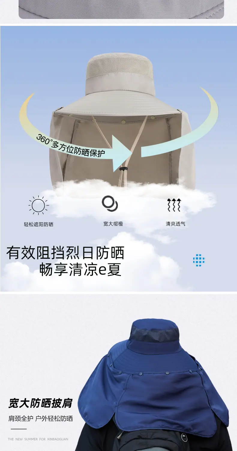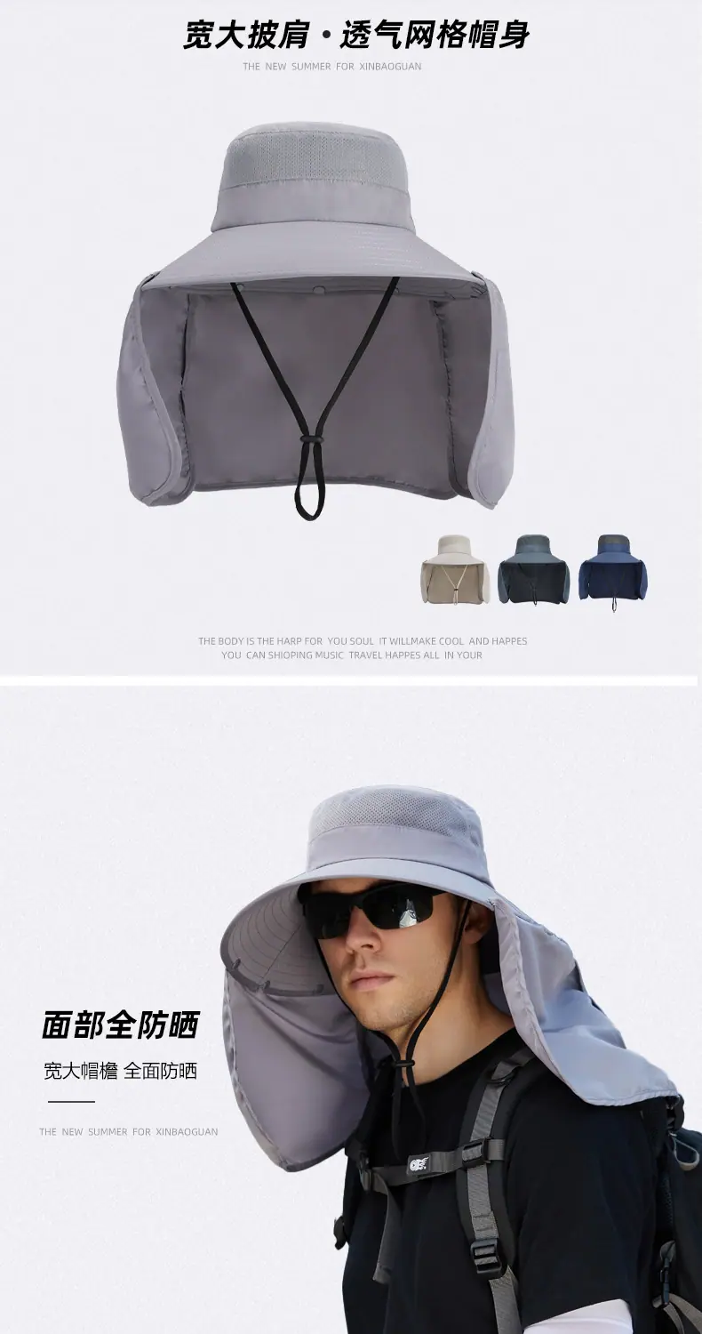 Chapéu de sol de verão com proteção solar aba larga chapéu de sol cobrindo o rosto xale proteção de pescoço chapéu de pescador chapéu de pesca masculino para atividades ao ar livre