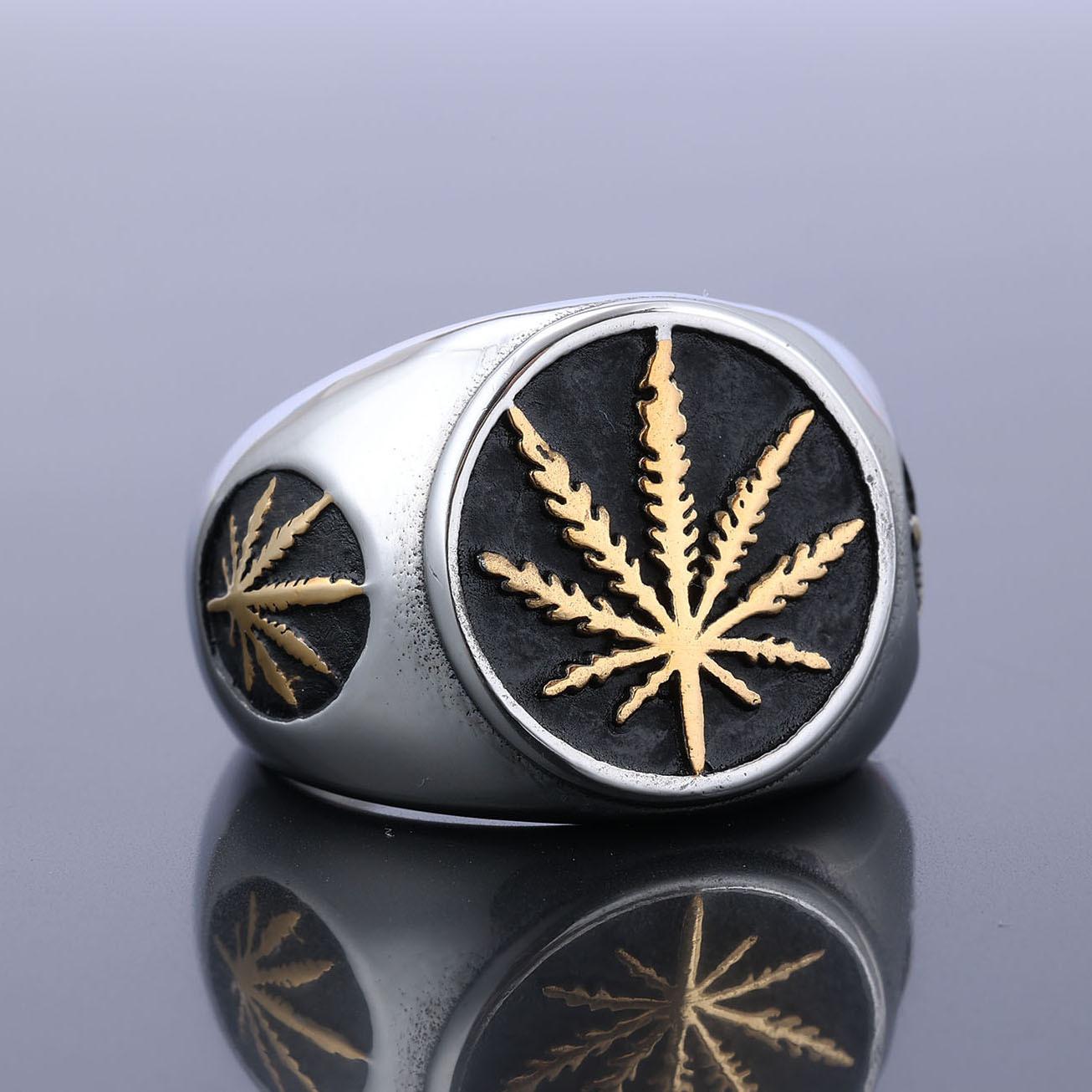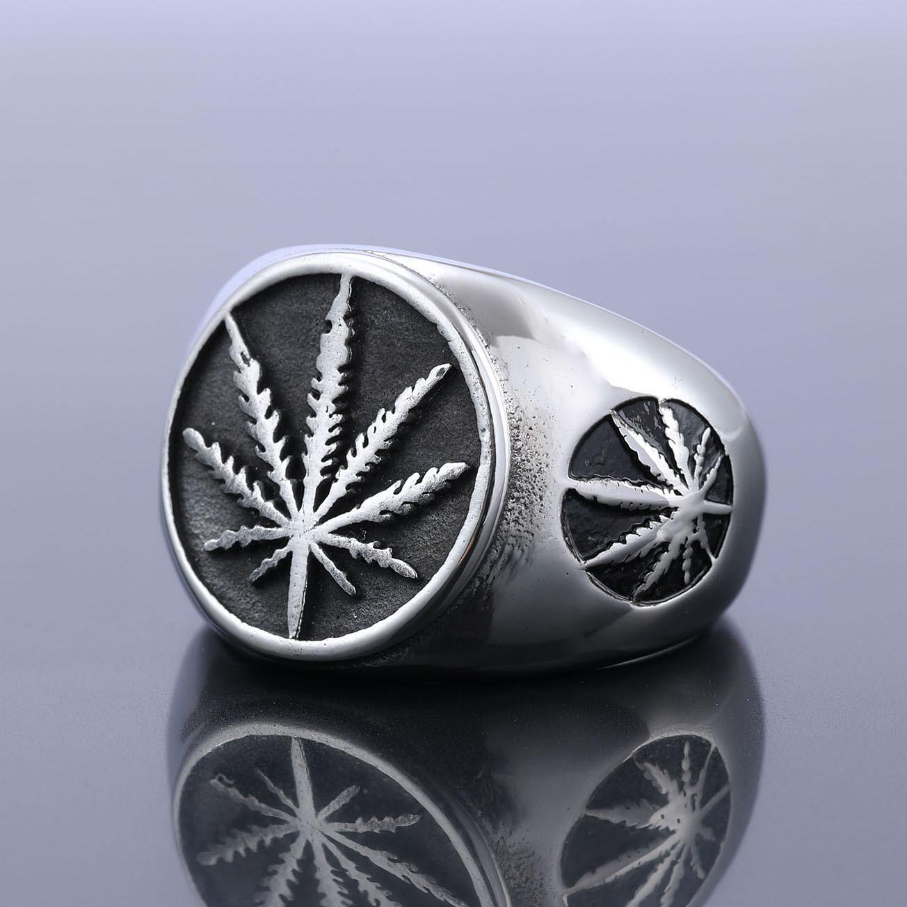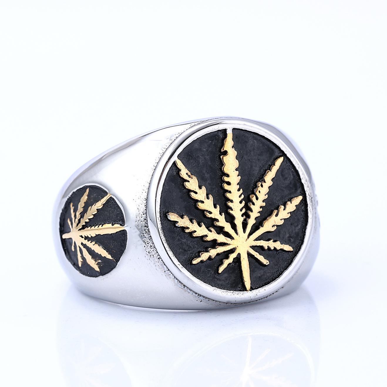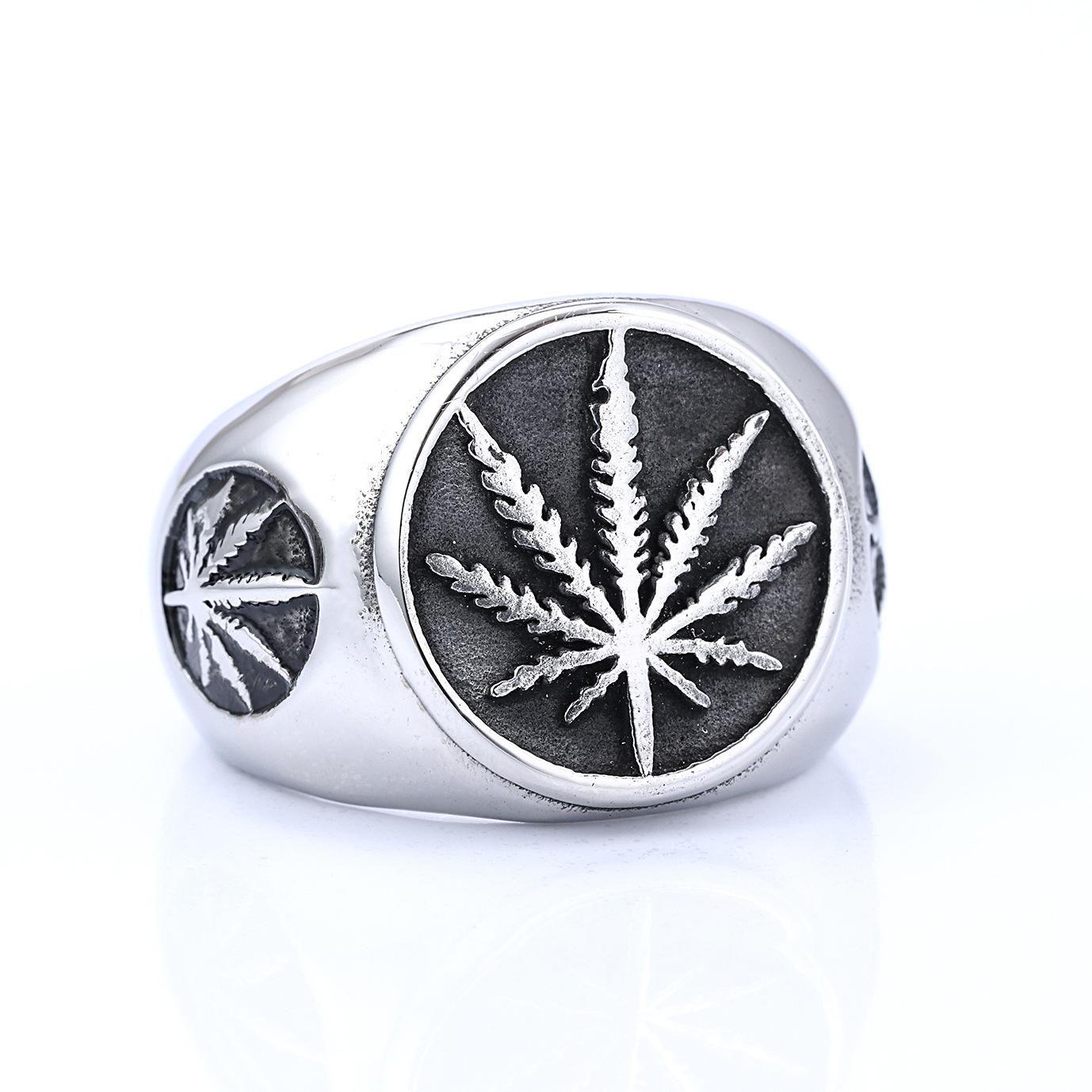 Atacado transfronteiriço em estoque anel folha aço titânio 316 masculino árvore da vida personalidade retrô anel aço titânio