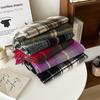 Cachecol de Lã Macia Encerada Listrado de Tricô de Pelúcia Estilo Coreano para Mulheres Proteção Contra o Frio de Inverno Estudante Cachecol Quente com Combinação de Cores