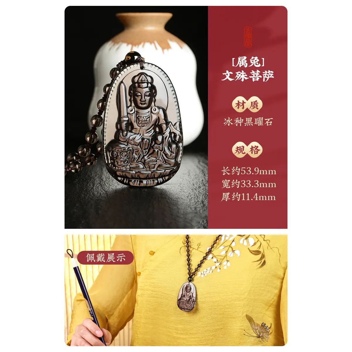 Obsidian zodiac [rabbit] manjushri bodhisattva