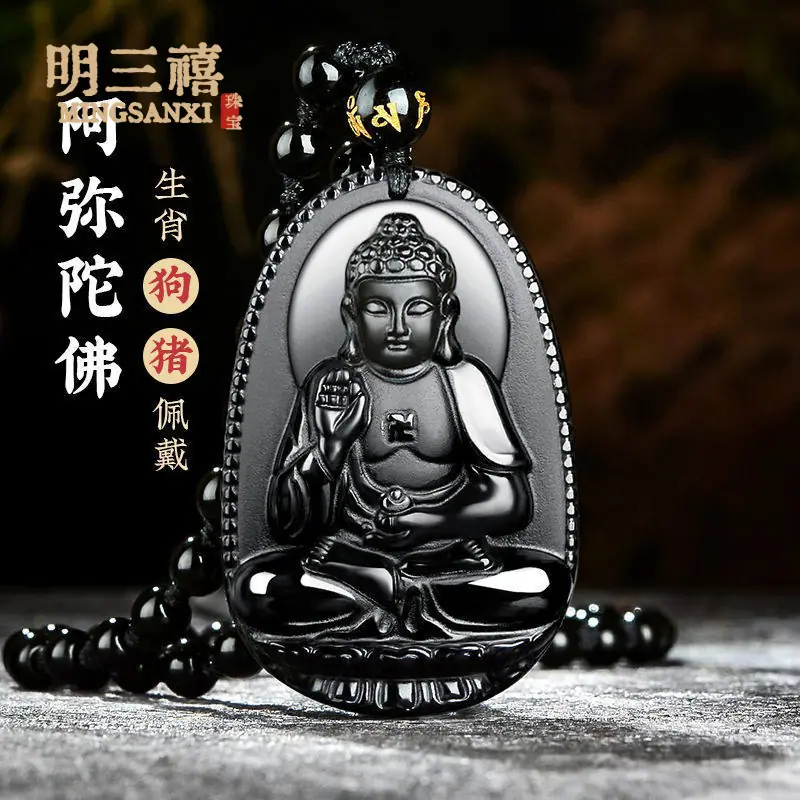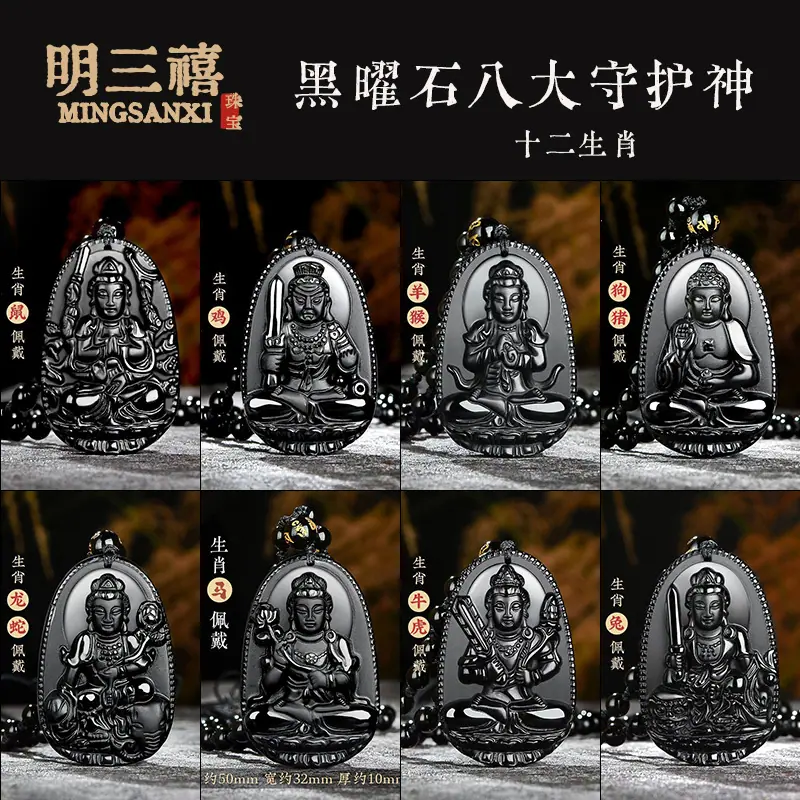 Pingente Benmingfo oito santos padroeiros obsidiana santo padroeiro buda 12 zodíaco pingente de imitação de obsidiana atacado