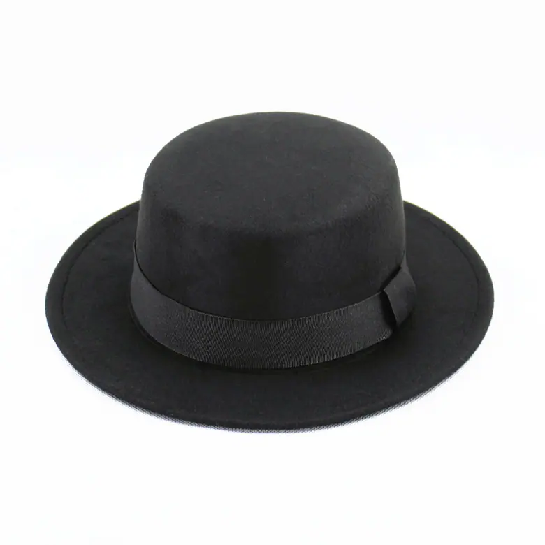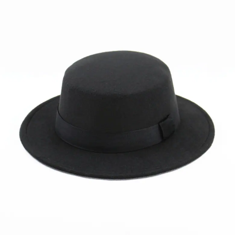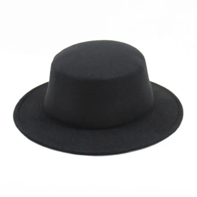 Cartola de Outono e Inverno Britânica Preta de Copa Reta Chapéu de Jazz de Cavalheiro Hepburn Coreano de Aba Larga de Lã de Aba Larga Chapéu Masculino e Feminino