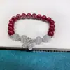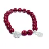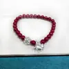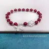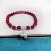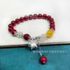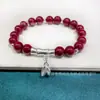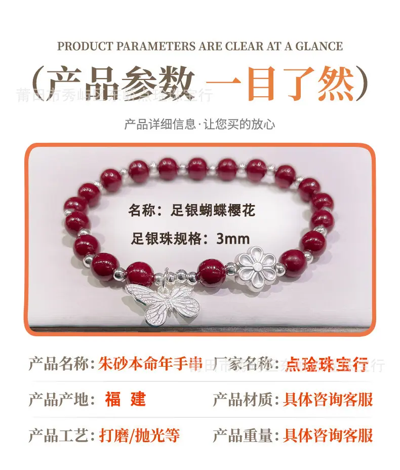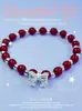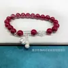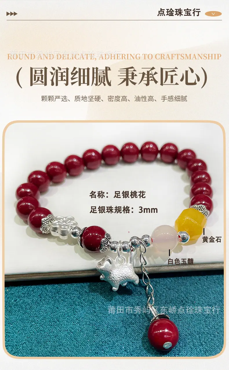 Pure silver cherry blossom hanging cat bracelet (chalcedony beads + gold stone beads)