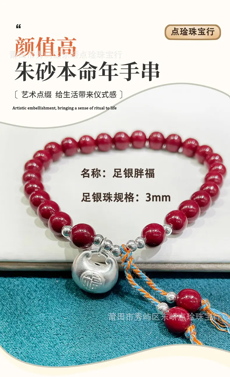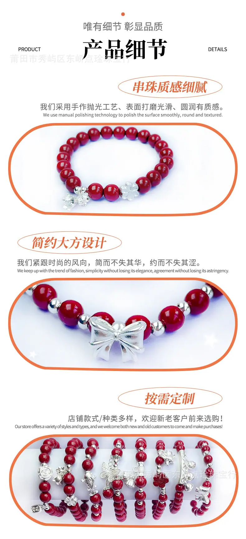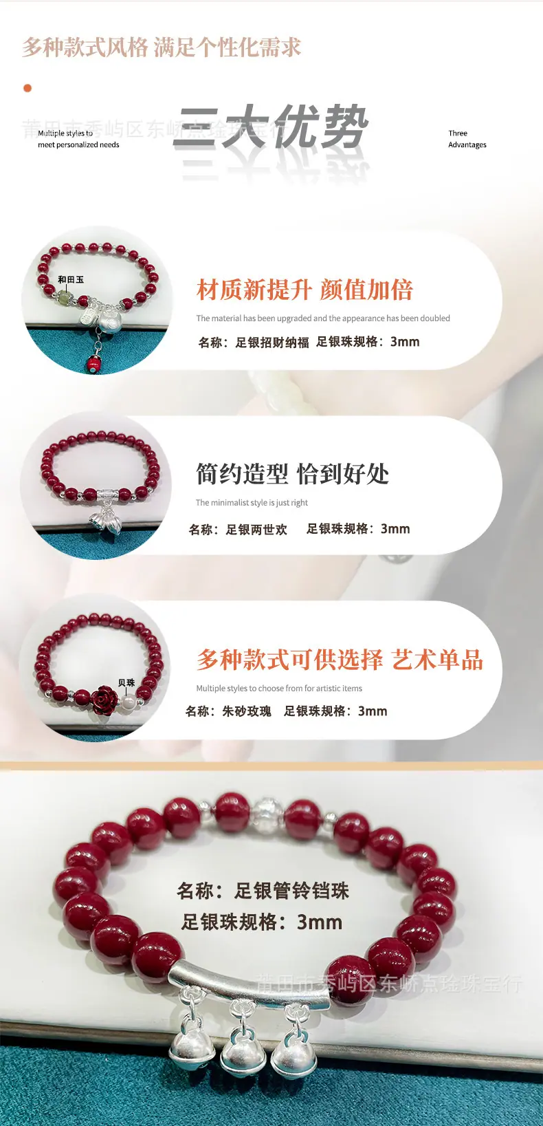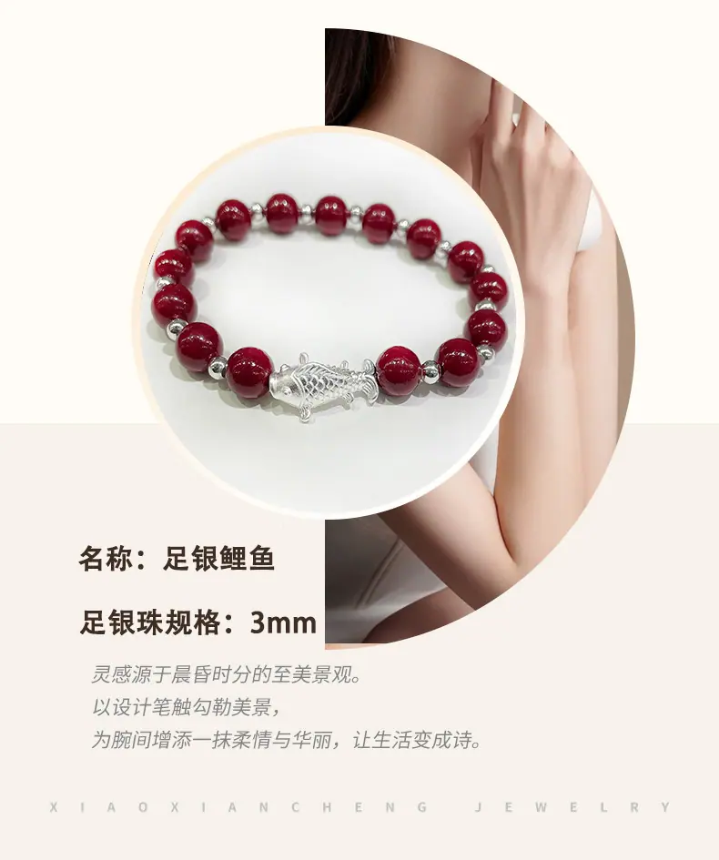 Pulseira da Fortuna Lótus em Prata Pura S999 Prata de Lei com Carpa e Pulseira de Cinábrio Lírio-do-Vale Duplo Joias Simples de Nicho Atacado