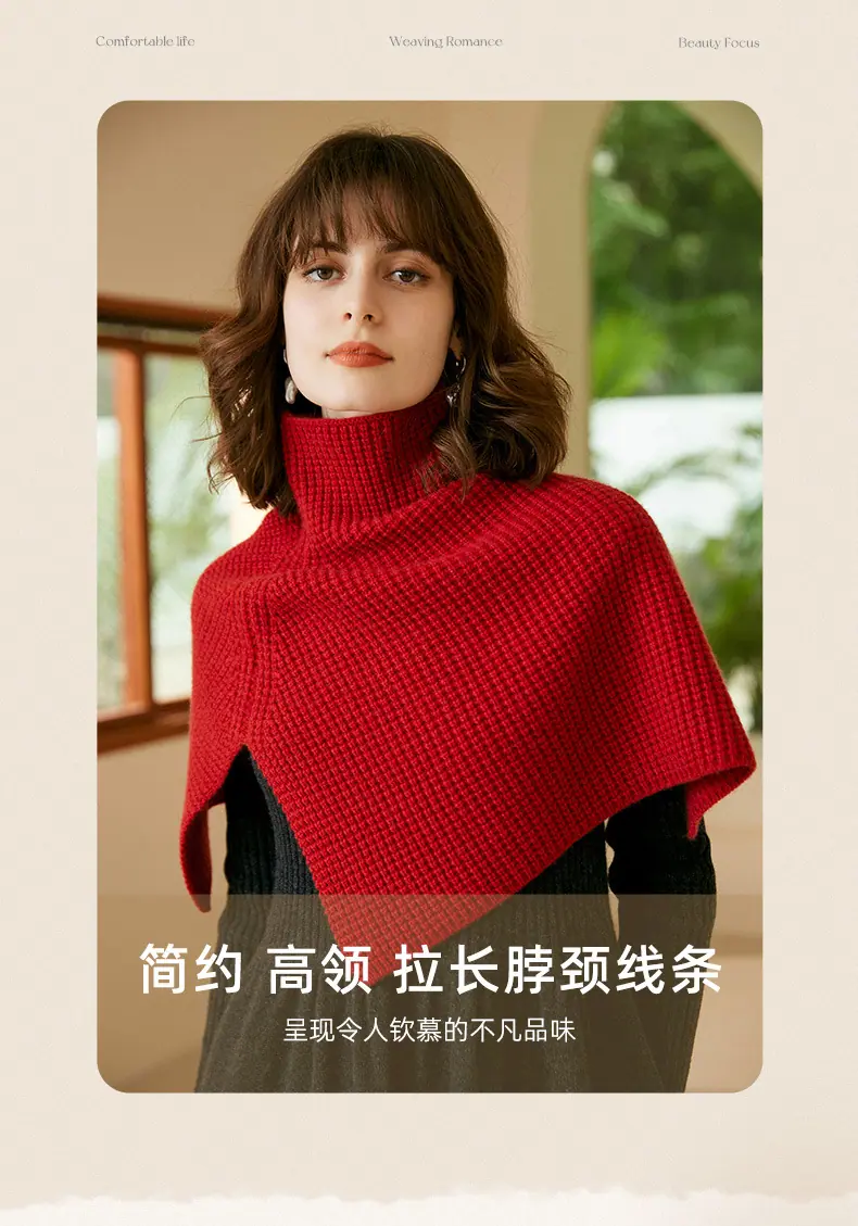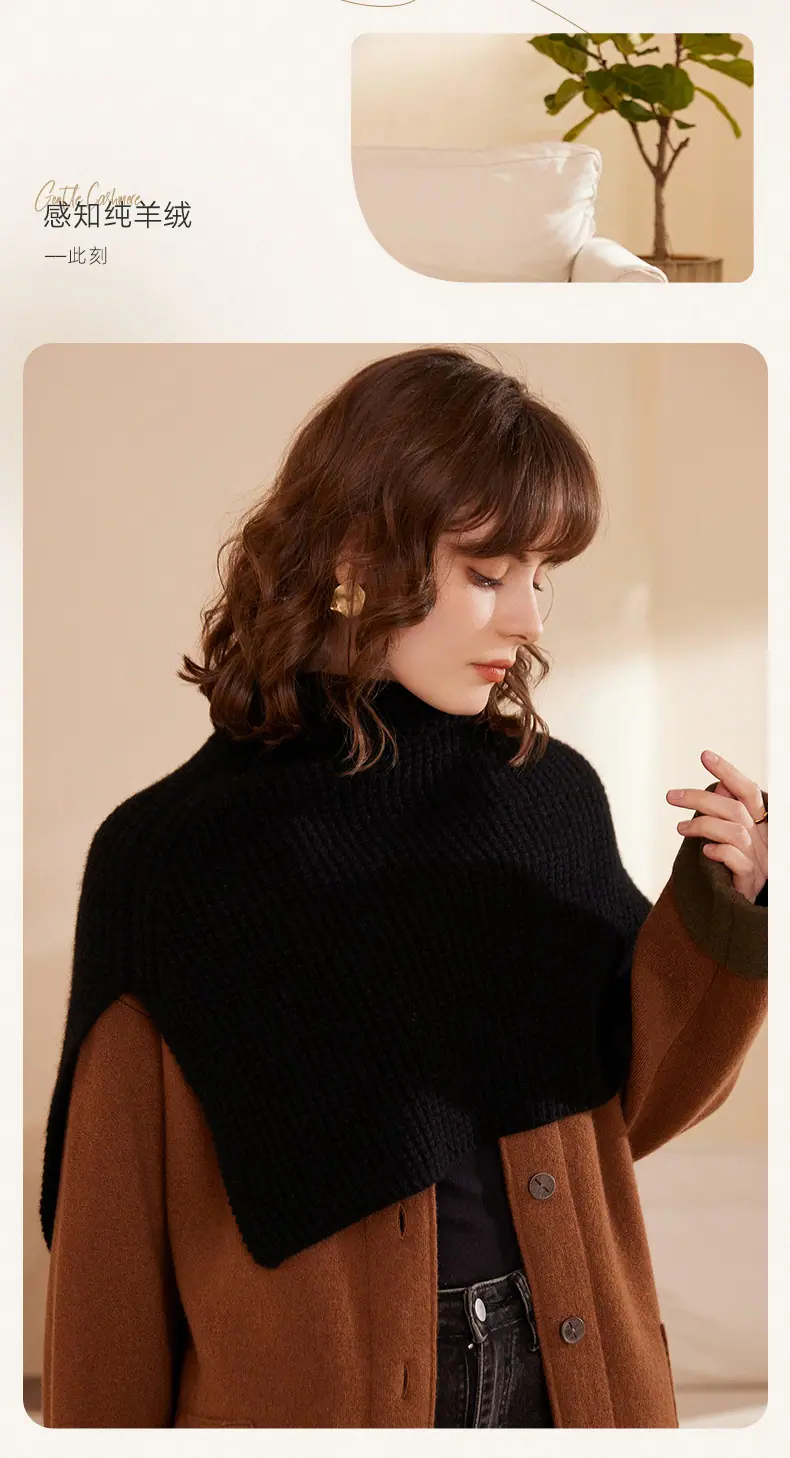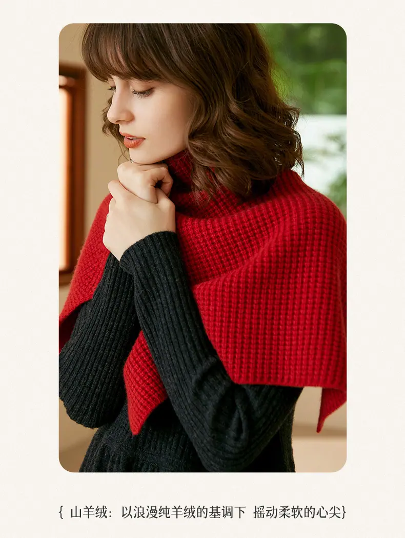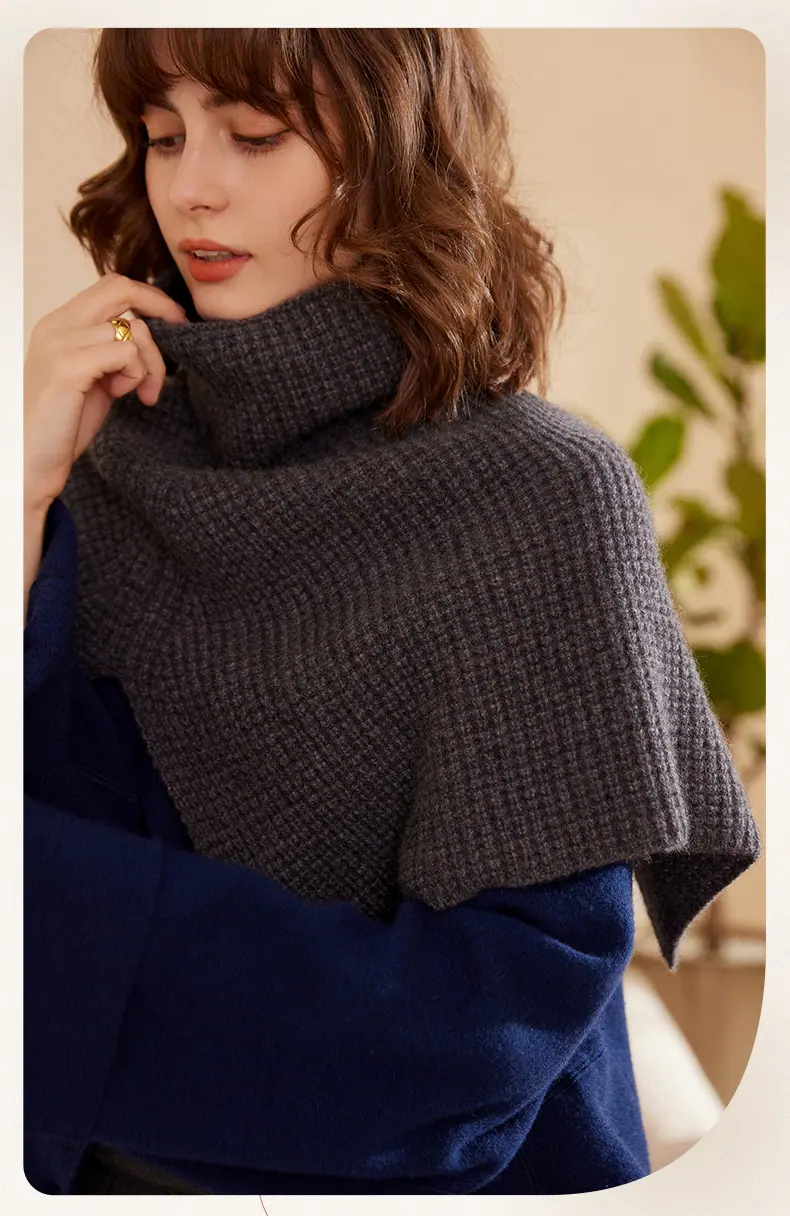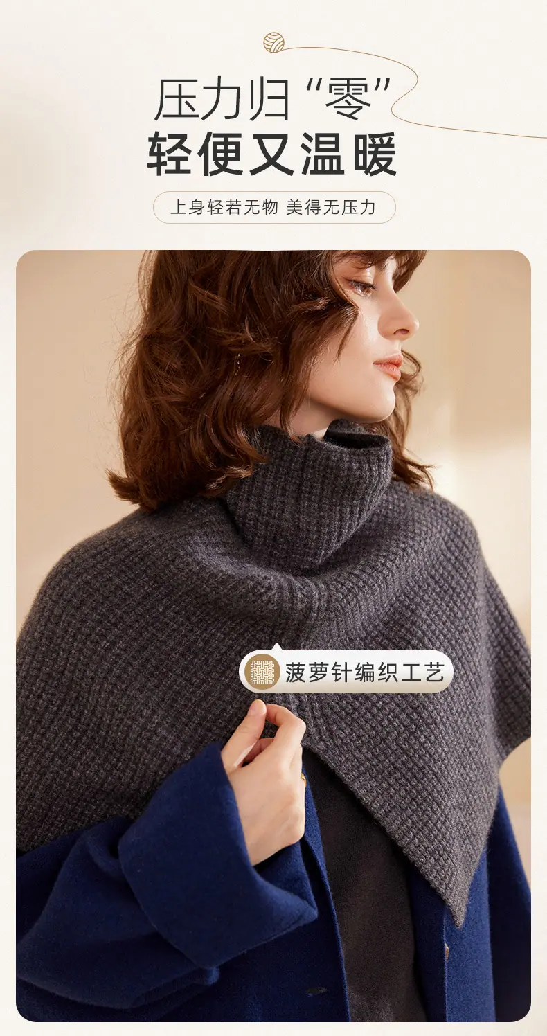 Cachecol de Ombro Feminino 100% Caxemira Pura Xale Ponto Abacaxi Gola Alta Quente Pulôver Snood Outono e Inverno Novo Pequeno Cabo