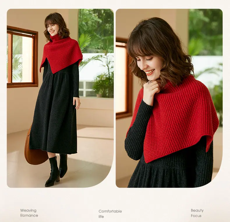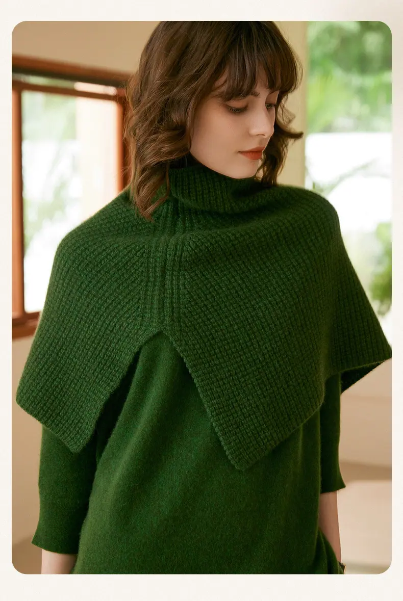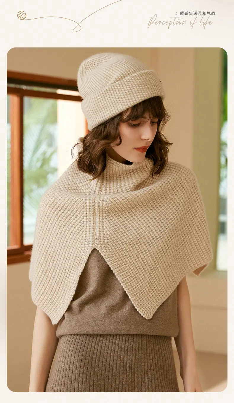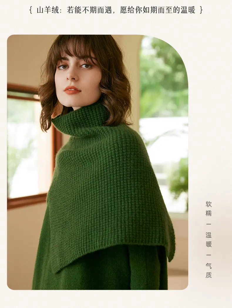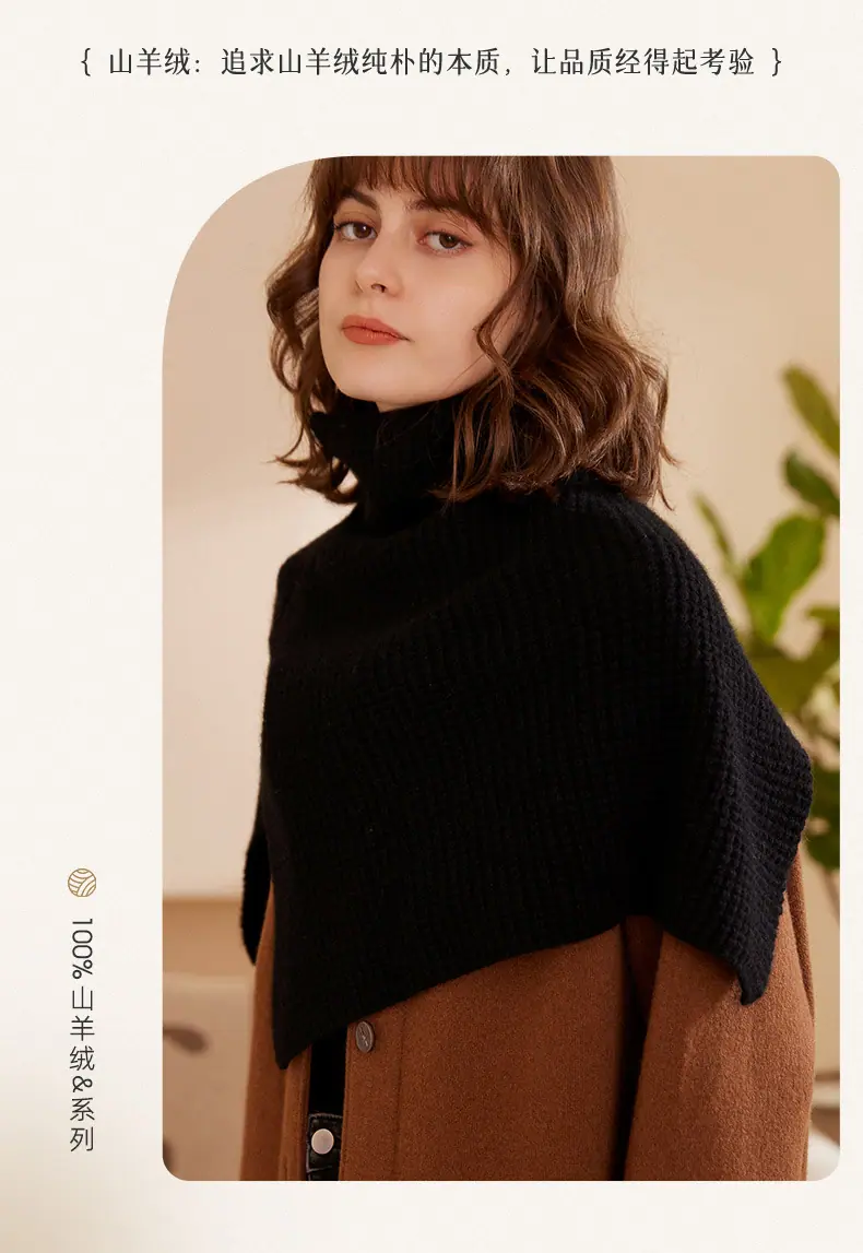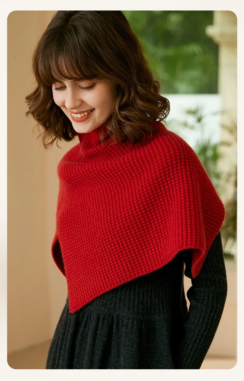 Cachecol de Ombro Feminino 100% Caxemira Pura Xale Ponto Abacaxi Gola Alta Quente Pulôver Snood Outono e Inverno Novo Pequeno Cabo
