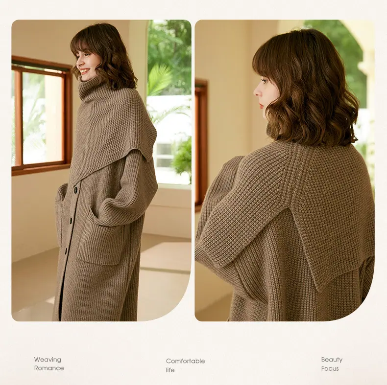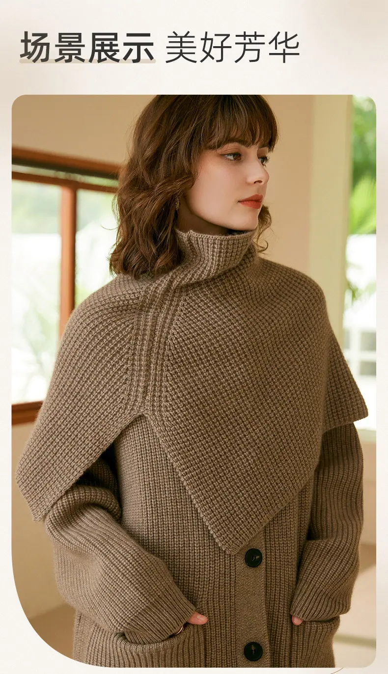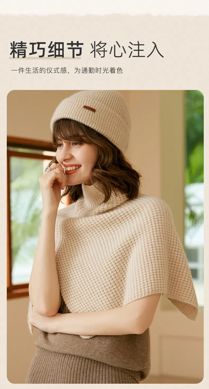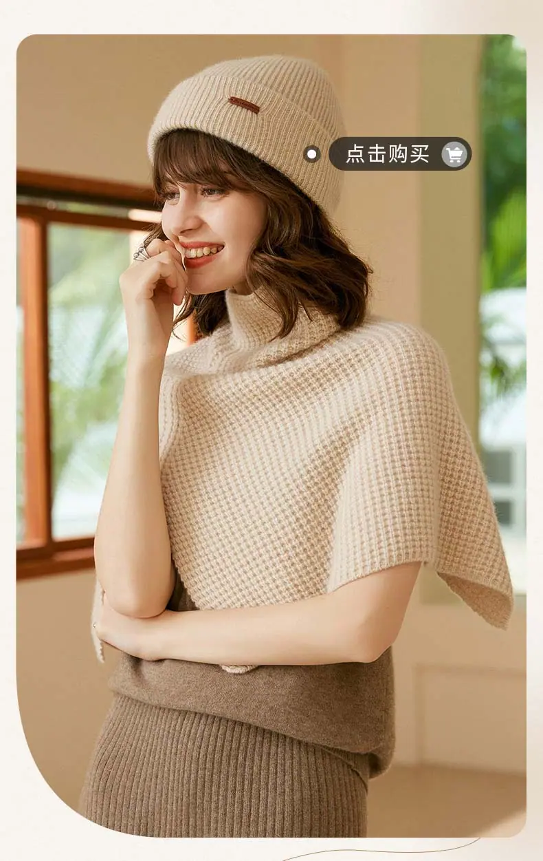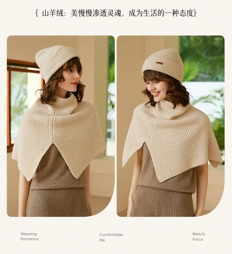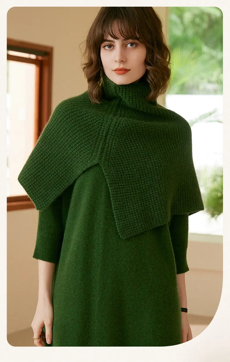 Cachecol de Ombro Feminino 100% Caxemira Pura Xale Ponto Abacaxi Gola Alta Quente Pulôver Snood Outono e Inverno Novo Pequeno Cabo