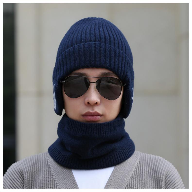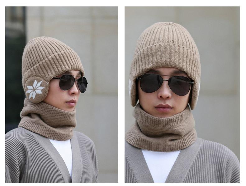 Chapéu masculino de inverno quente chapéu de malha inverno ciclismo ao ar livre forrado com lã proteção de orelha chapéu de lã chapéu pulôver juvenil masculino