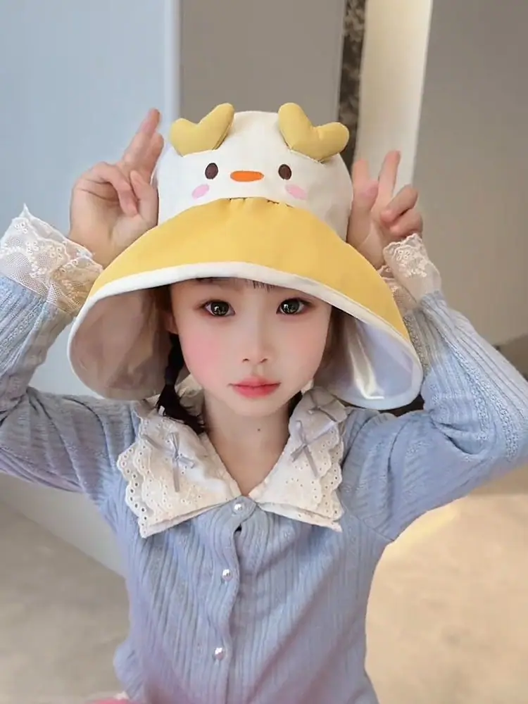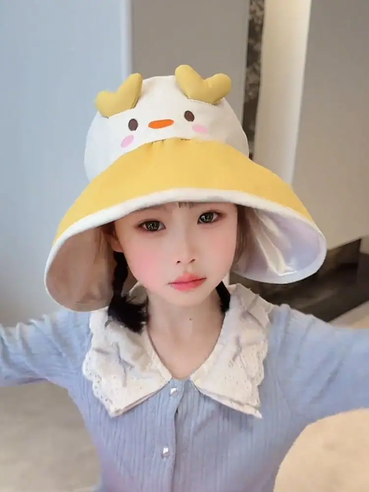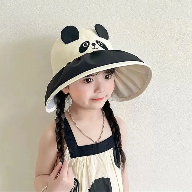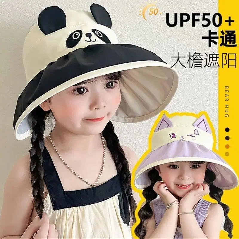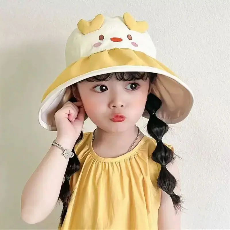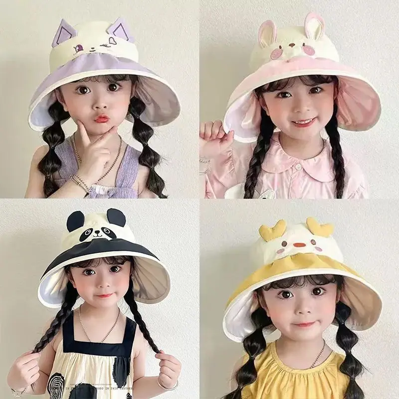 Chapéu de Sol Infantil de Desenho Animado Fofo Animal Pequeno Aba Larga Top Vazio Verão Viagem Proteção Ultravioleta Chapéu de Sol Fino