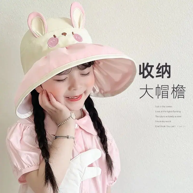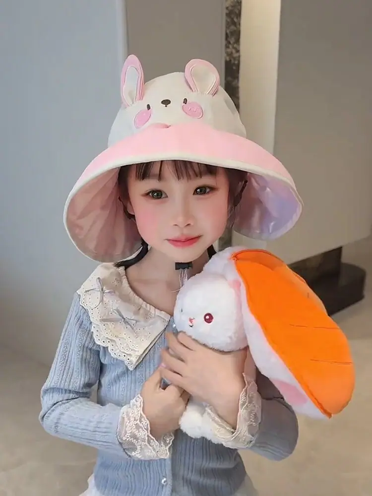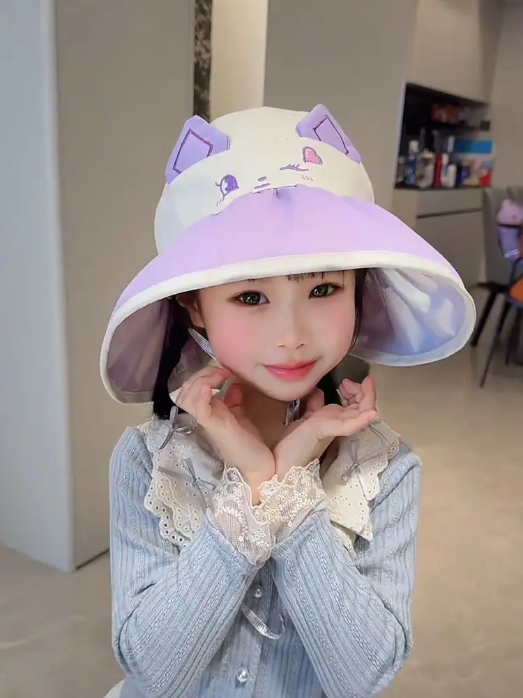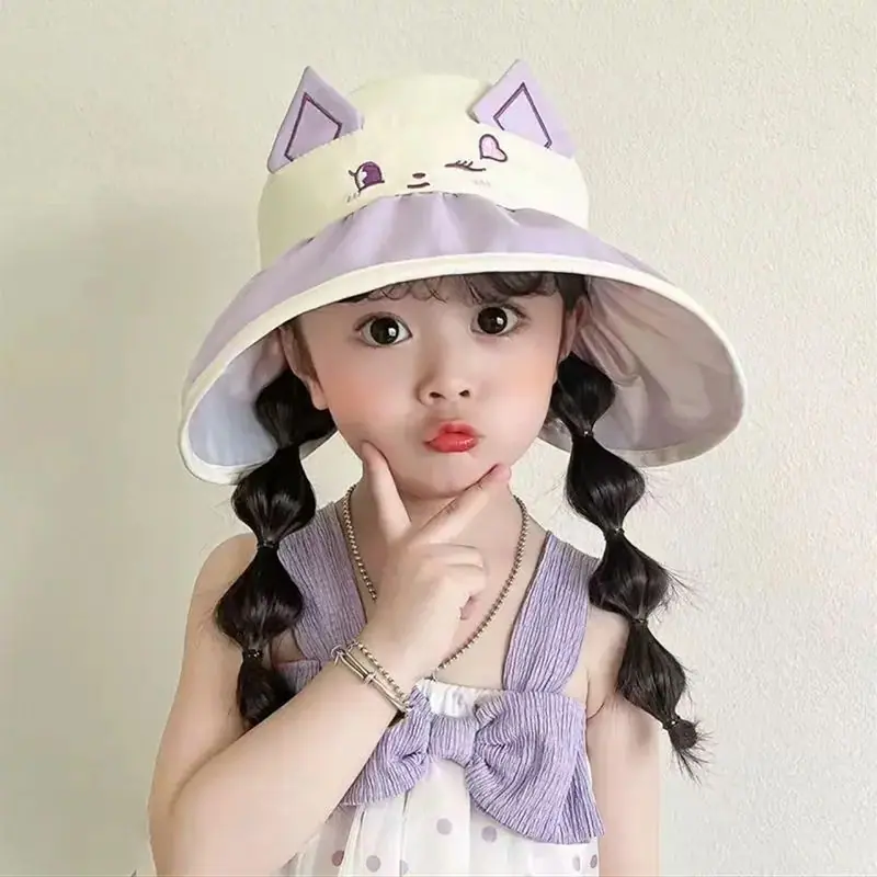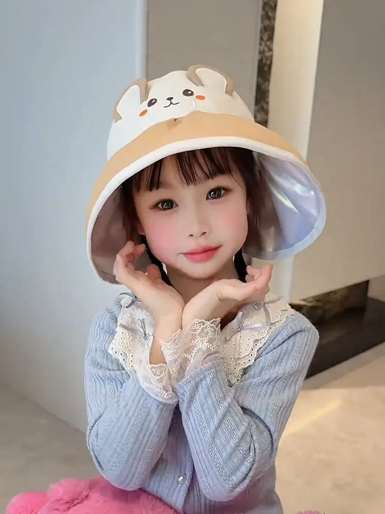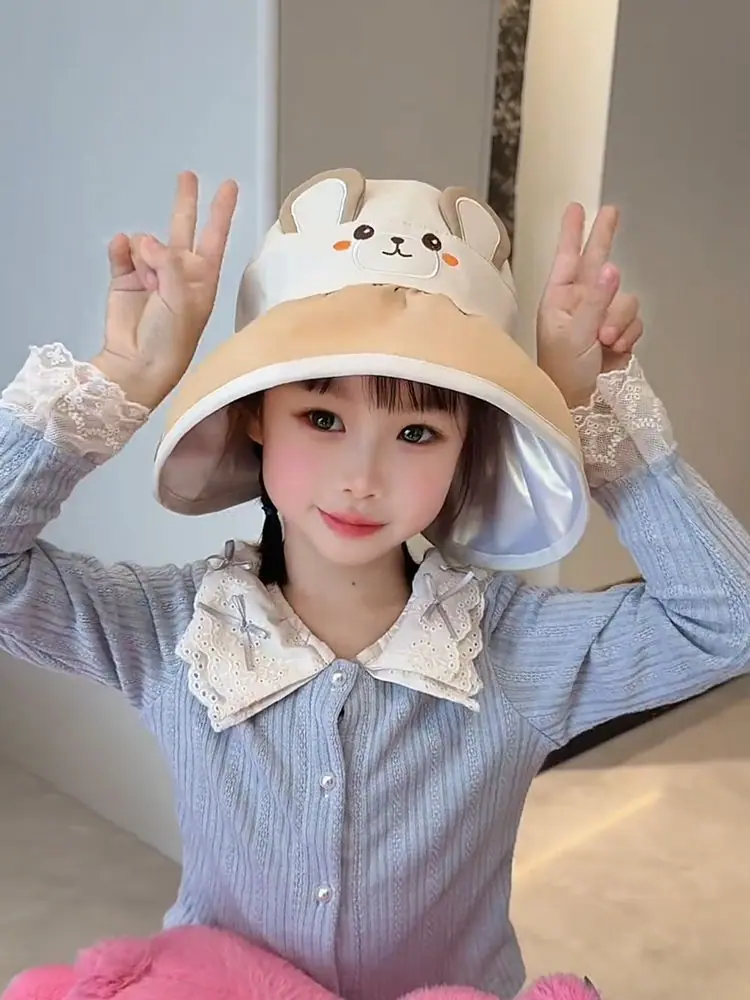 Chapéu de Sol Infantil de Desenho Animado Fofo Animal Pequeno Aba Larga Top Vazio Verão Viagem Proteção Ultravioleta Chapéu de Sol Fino