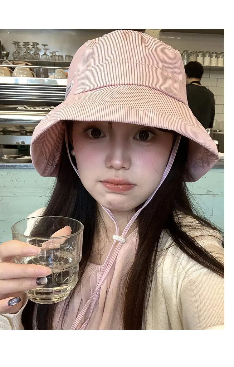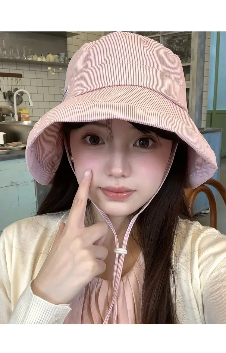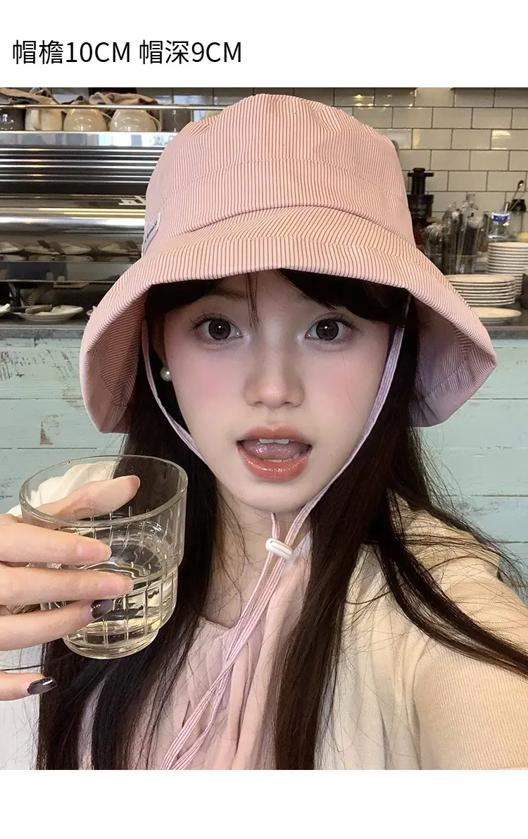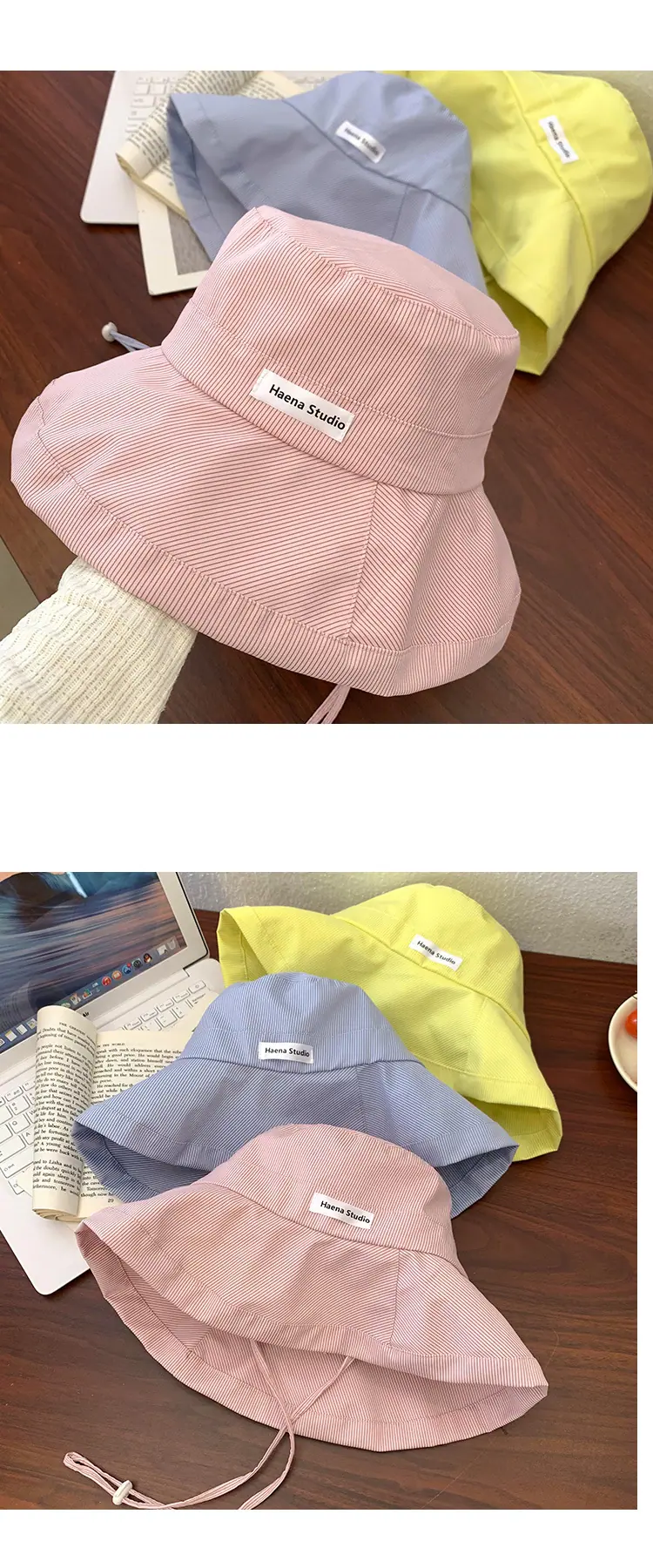 Chapéu de pescador listrado feminino para atividades ao ar livre, chapéu de sol de aba larga, novo para primavera e verão, viagem, fino, respirável, chapéu de bacia