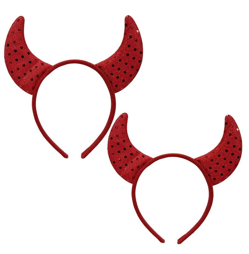 Small Sequined Fabric Red Devil Horn Headband