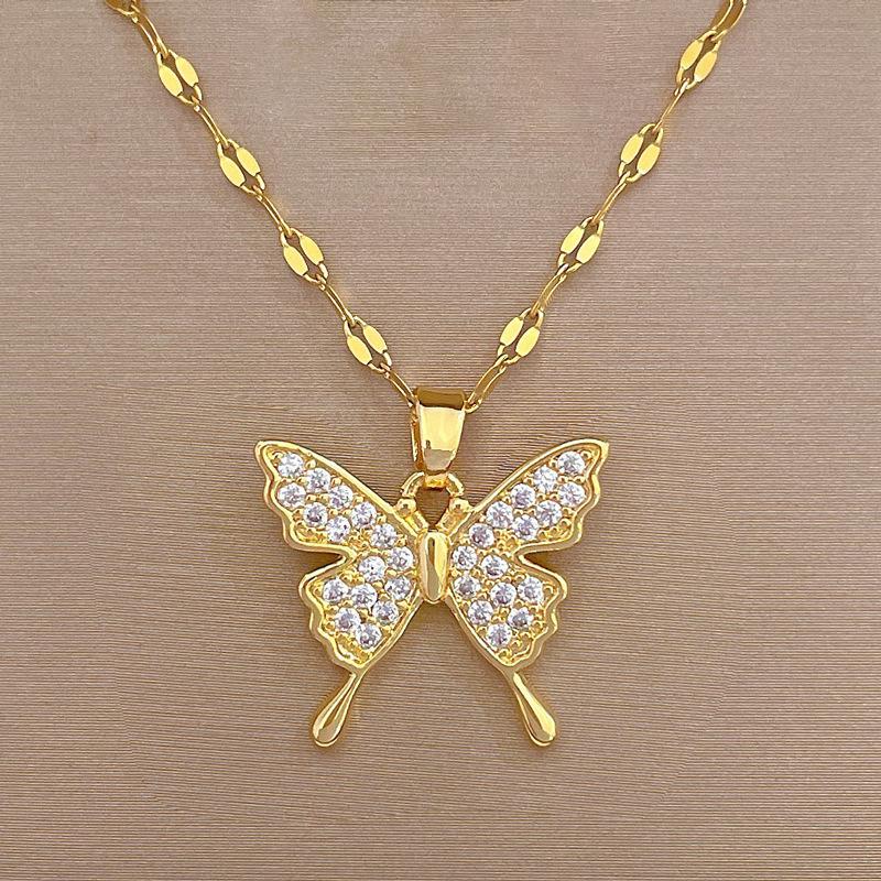 [Aço titânio] Luz de luxo elegante lindo borboleta mascote colar feminino internet celebridade all-match clavícula cadeia de titânio cadeia de aço