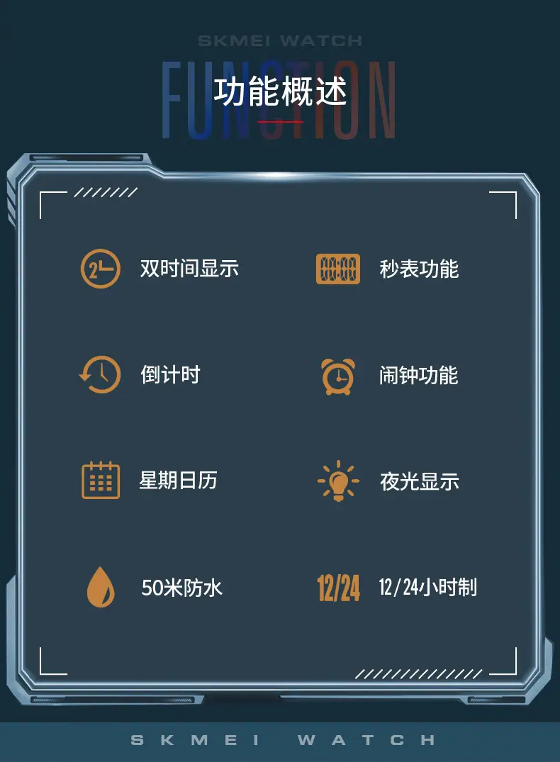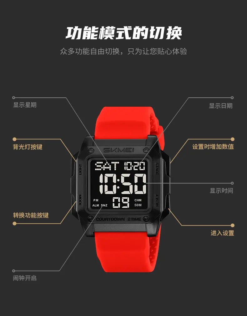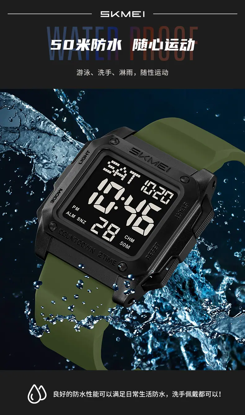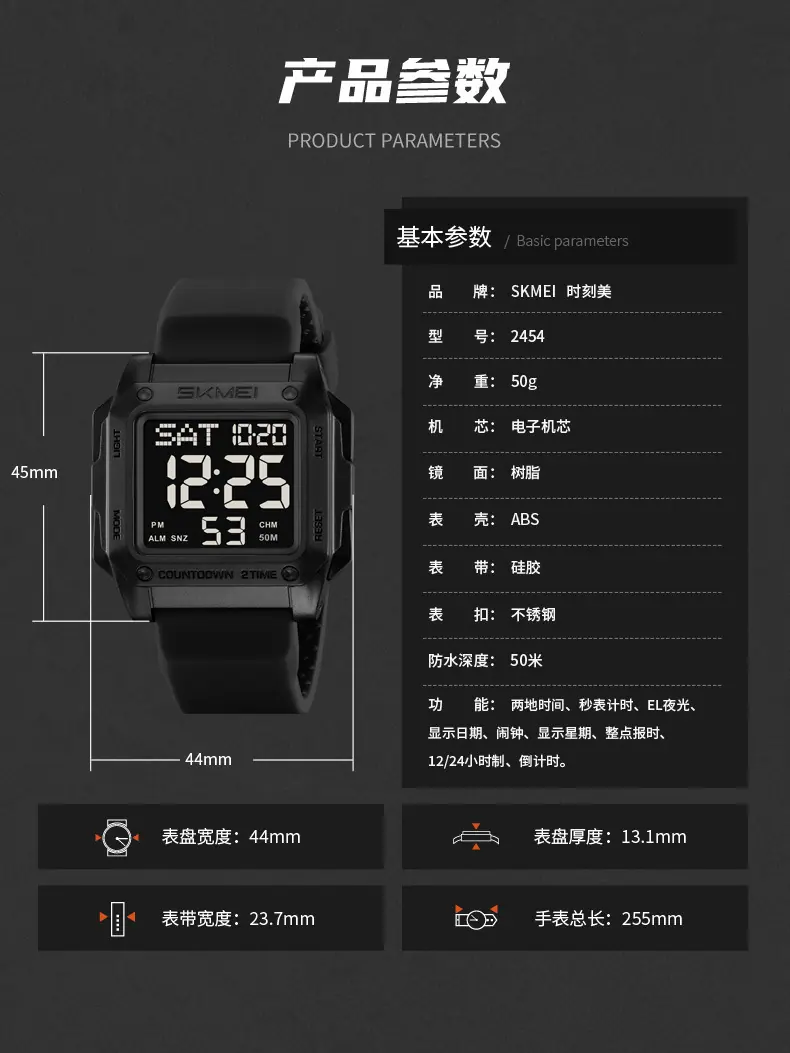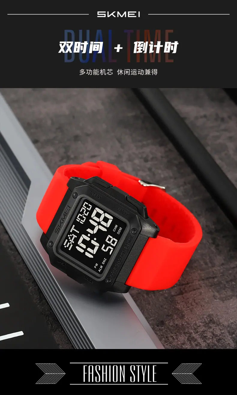 Relógio Eletrônico Estudantil Esportivo ao Ar Livre Skemi Hora Dupla Multifuncional À Prova d'Água Relógio Masculino Atacado