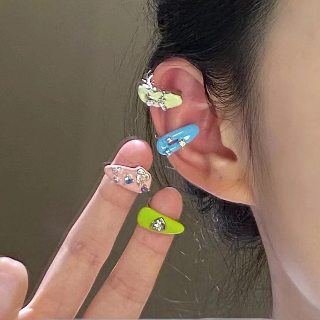 Dopamina Girl~Colorido e Divertido Clipe de Orelha de Gota de Óleo Design de Nicho Feminino Clipe para Cartilagem da Orelha Cartão de Cor Brincos Sem Furo