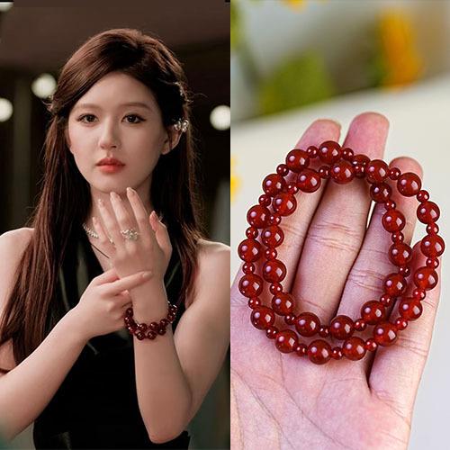 Compre Estilo Celebridade Ágata Vermelha Cordão de Mão Wenwan Moda Luxo Leve Calcedônia Conta Redonda Pulseira Xu Yan Joias de Contas Mulheres Atacado no atacado no Joom.pro