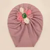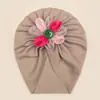 Chapéu Pulôver Infantil Europeu e Americano Multicolorido com Emenda e Flor Pequena Chapéu Indiano Elástico Macio para Meninas Chapéu de Bebê