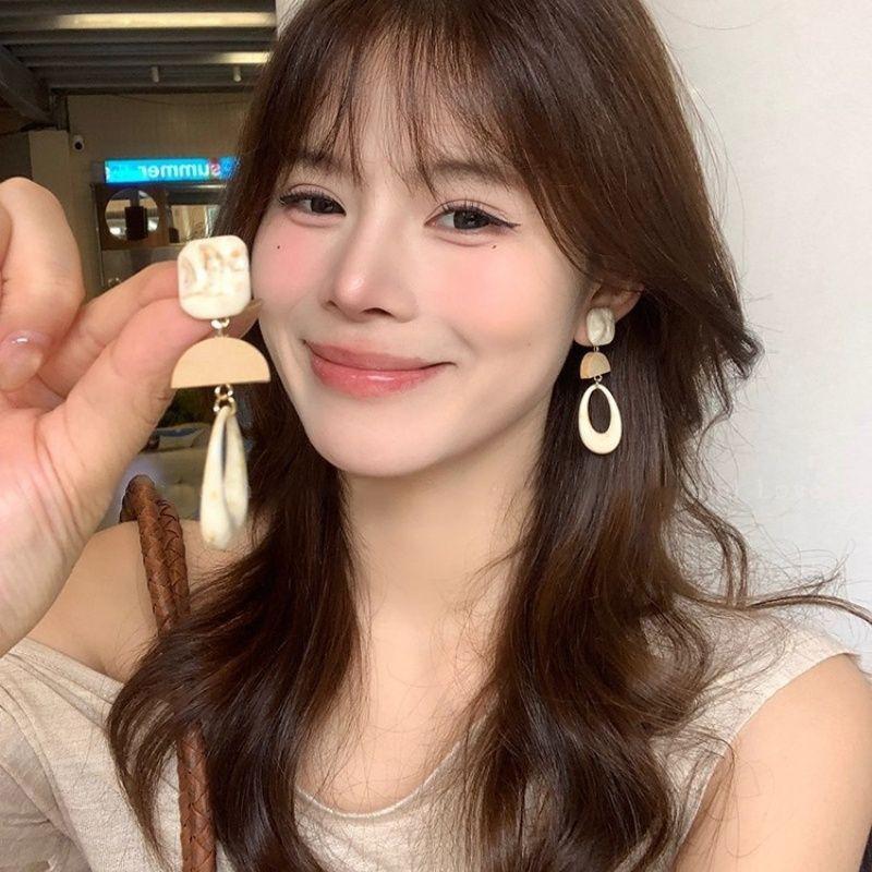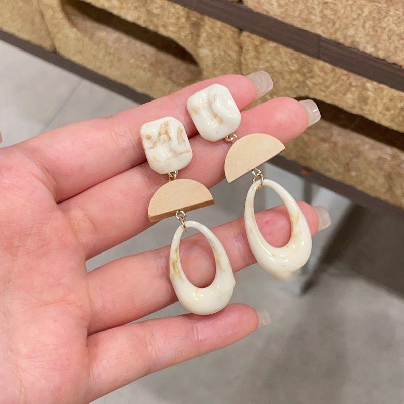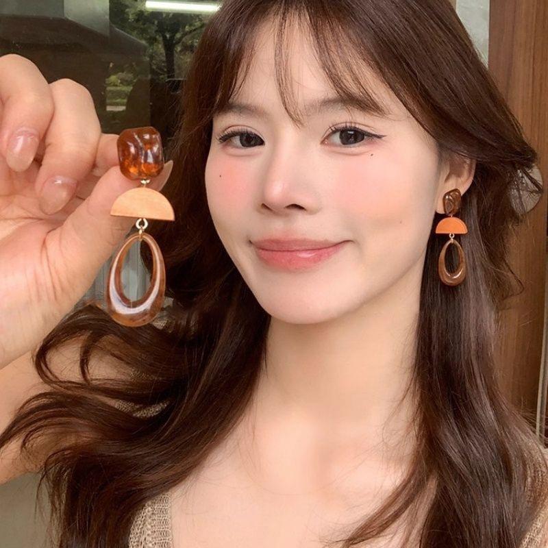 Brincos Prata Agulha Resina Quadrado Vazado Gota de Água Brincos Literários Retrô Moda Brincos Temperamento Feminino Design de Nicho