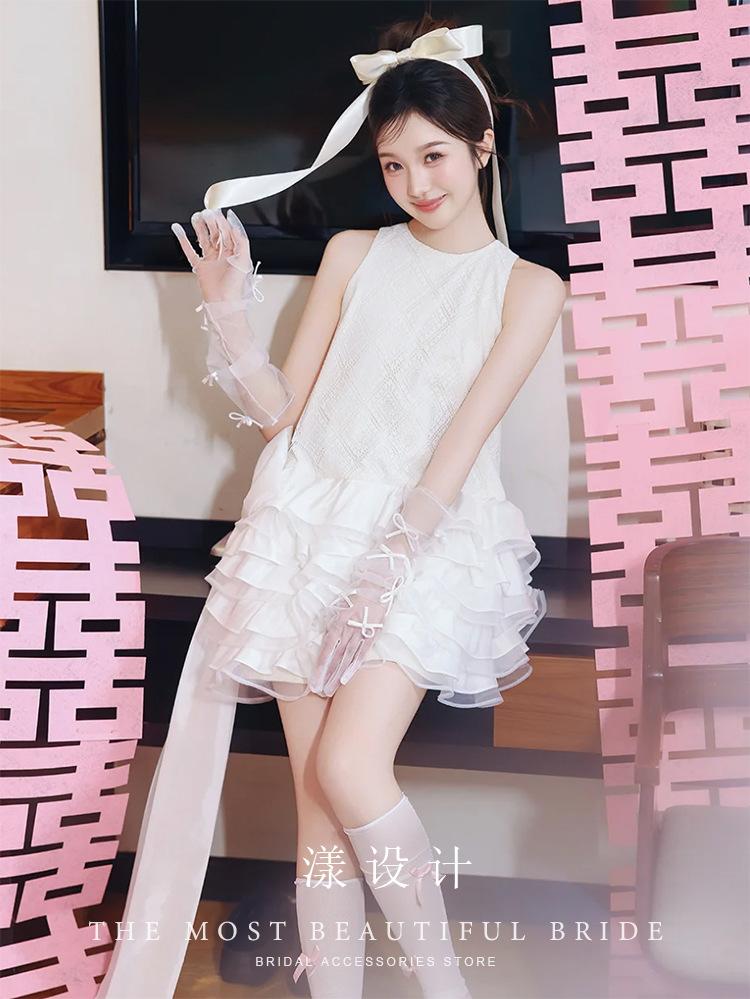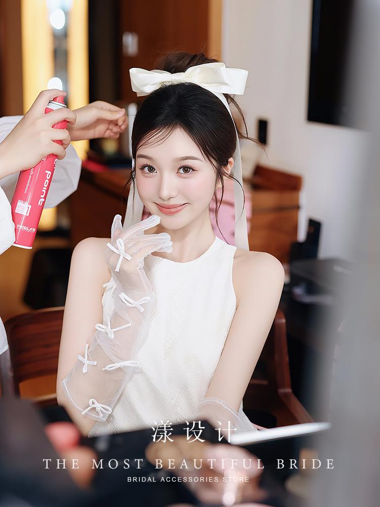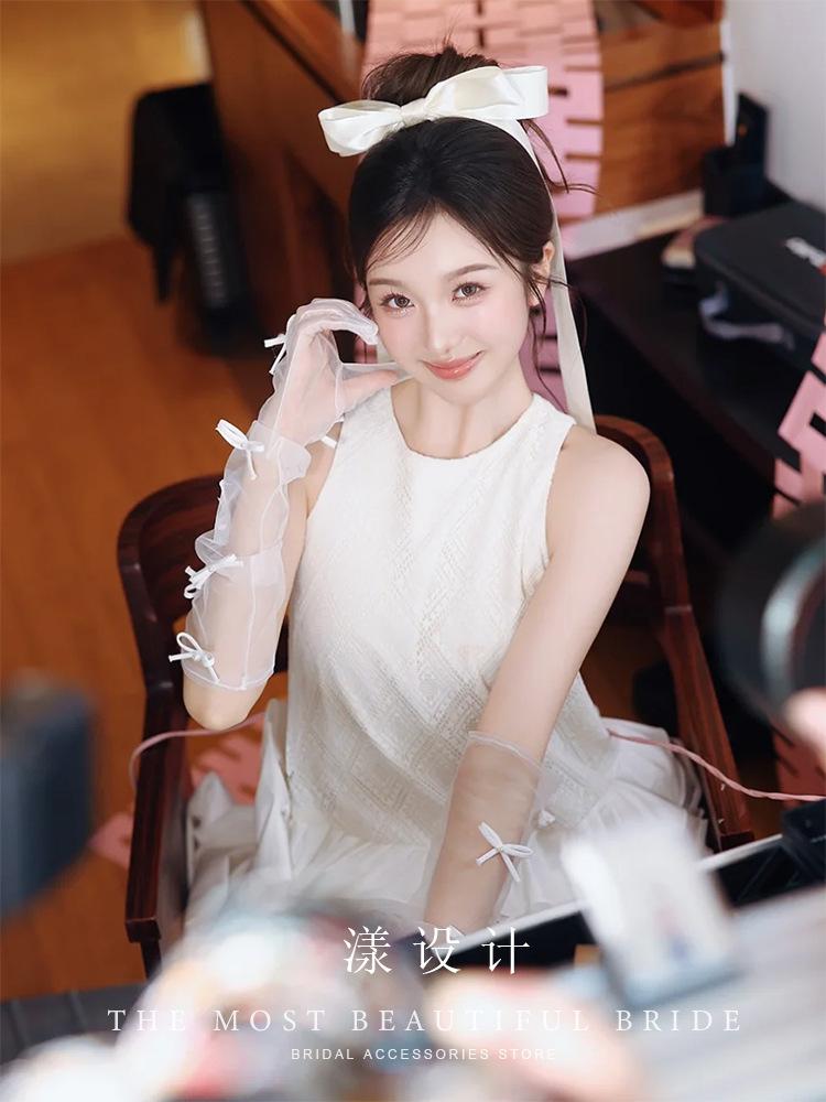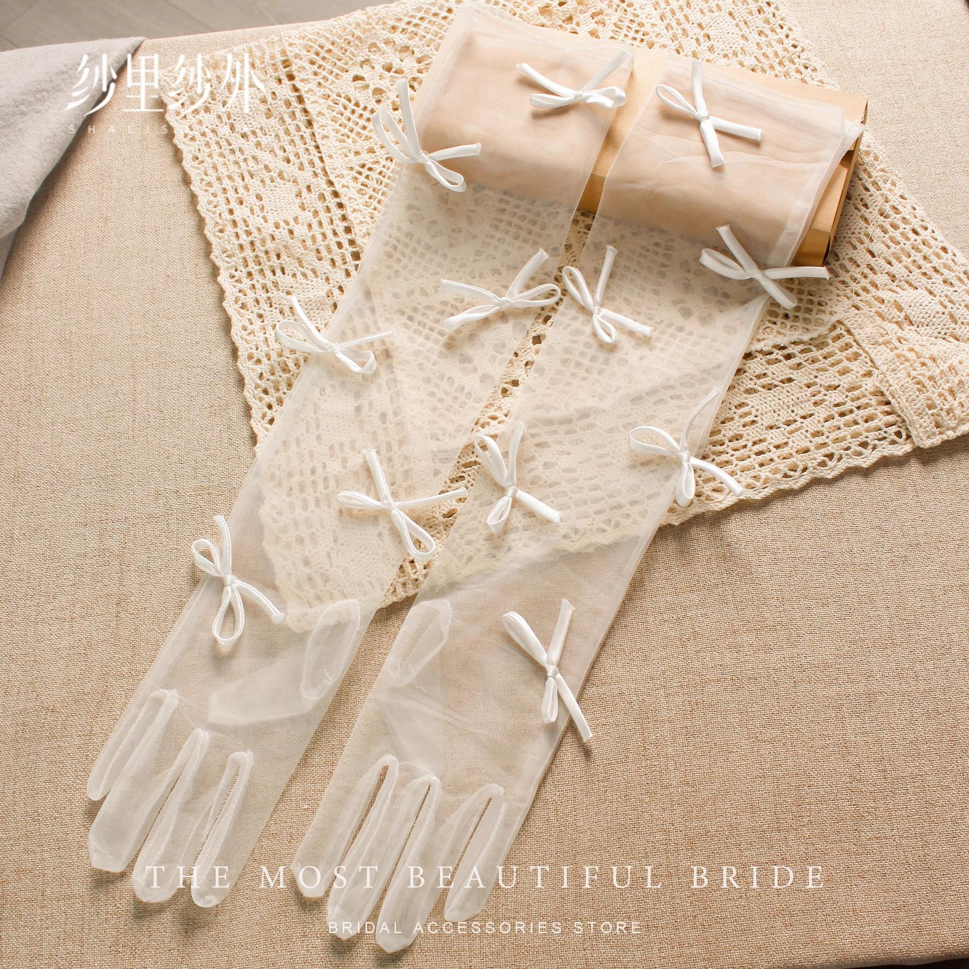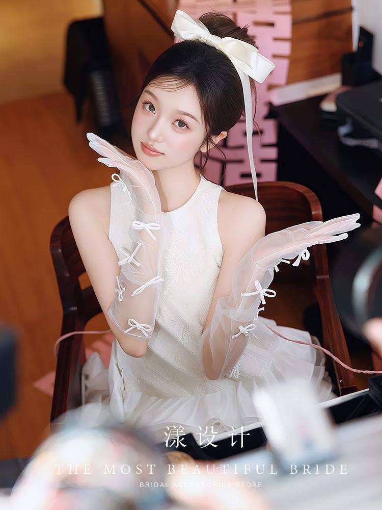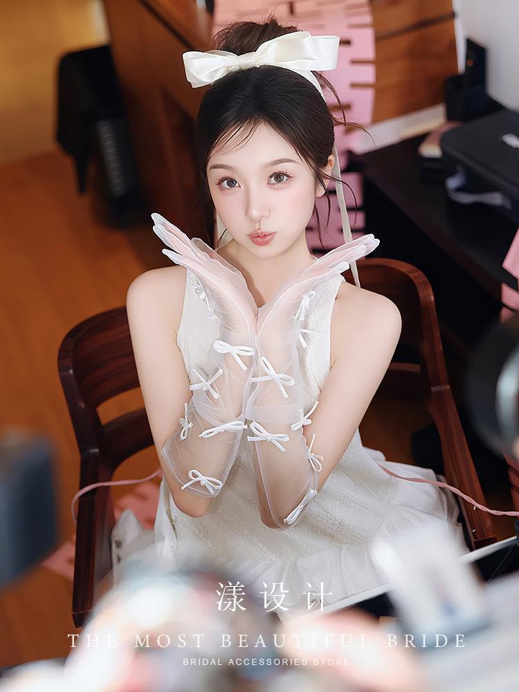 Mesh bow gloves about 50cm, Model's same lop-eared rabbit bow headdress, Mesh cloud butterfly gloves about 50c...