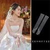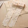 Luvas de Casamento Cetim Laço Branco Comprimento Médio Renda Tela Nupcial Joias de Casamento Estilo Acessórios para Vestido