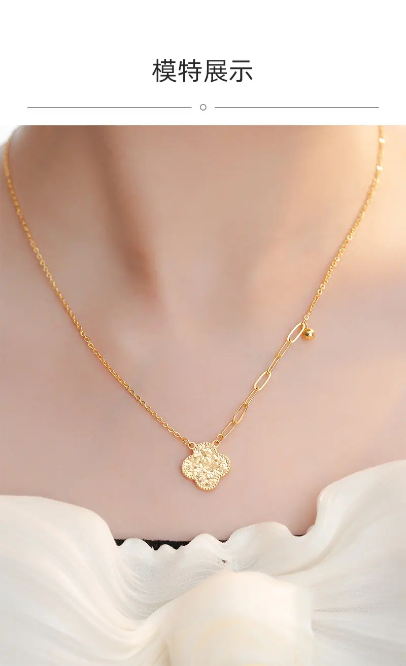 Zodiac Horse Necklace (Vacuum Plated with Real Gold), Plain Necklace (Vacuum Plated with Real Gold), Four-leaf...