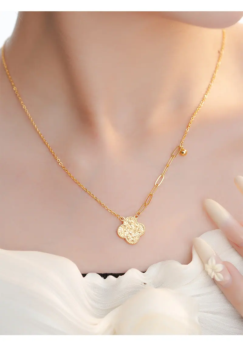 Broken Ice Clover Necklace (Vacuum Real Gold Plating)