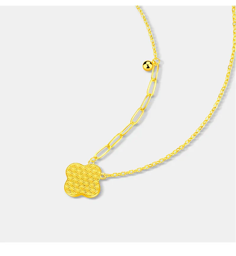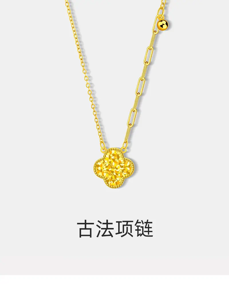 Colar Trevo de Quatro Folhas de Ouro Antigo CNC Precisão Nanômetro Galvanoplastia a Vácuo Cadeia Clavicular Feminina de Luxo Leve High-End Transfronteiriço