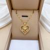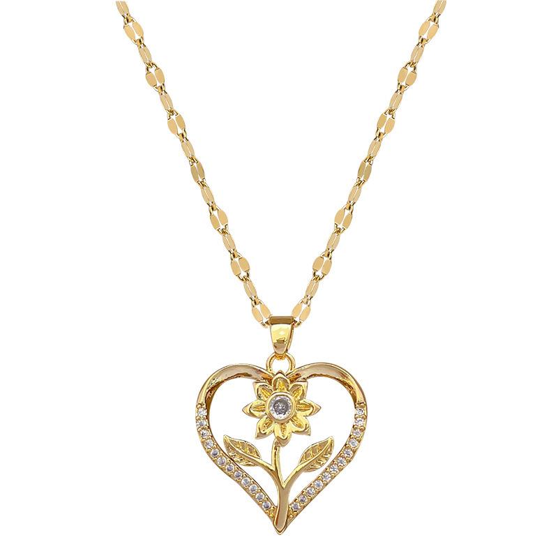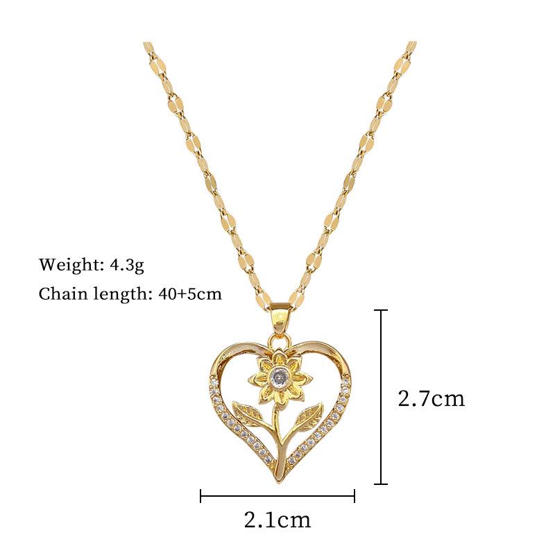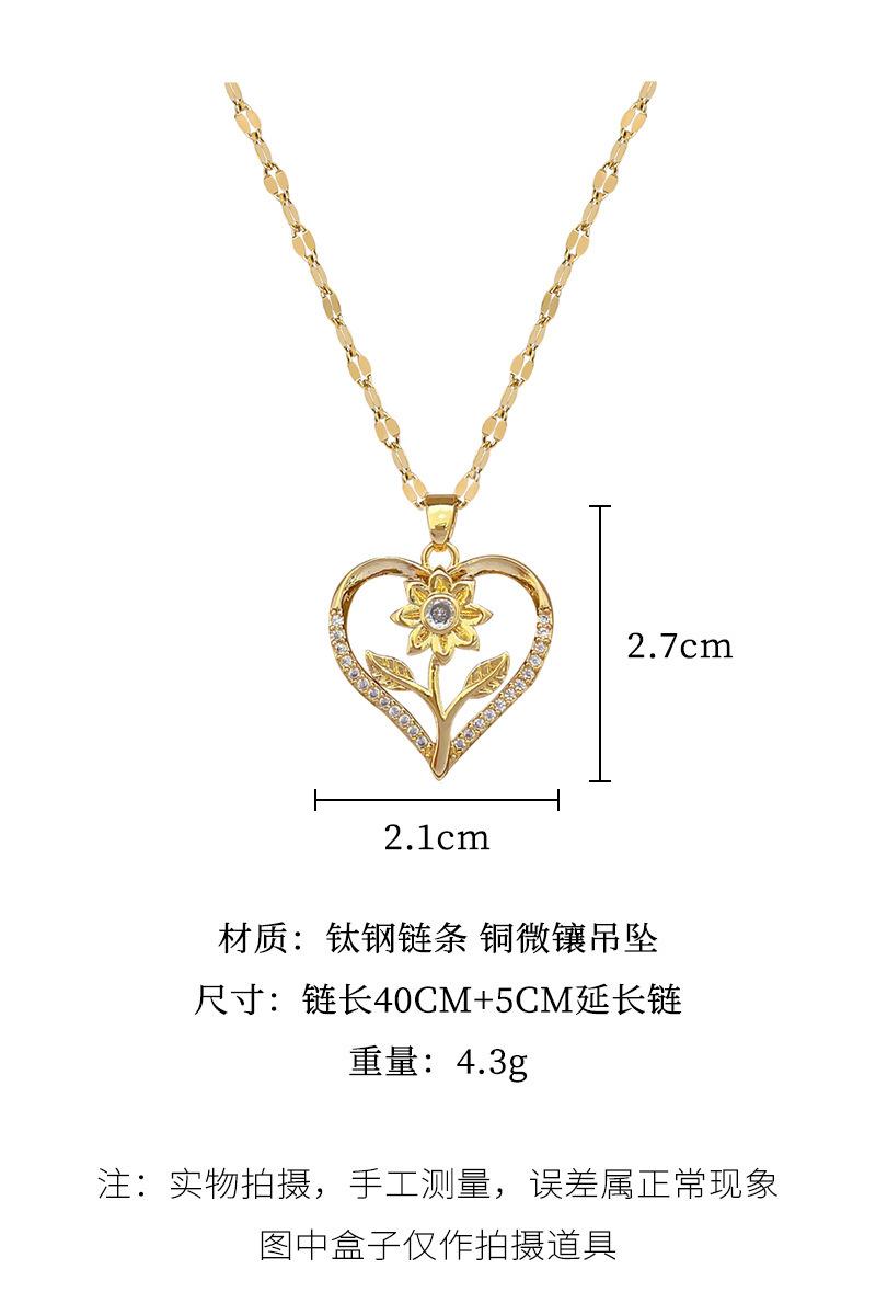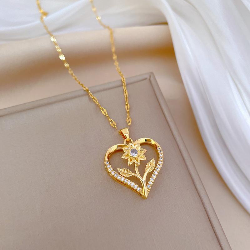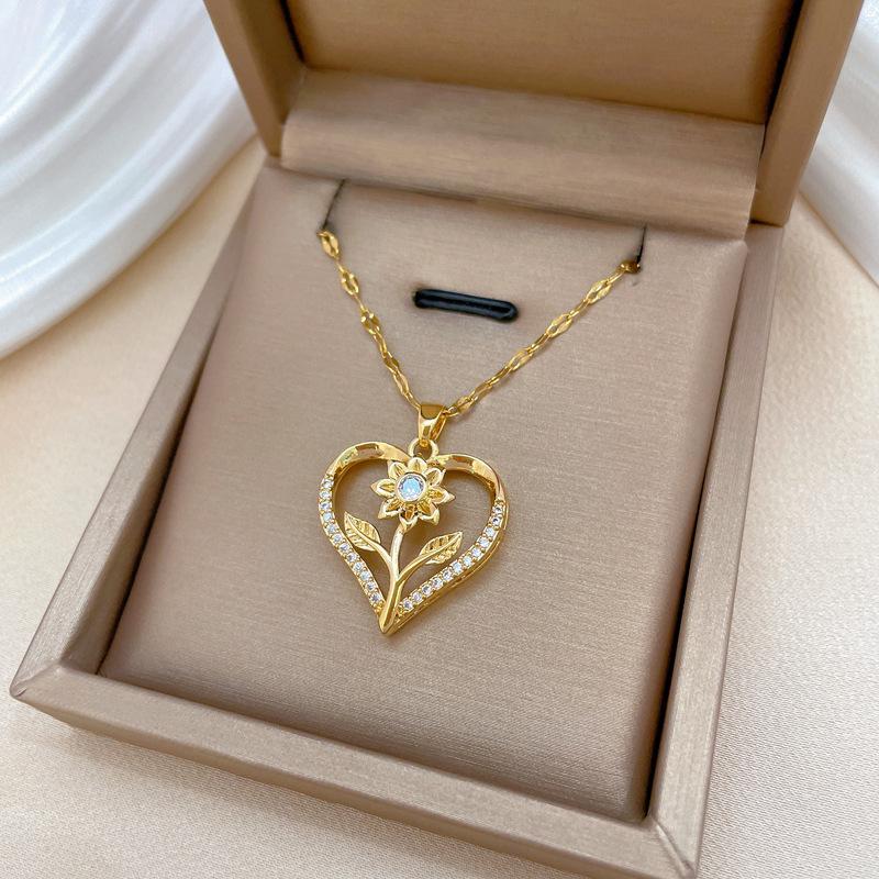[Aço titânio] Coração de Pêssego Rosa Flor Luz Luxo Elegante Lindo Colar de Diamante Corrente de Clavícula Feminina Corrente de Aço de Titânio
