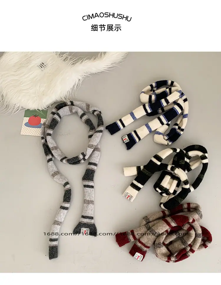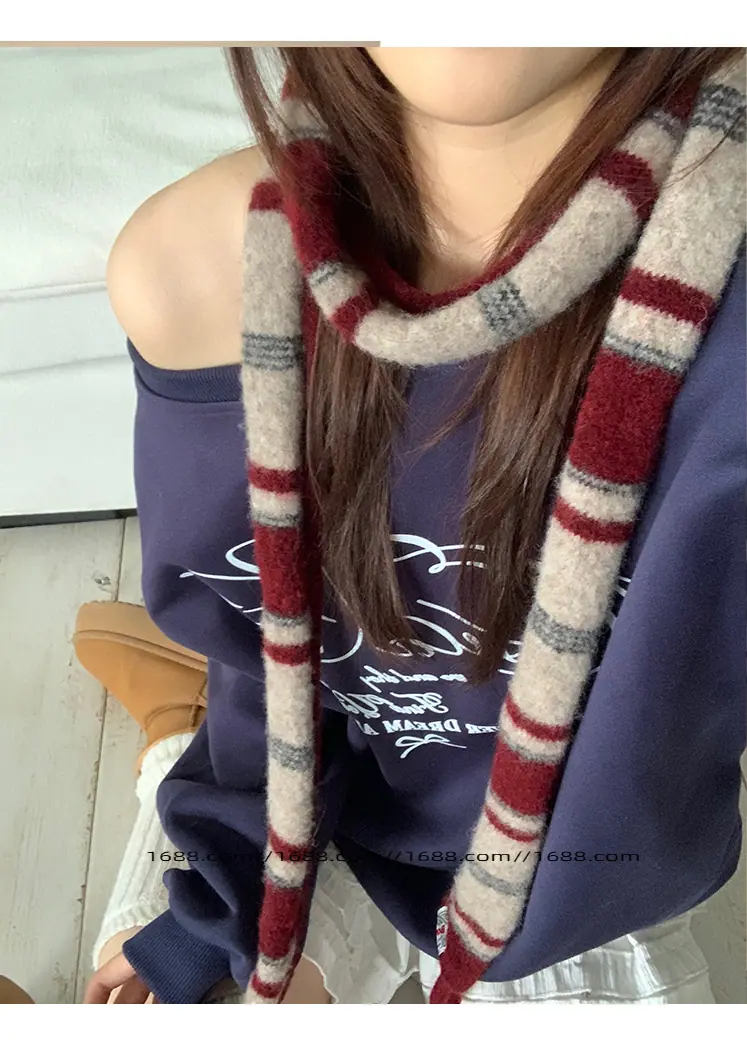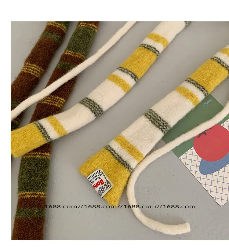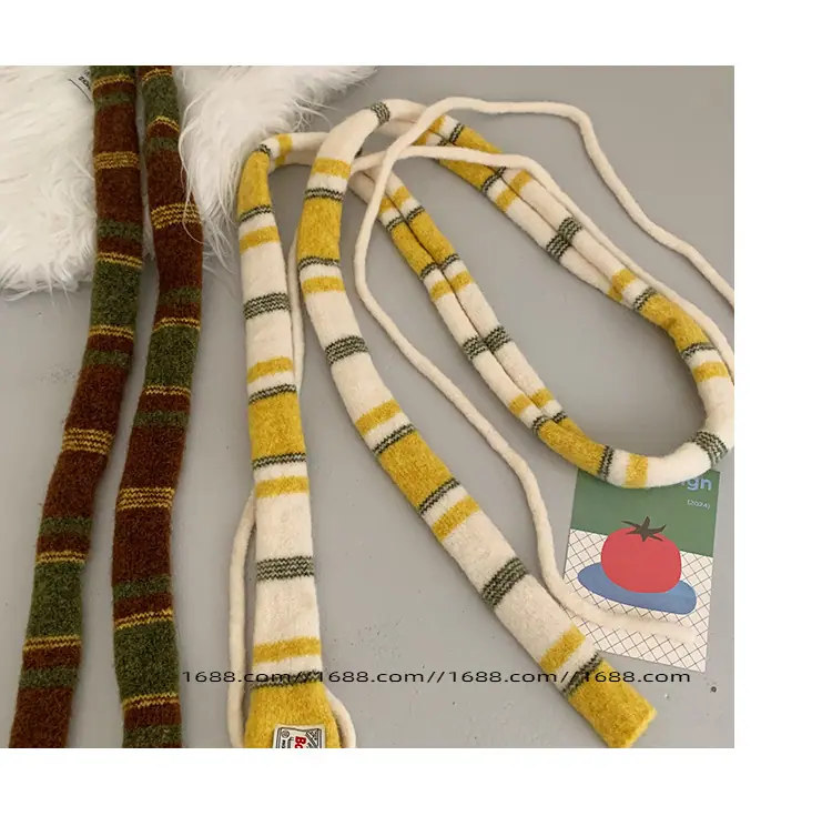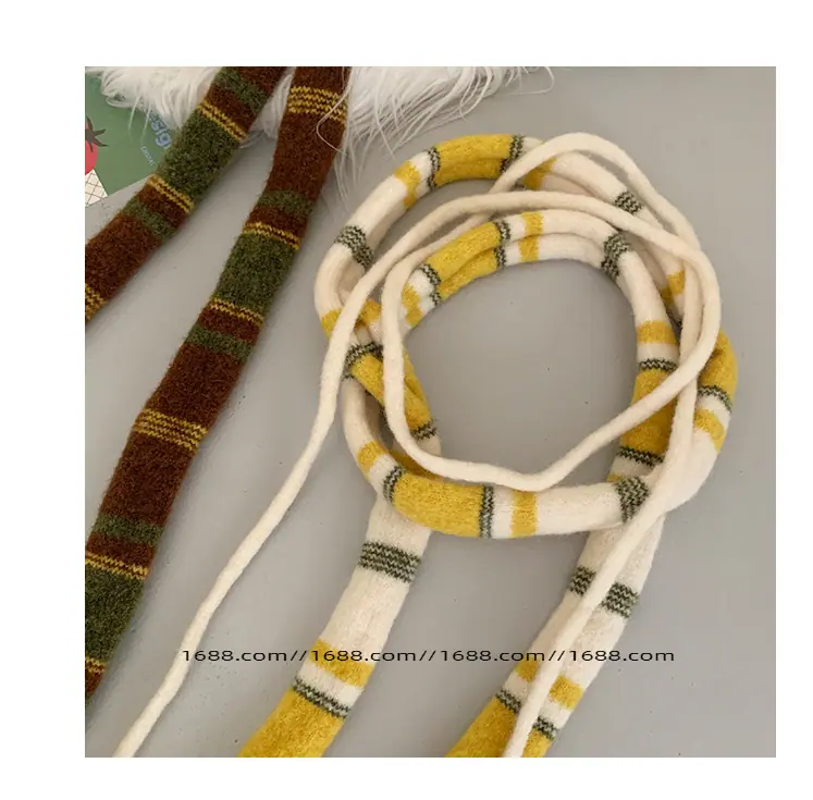 Design de textura coreano listrado lenço baguette de corda dupla outono e inverno feminino moderno versátil quente decorativo proteção de pescoço