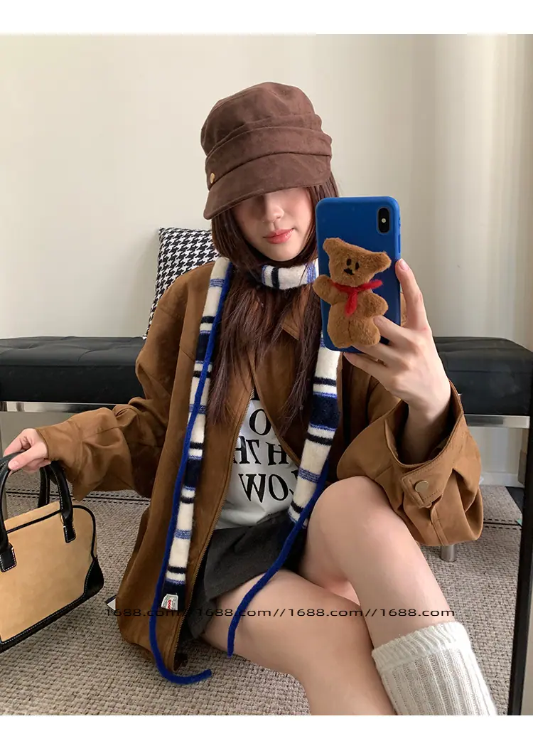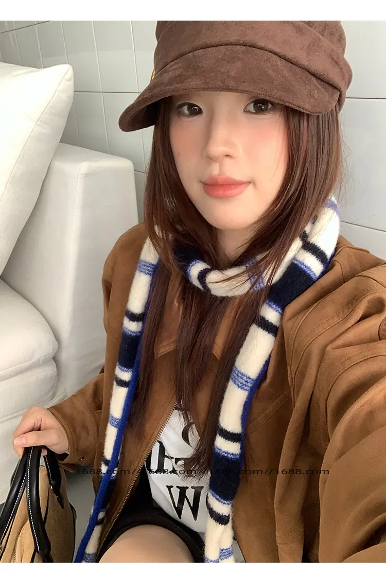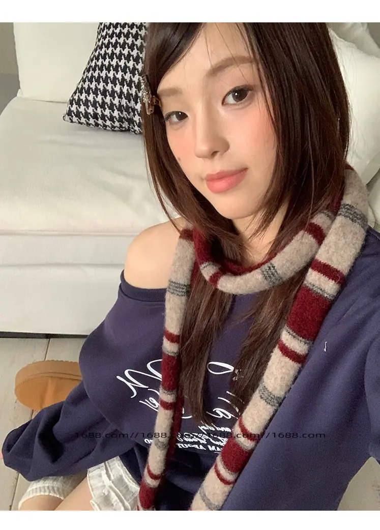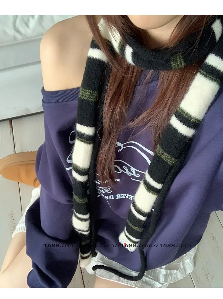 Design de textura coreano listrado lenço baguette de corda dupla outono e inverno feminino moderno versátil quente decorativo proteção de pescoço