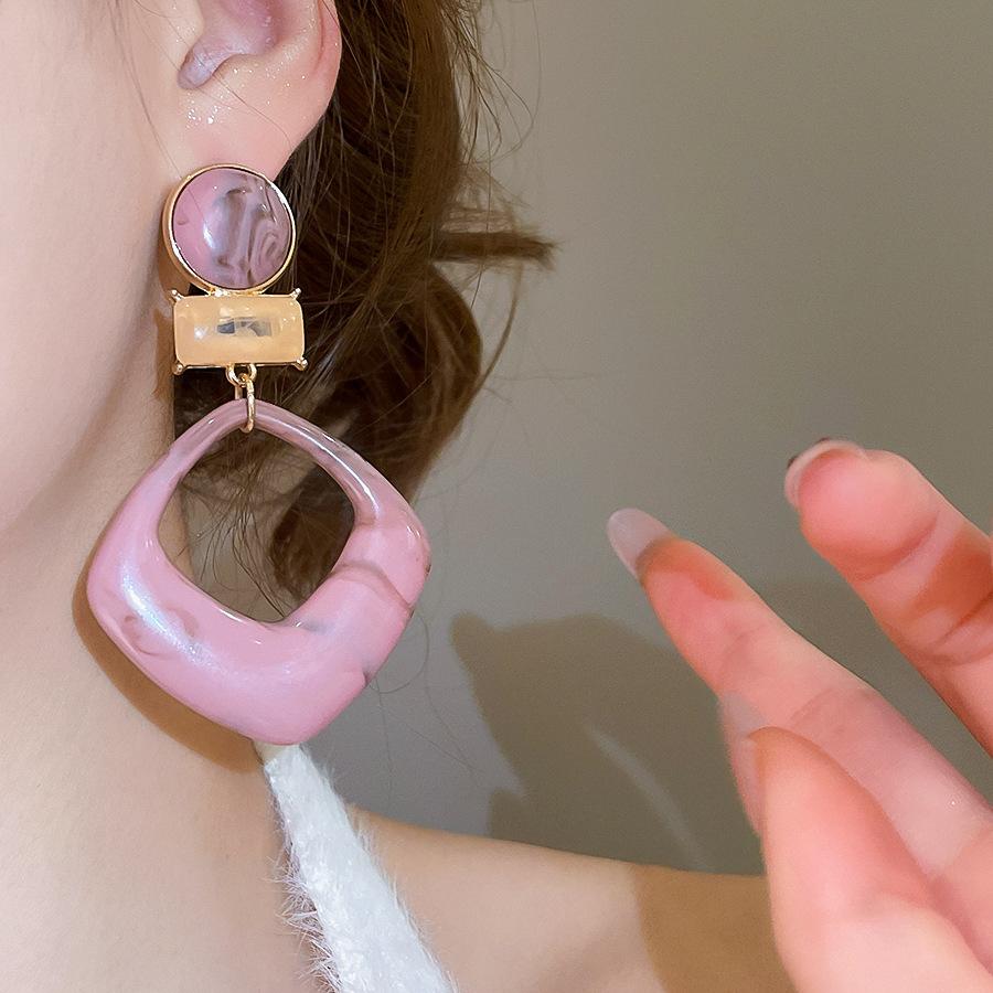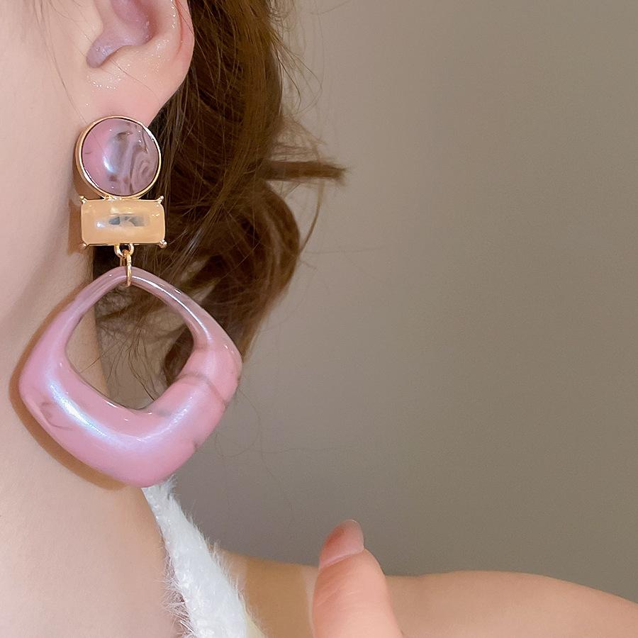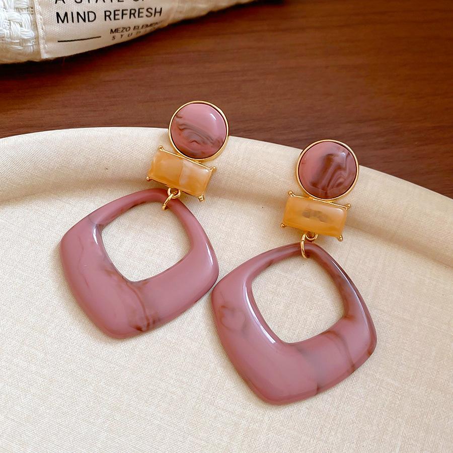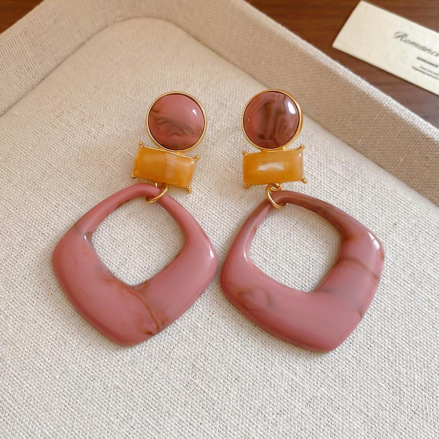 Compre Brincos Pendentes Geométricos Redondos de Resina Agulha de Prata Moda Doce Temperamento Brincos de Pino Design de Nicho Brincos Mulheres no atacado no Joom.pro