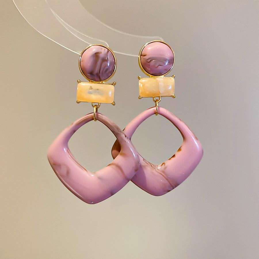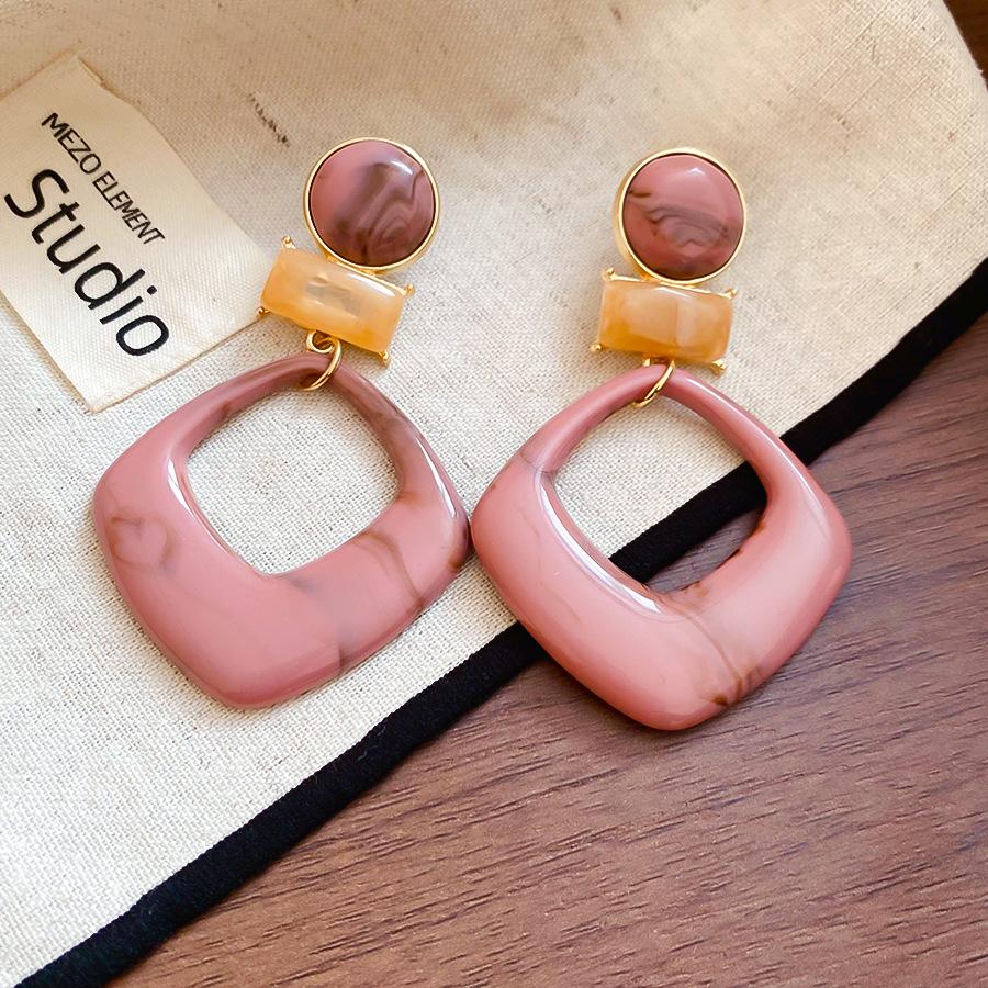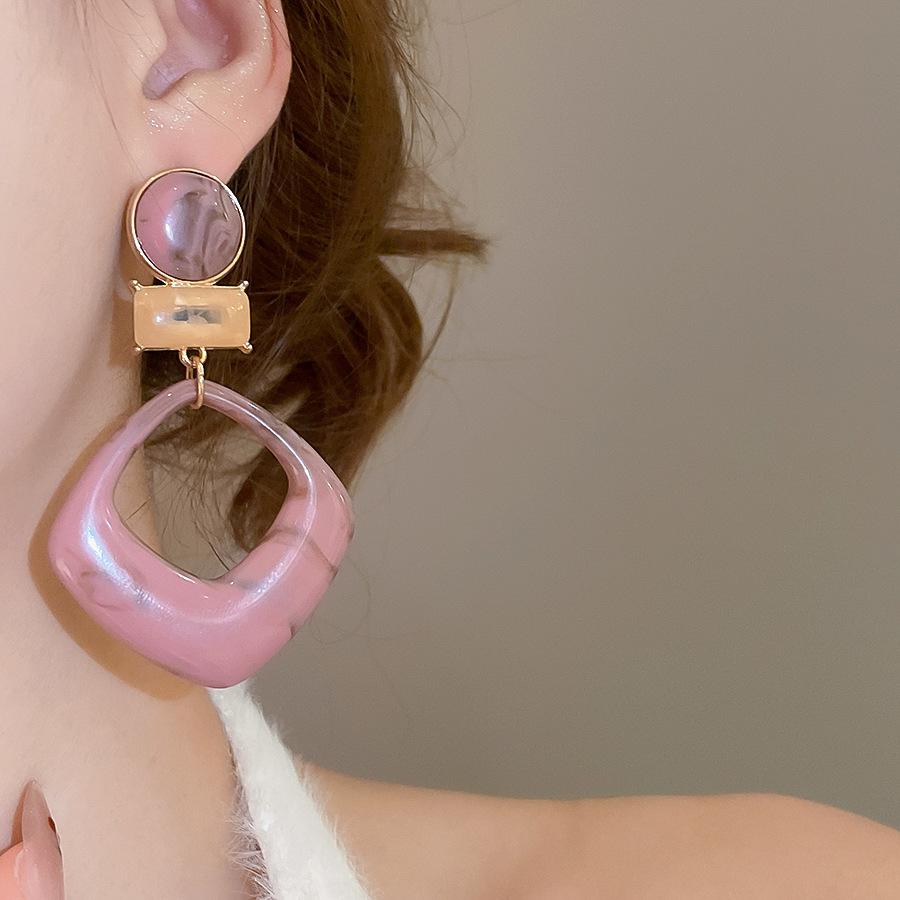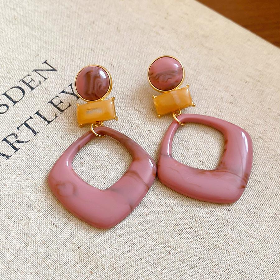 Compre Brincos Pendentes Geométricos Redondos de Resina Agulha de Prata Moda Doce Temperamento Brincos de Pino Design de Nicho Brincos Mulheres no atacado no Joom.pro