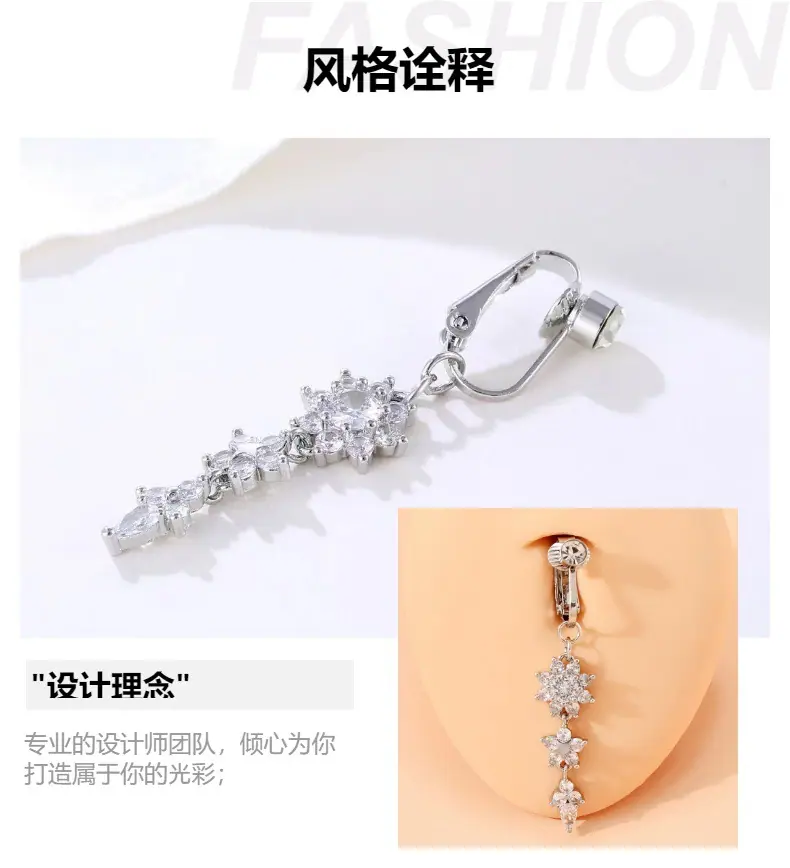 Moda Nova Transfronteiriça Europeia e Americana Simples Pingente de Flor Sem Furos Joia Longa para Piercing Anel de Umbigo Unha de Umbigo Falsa