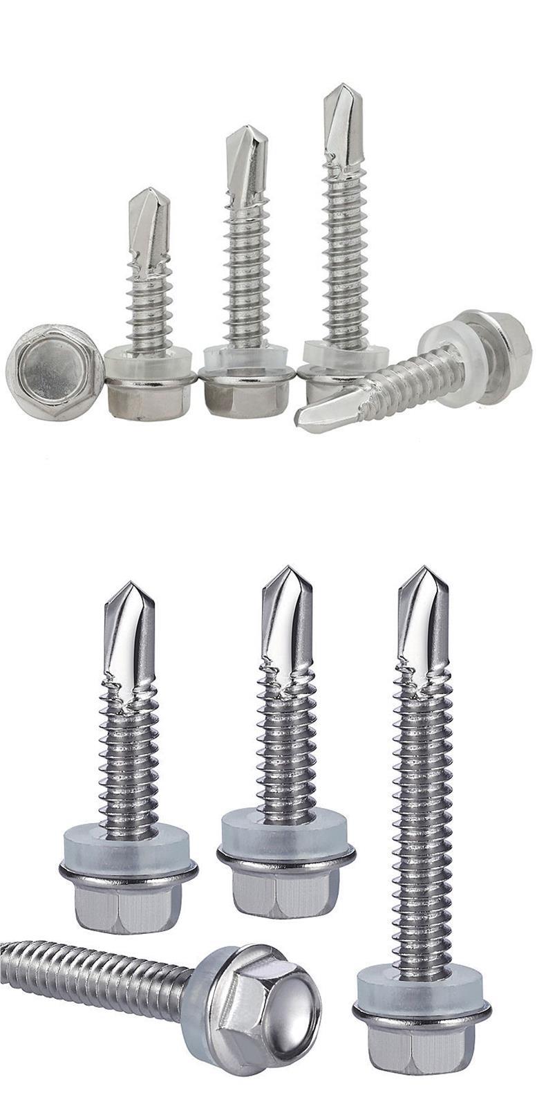 Parafusos Rabo de Andorinha de Aço Inoxidável 304 410 Sextavado Externo Ponta Broca Telha Aço Colorido Autoperfurantes Autoatarraxantes Magnéticos M5.5M6.3