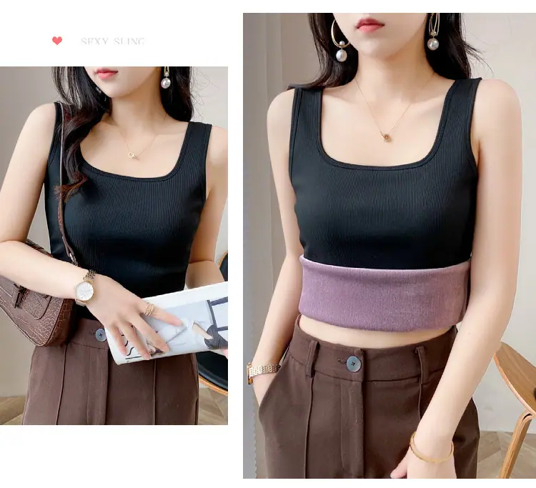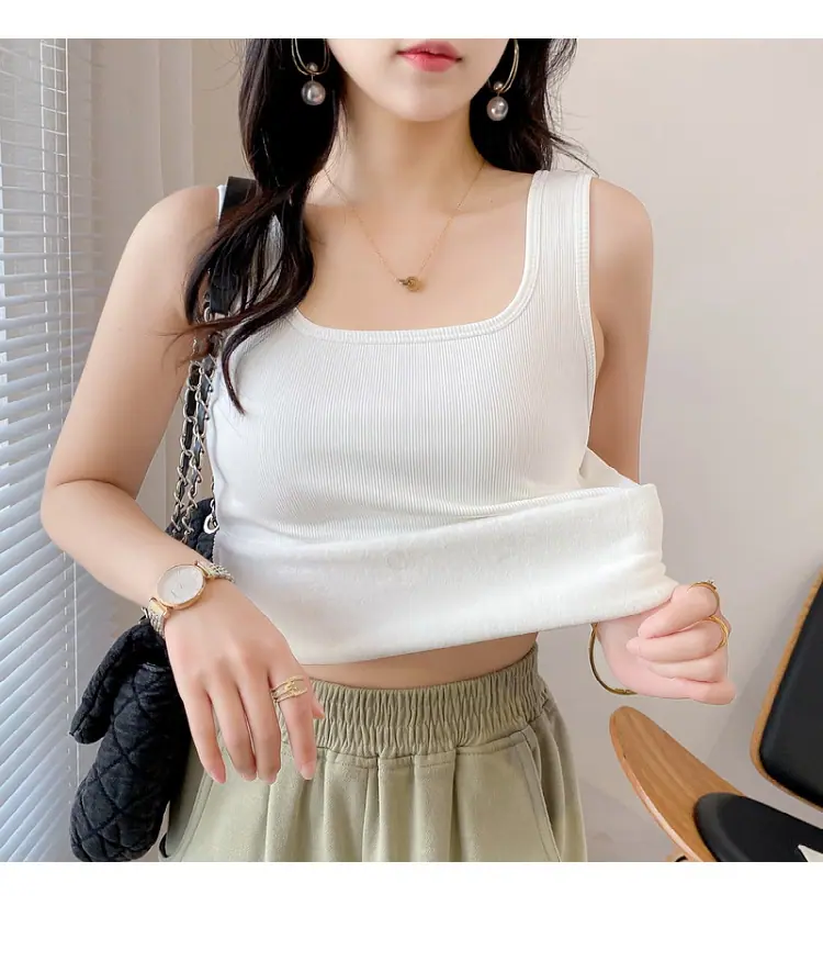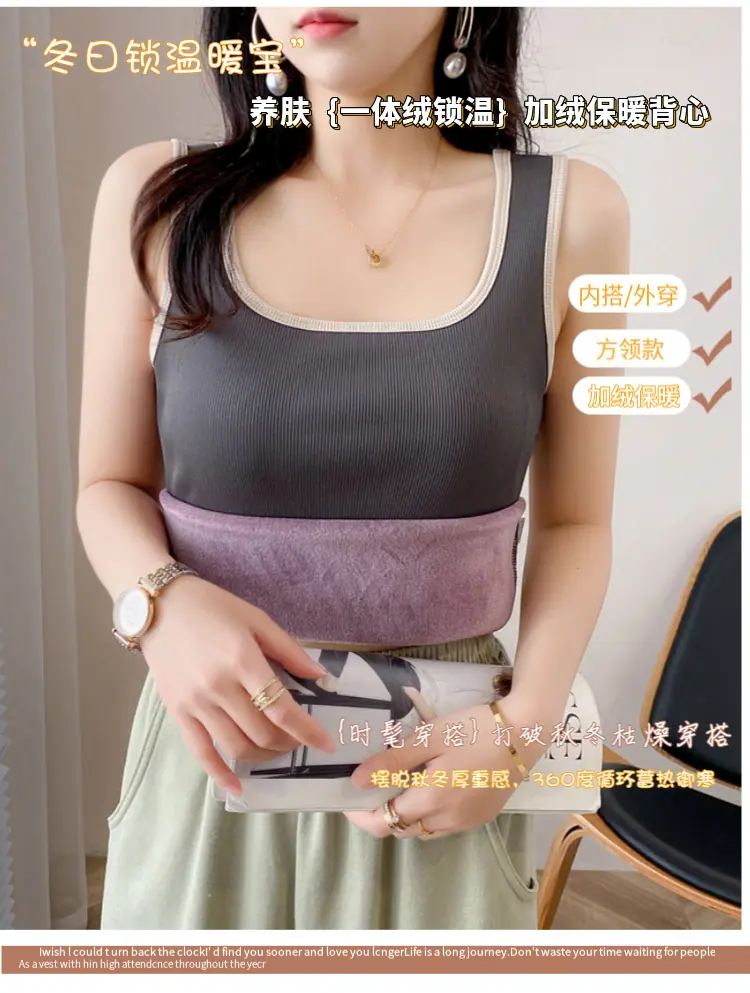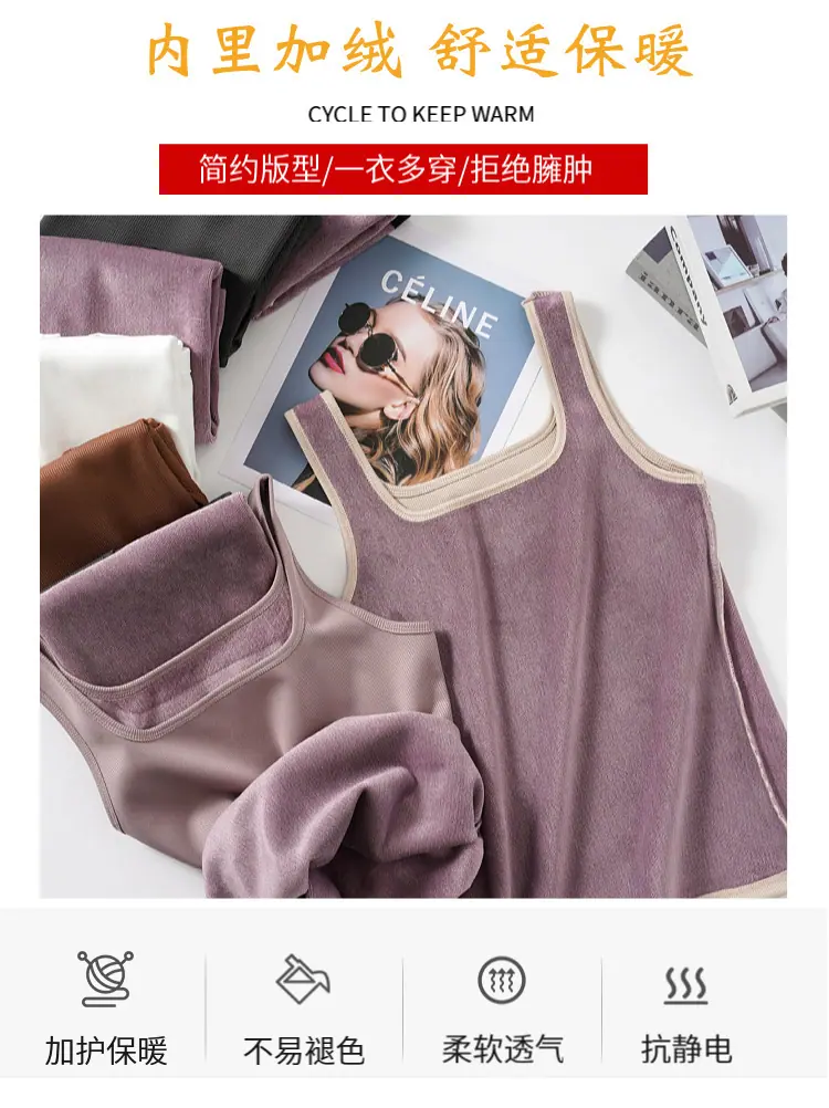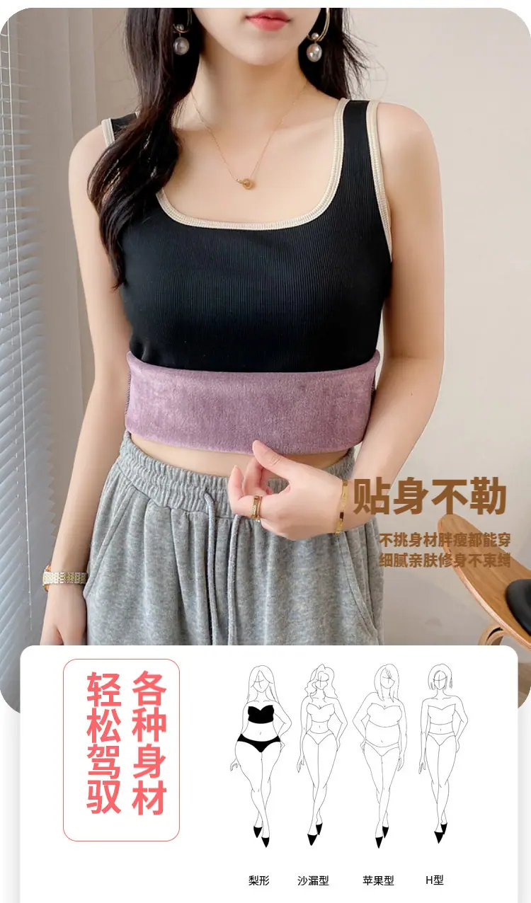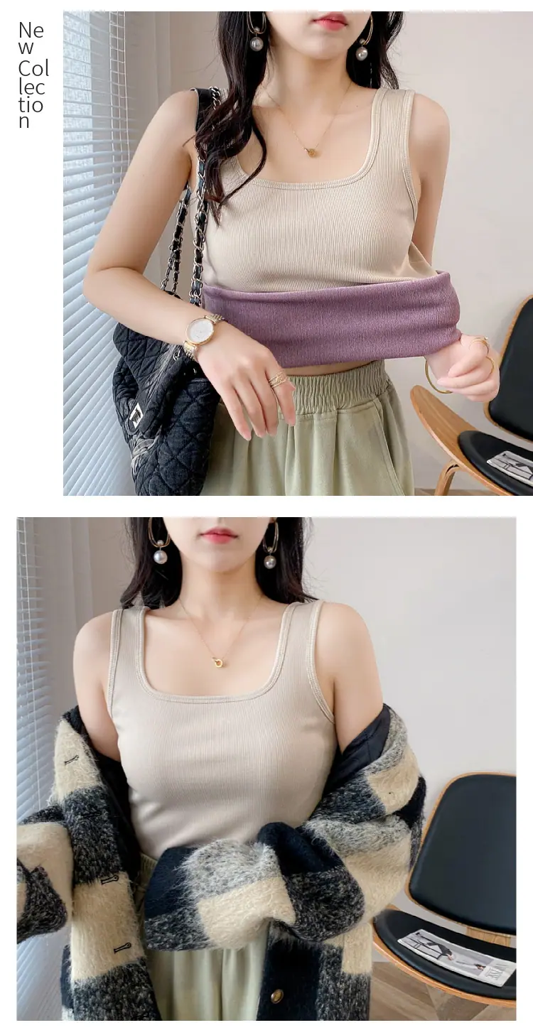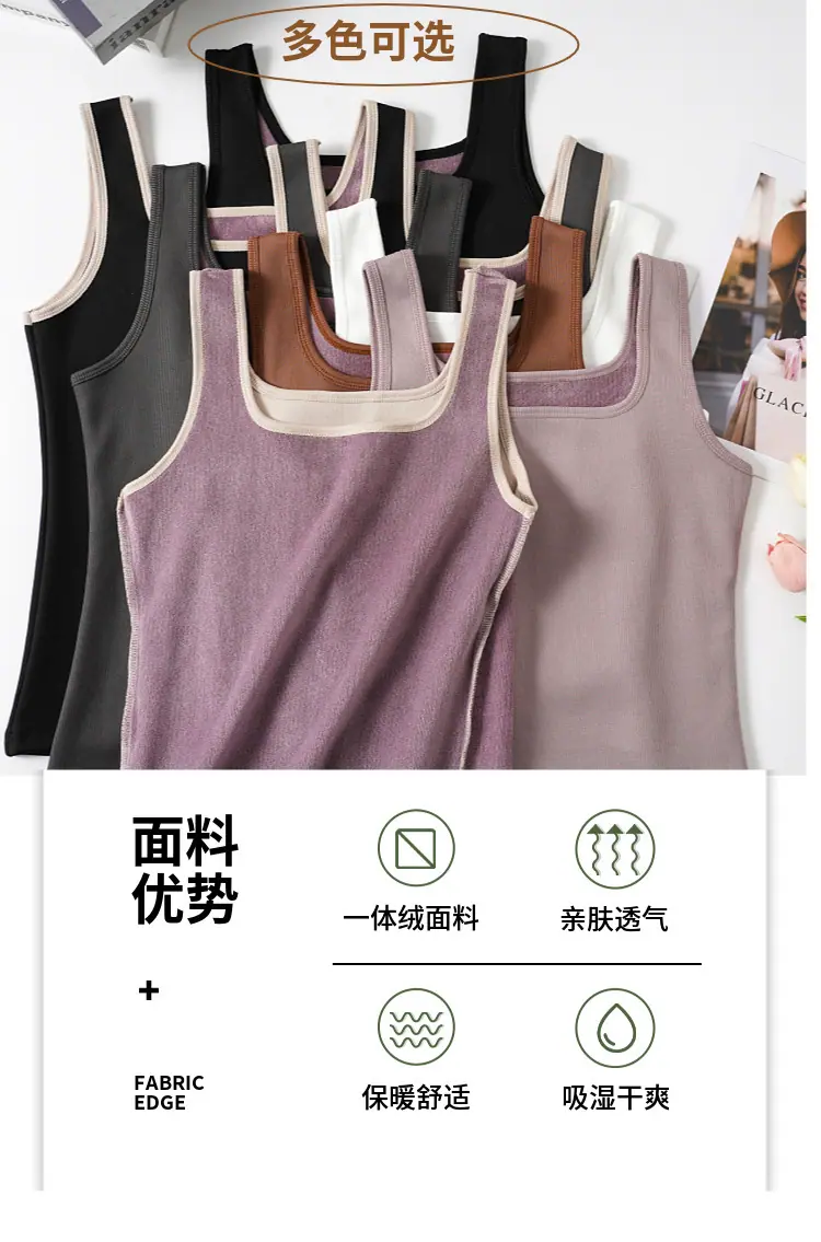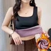 Colete quente de lã de peça única plus veludo feminino 2025 outono e inverno novo gola quadrada versátil roupa interior quente camisa base up