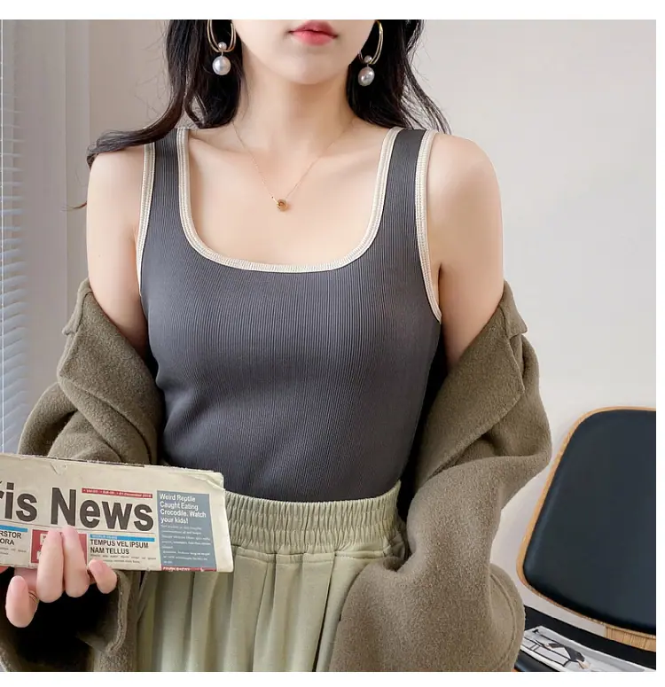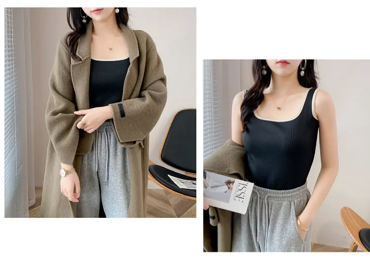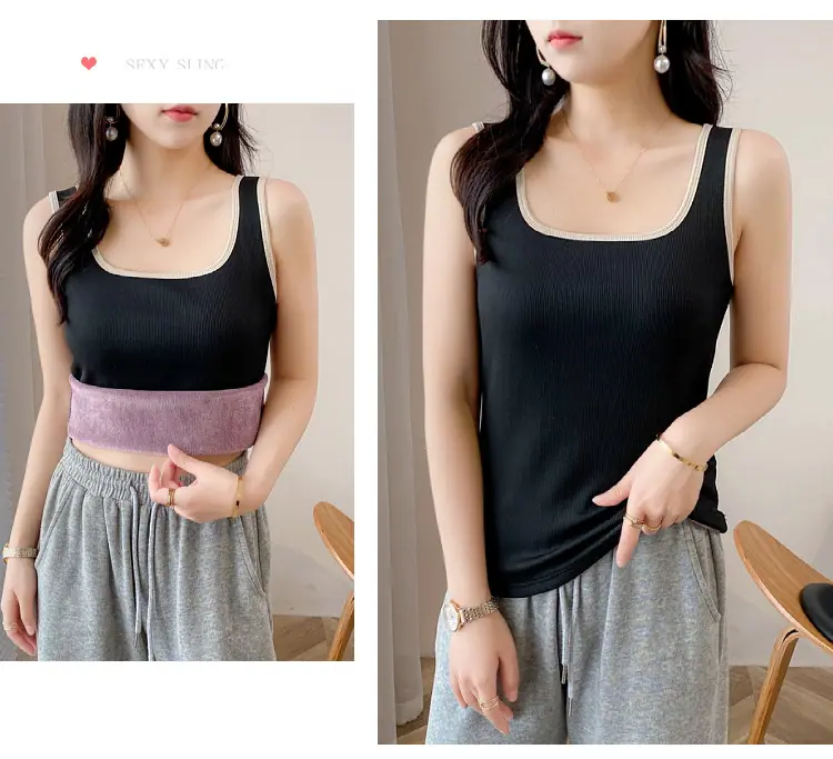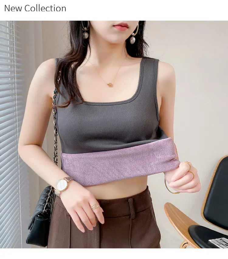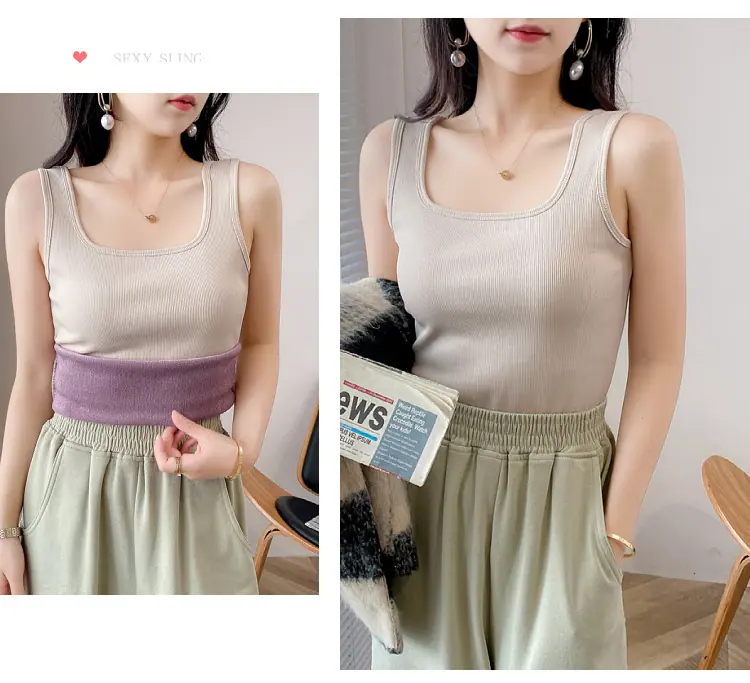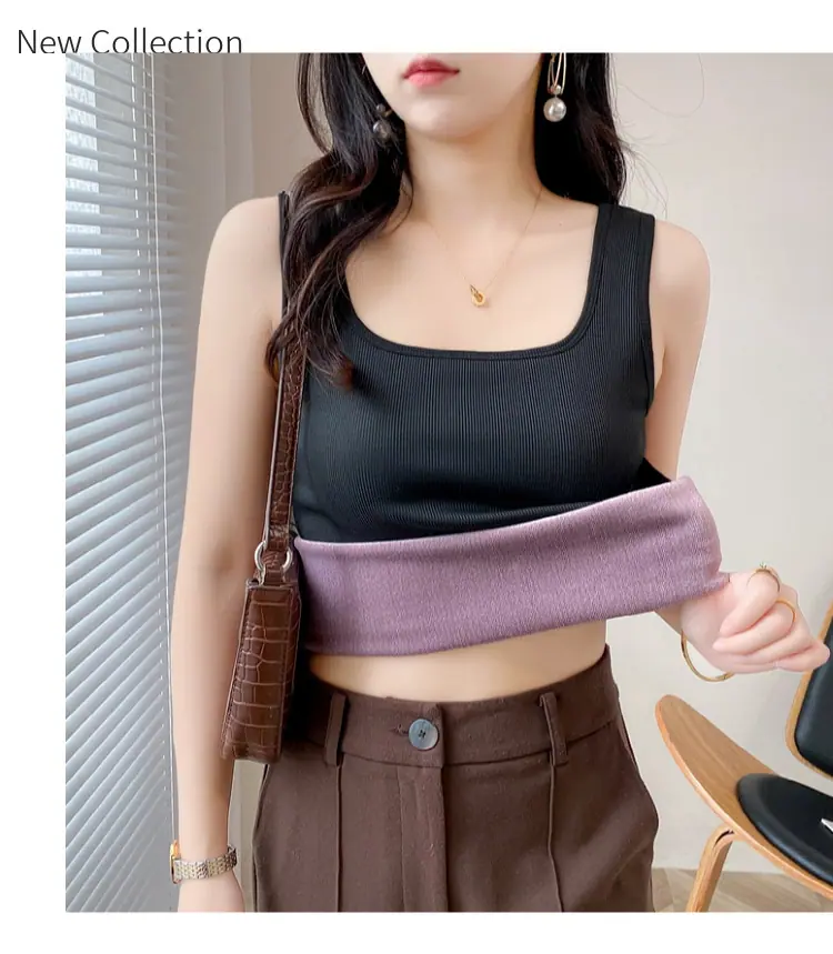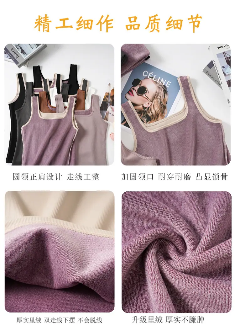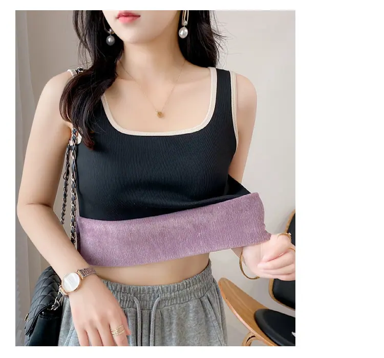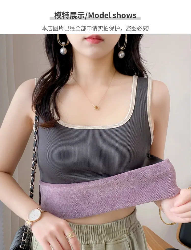 Colete quente de lã de peça única plus veludo feminino 2025 outono e inverno novo gola quadrada versátil roupa interior quente camisa base up