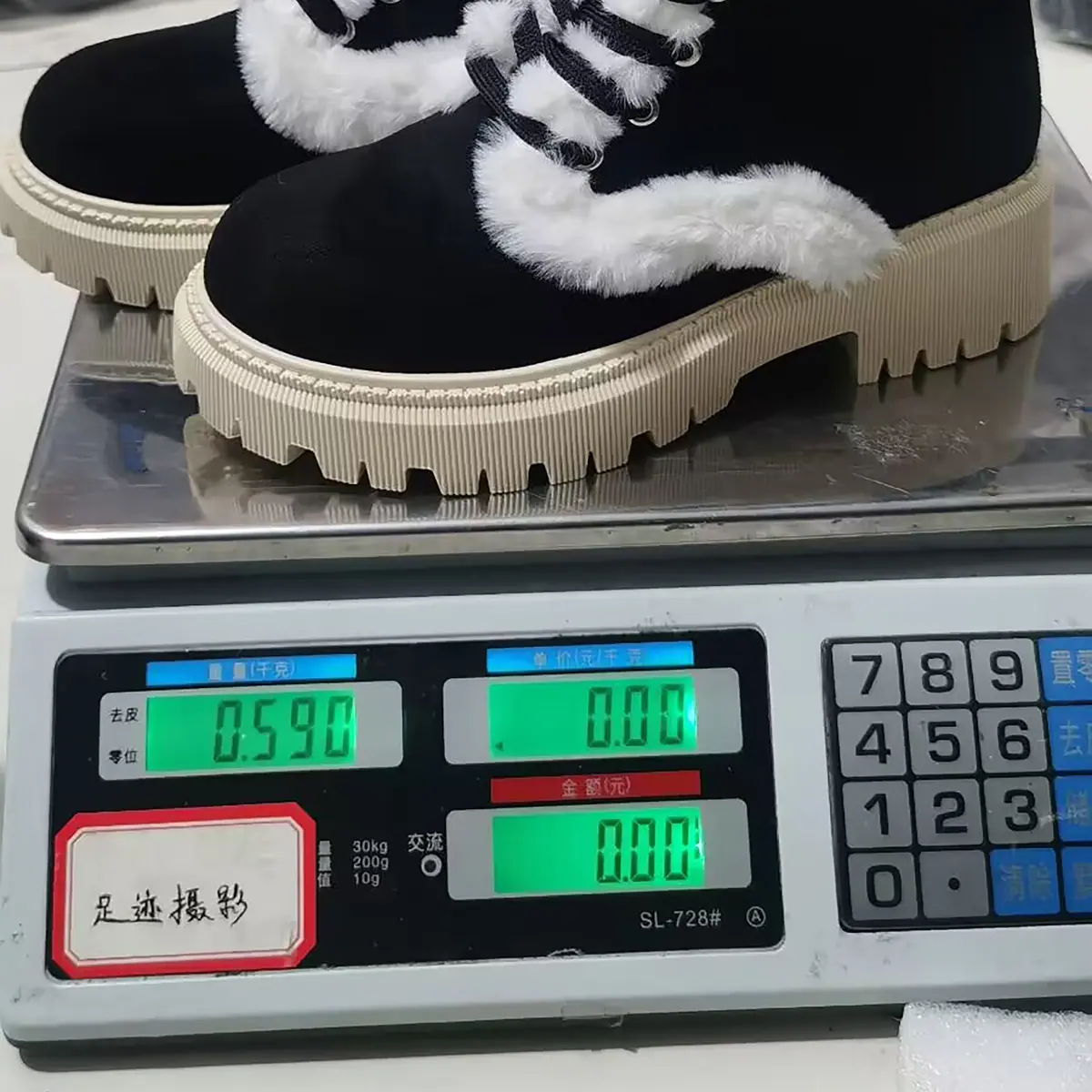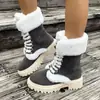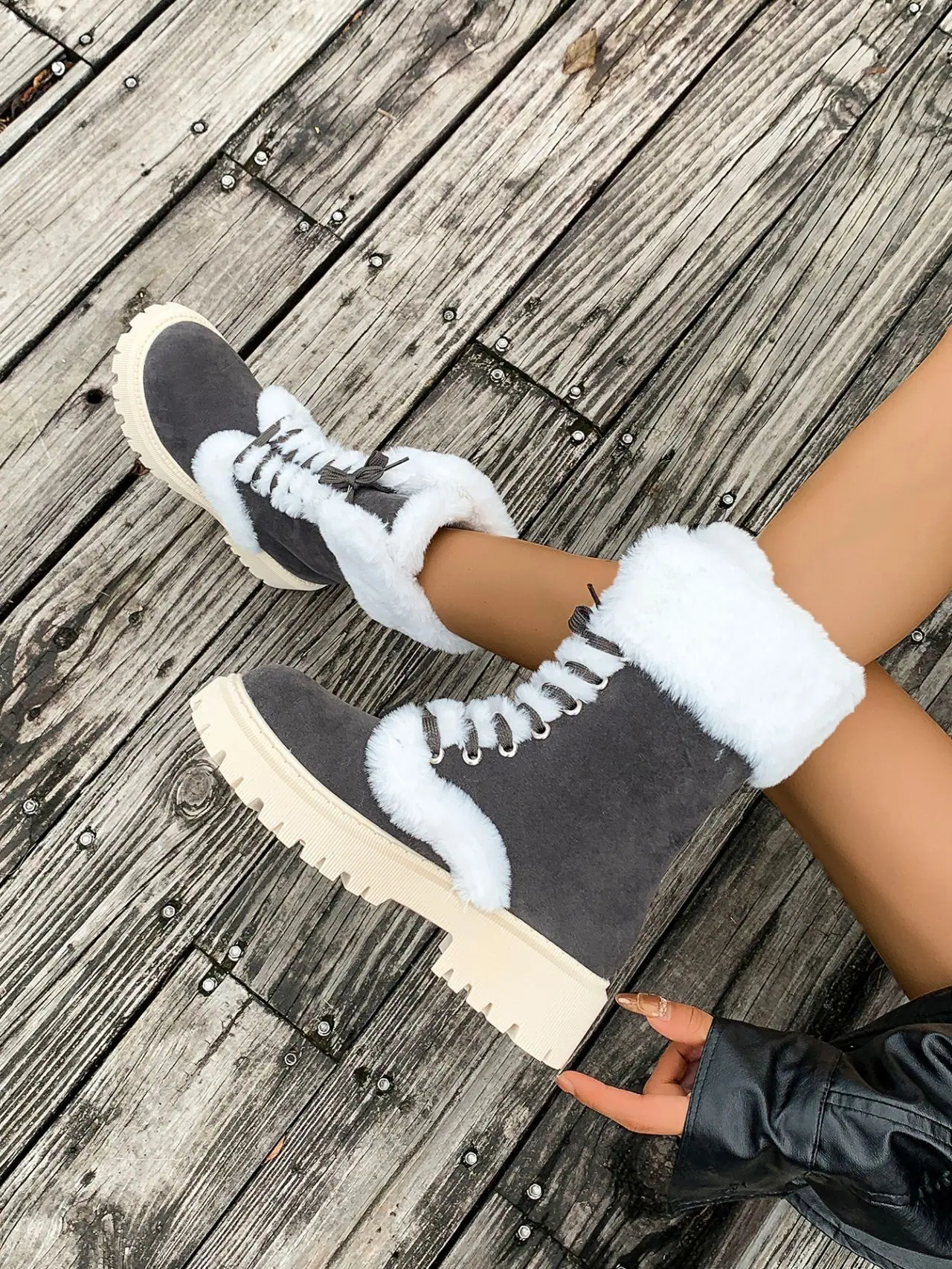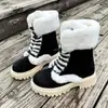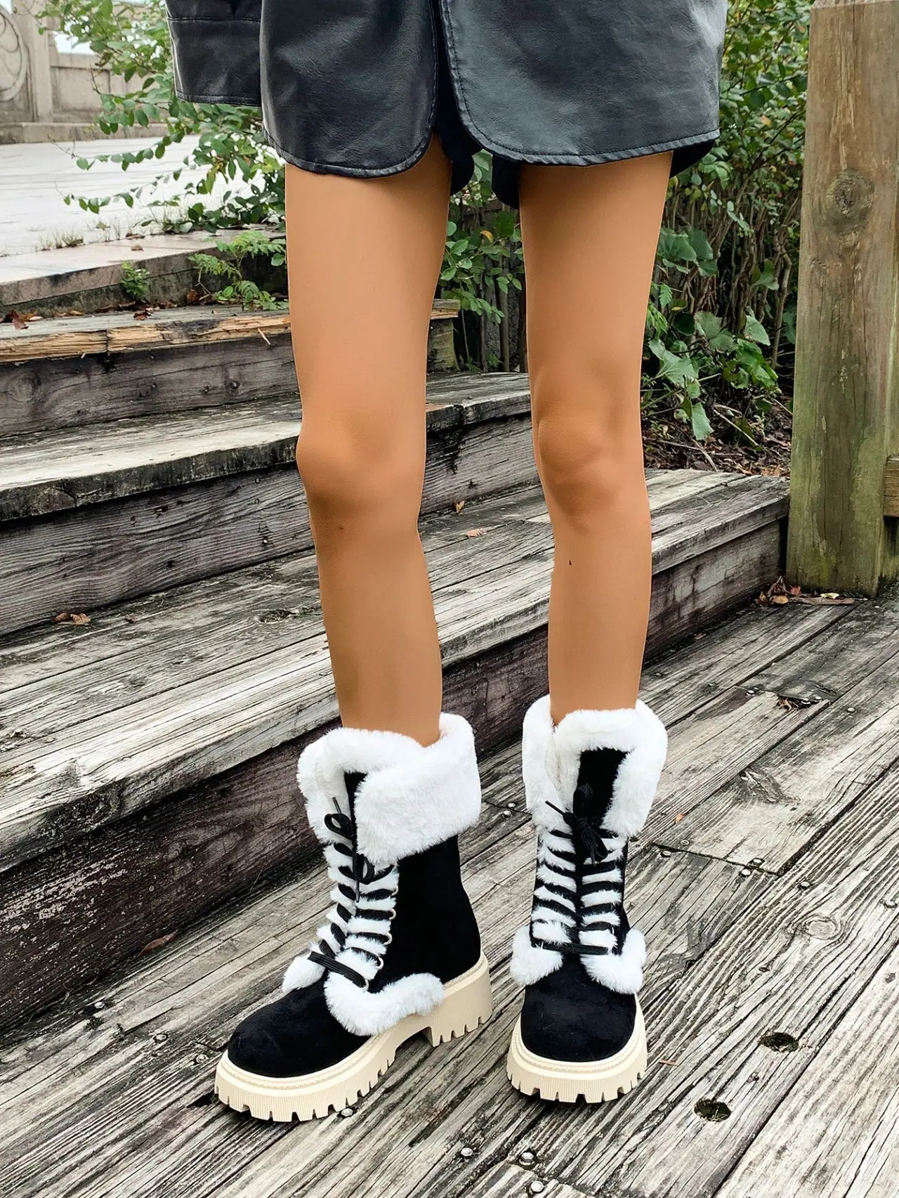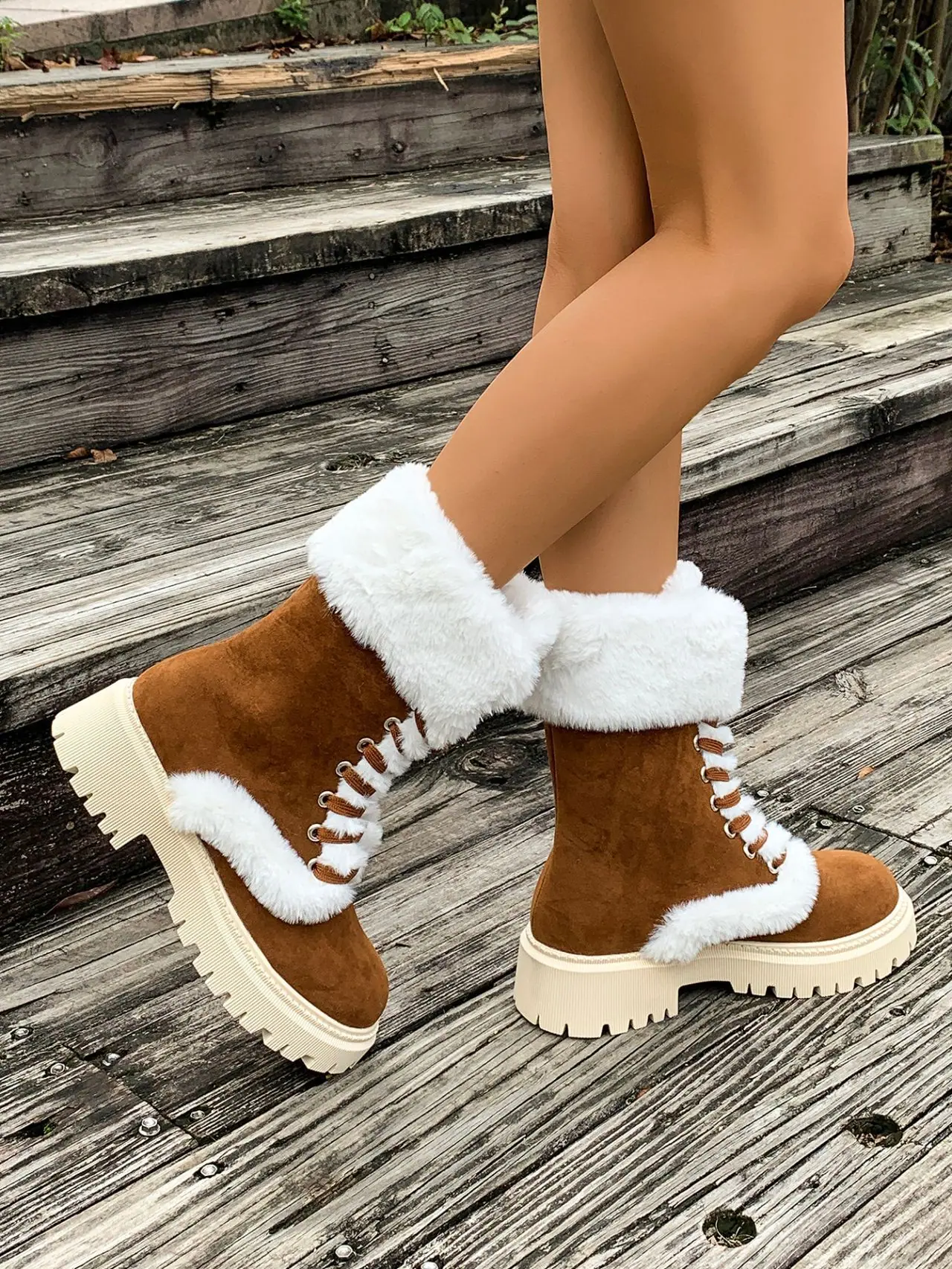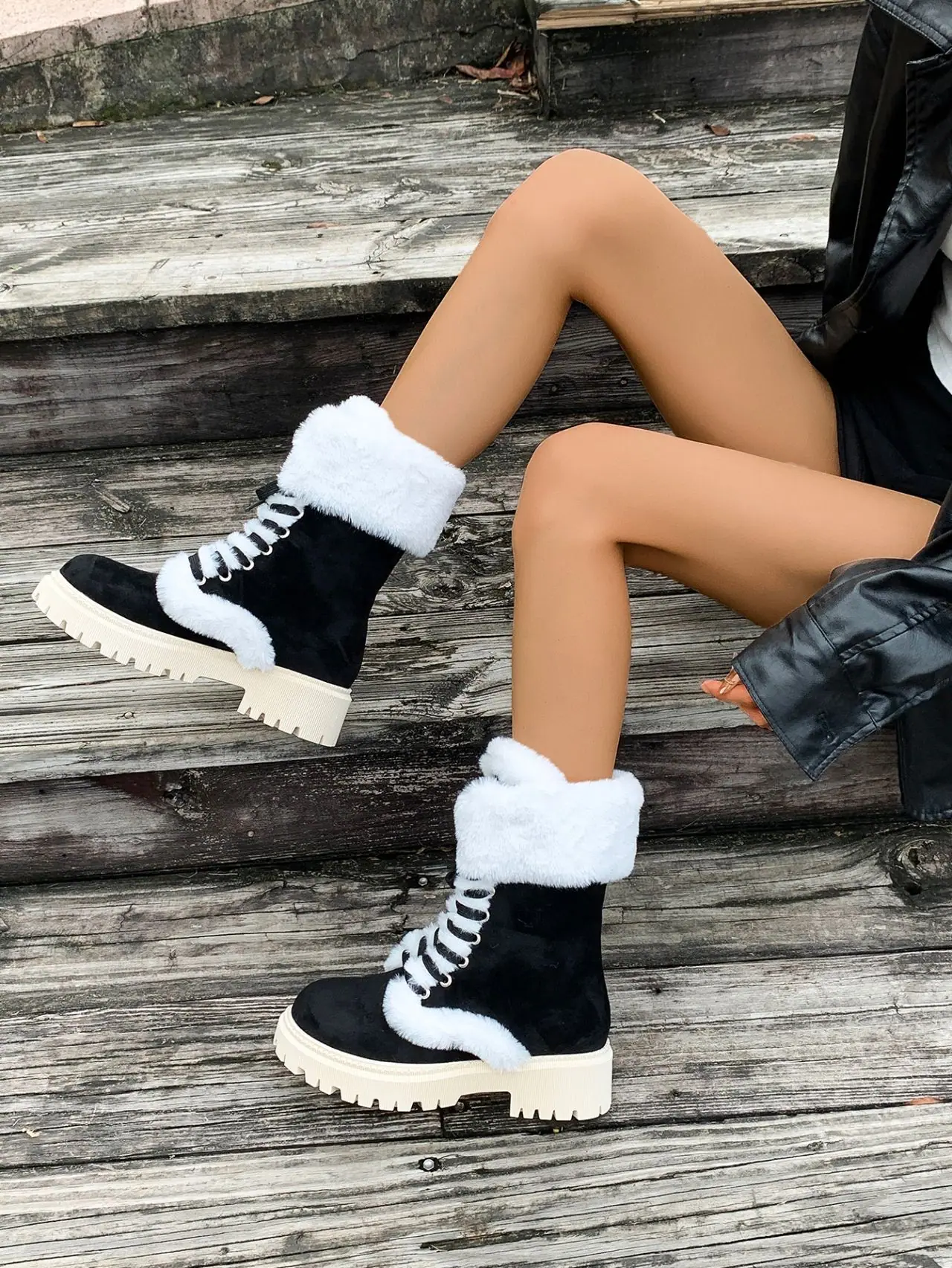 Inverno Quente Comércio Exterior Sola Grossa Botas de Neve 2024 Europeu e Americano Boca Peluda Tamanho Grande Camurça Forrada Cadarço Cano Médio Mulheres