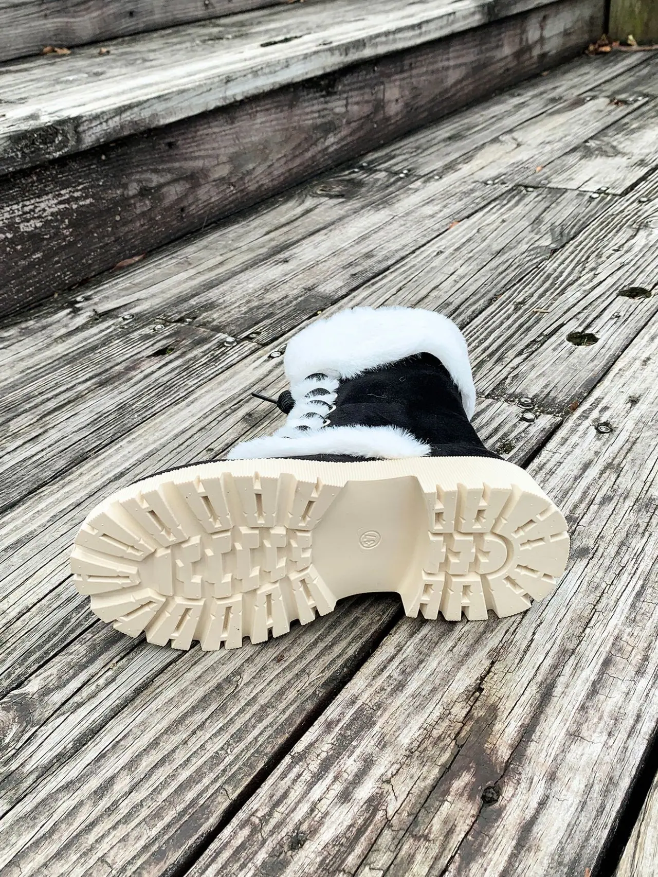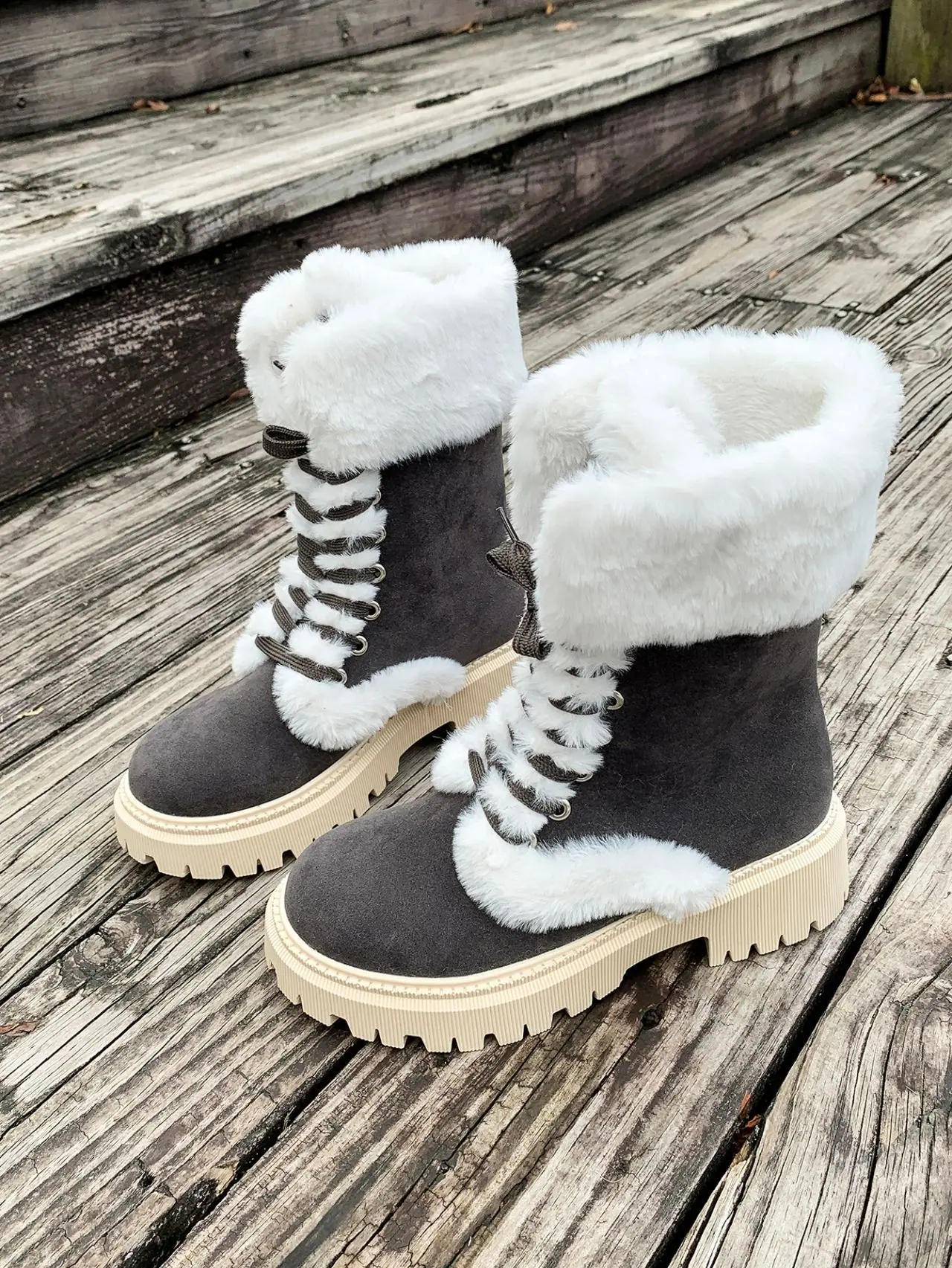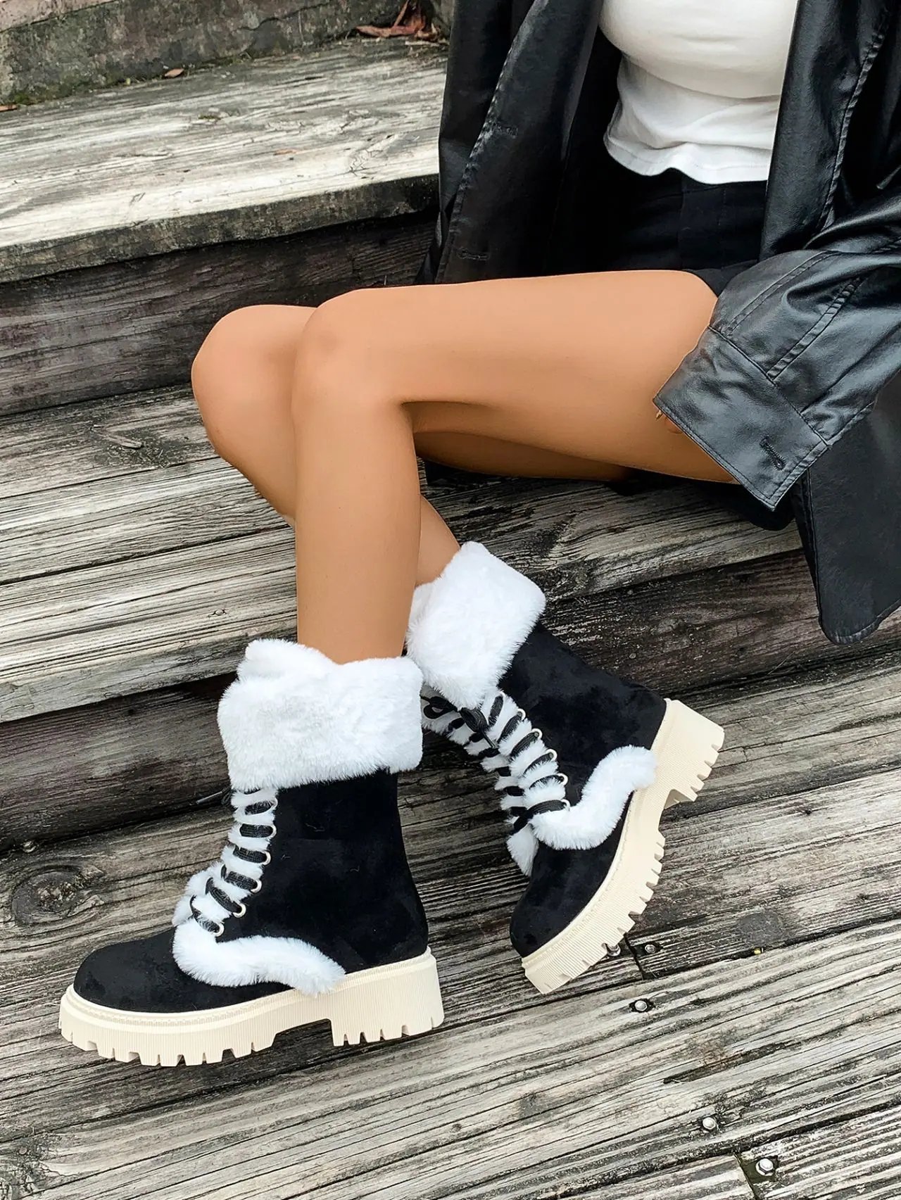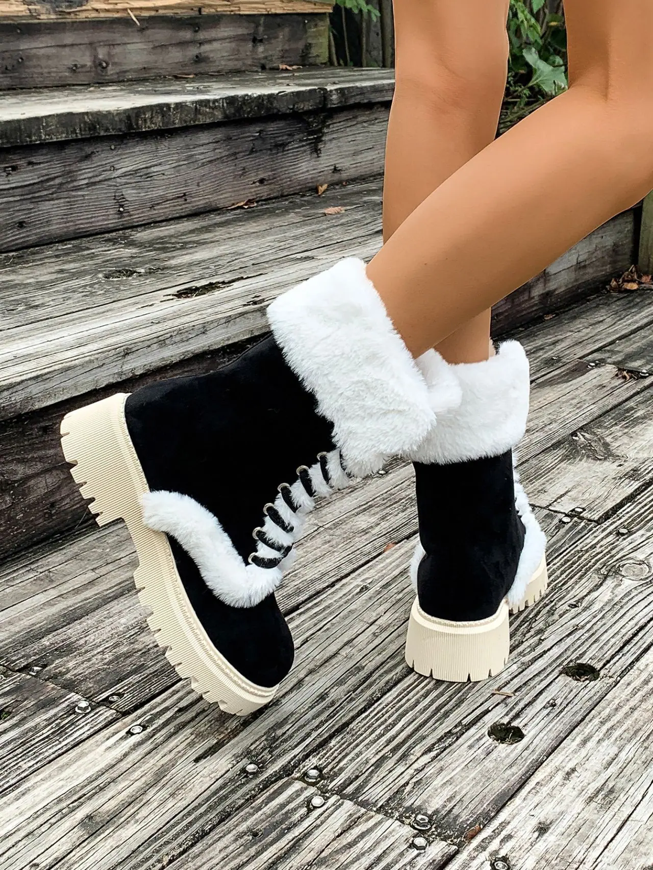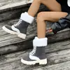 Inverno Quente Comércio Exterior Sola Grossa Botas de Neve 2024 Europeu e Americano Boca Peluda Tamanho Grande Camurça Forrada Cadarço Cano Médio Mulheres